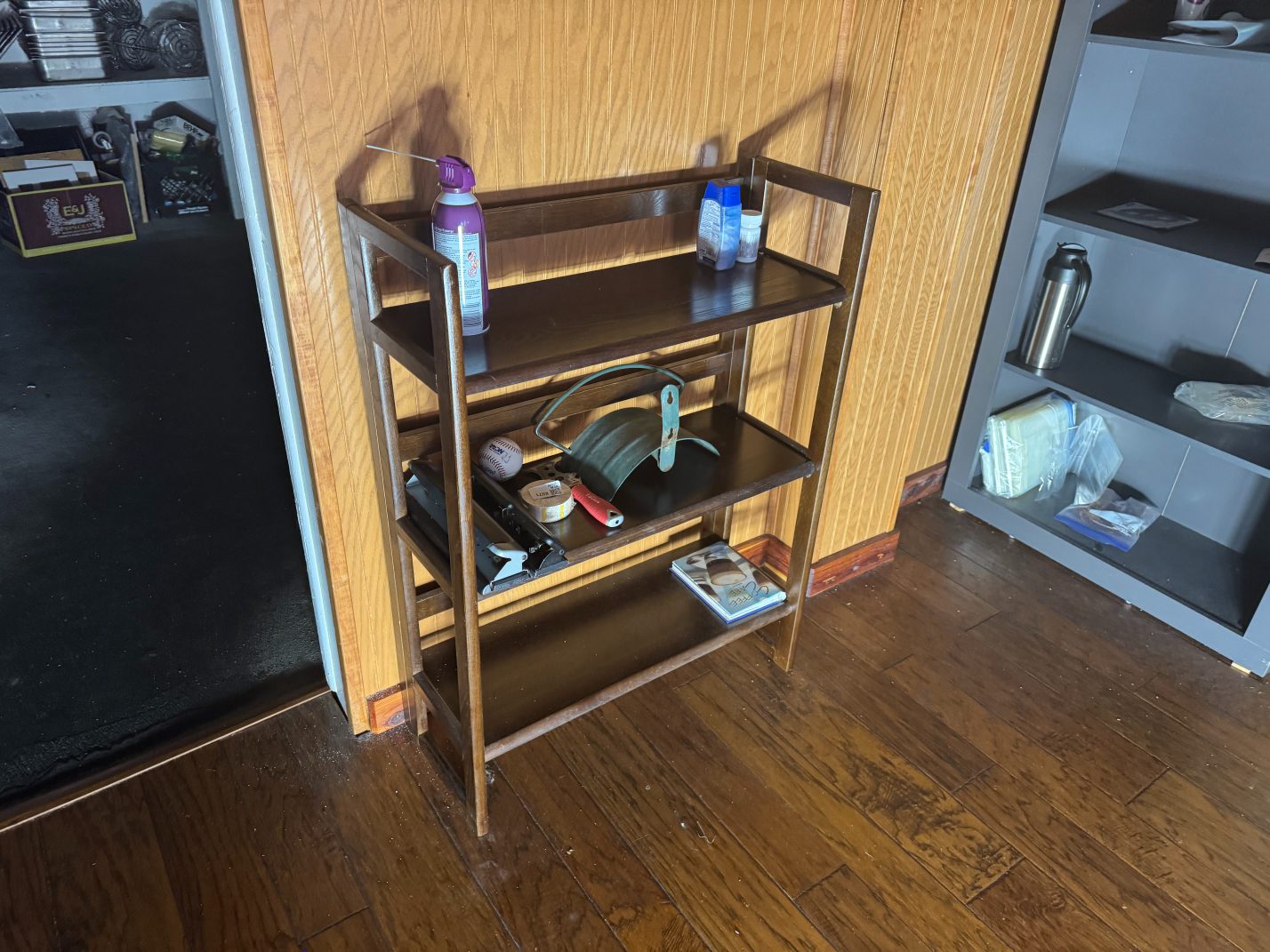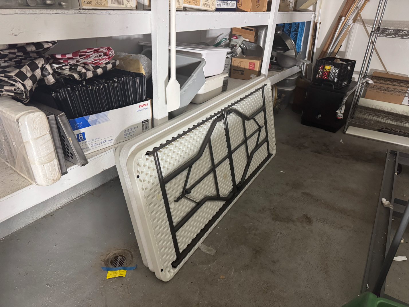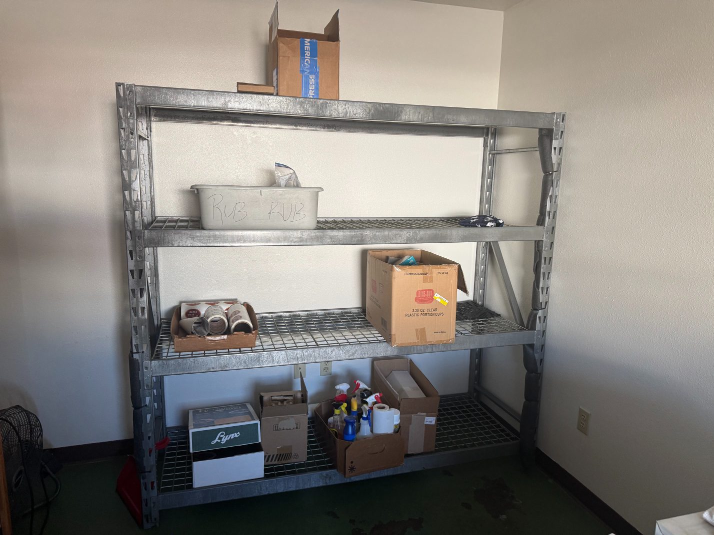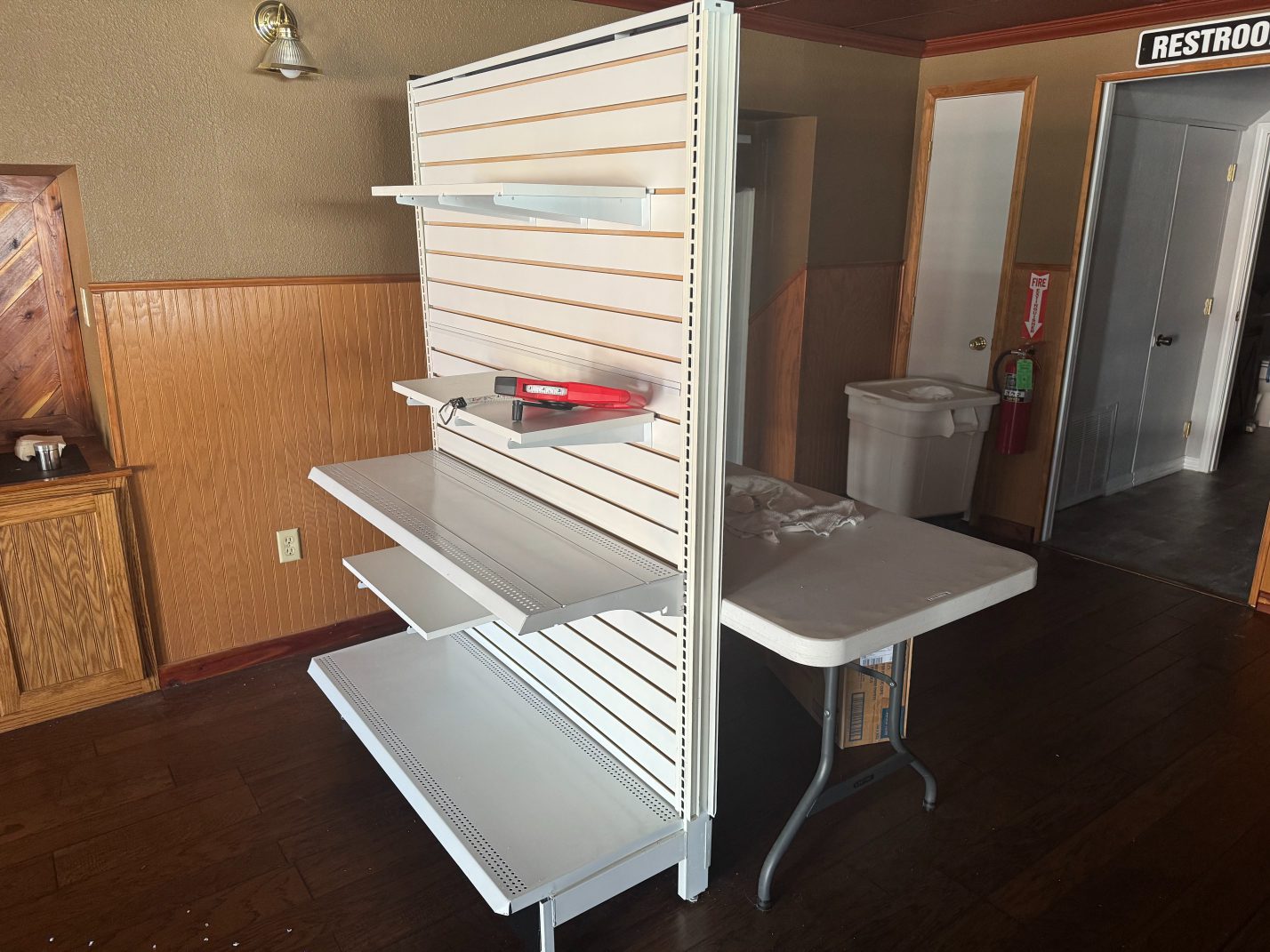 And: Gardall Safe – Sentry Safe – Dolly – Fiberglass Ladder – Pallet Rack – Oak Desk – Office Chair – Radiant POS System – Walkie Talkies – HP Printer – Misc Electronics – T-Shirt Display – Leather Sofa – Coffee & End Tables – Lifetime Tables