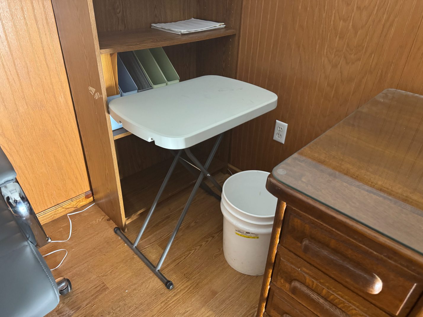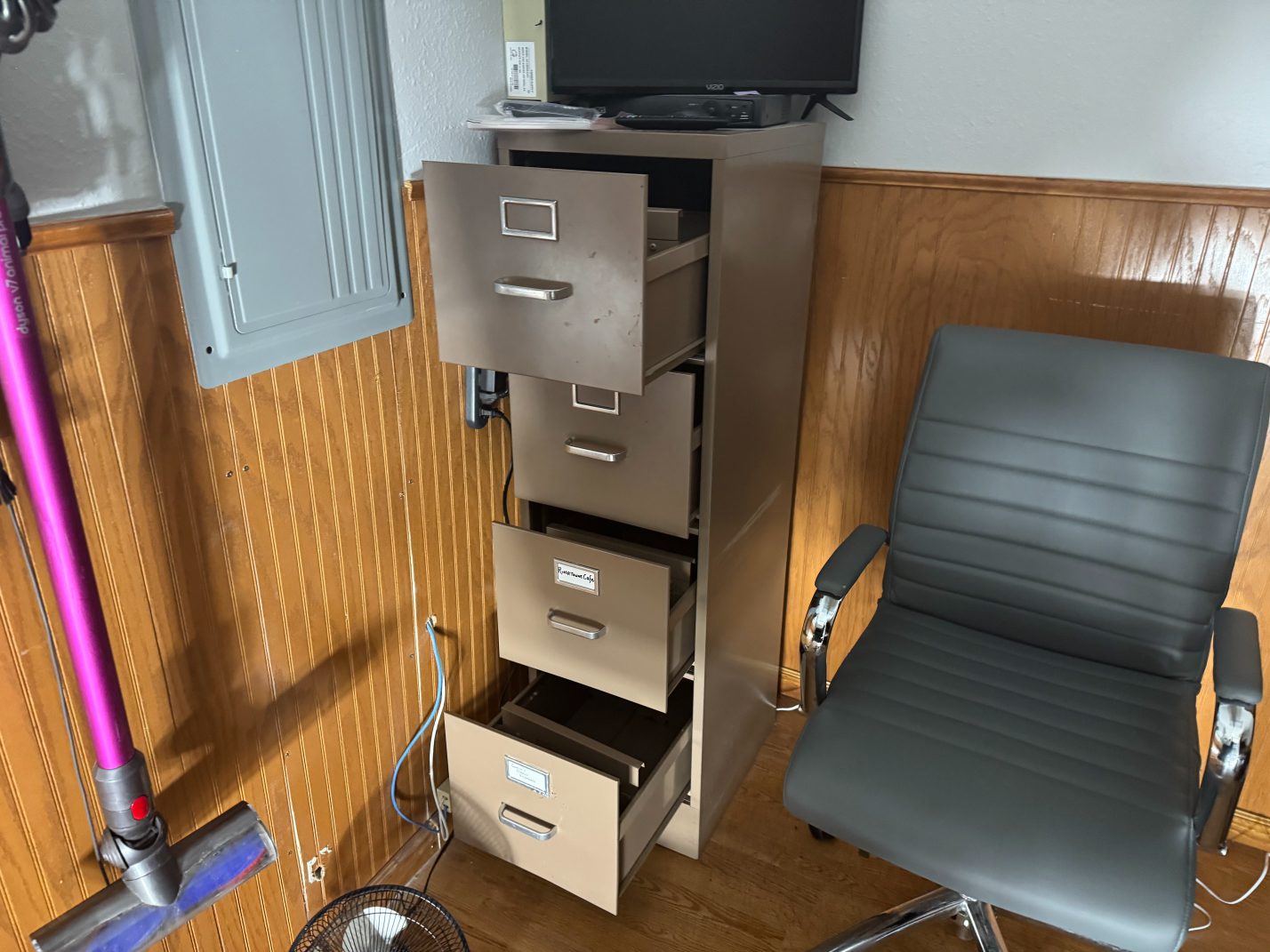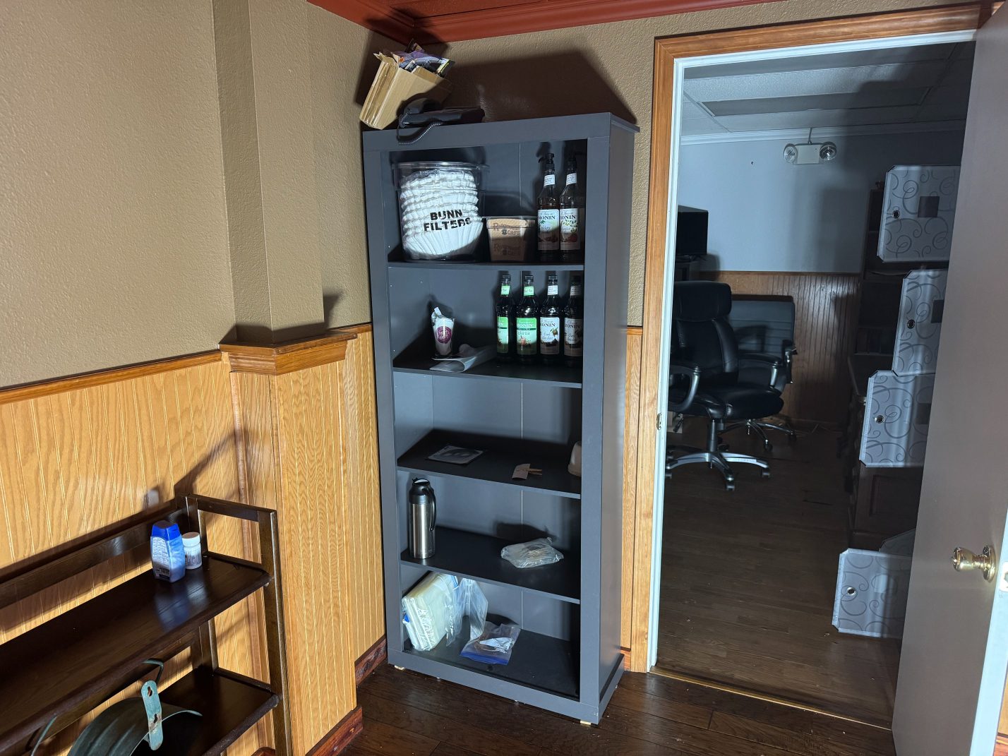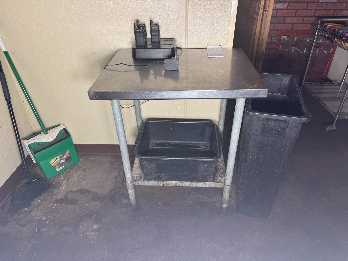 And: Gardall Safe – Sentry Safe – Dolly – Fiberglass Ladder – Pallet Rack – Oak Desk – Office Chair – Radiant POS System – Walkie Talkies – HP Printer – Misc Electronics – T-Shirt Display – Leather Sofa – Coffee & End Tables – Lifetime Tables