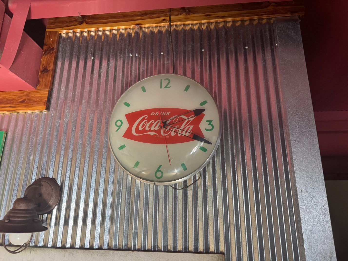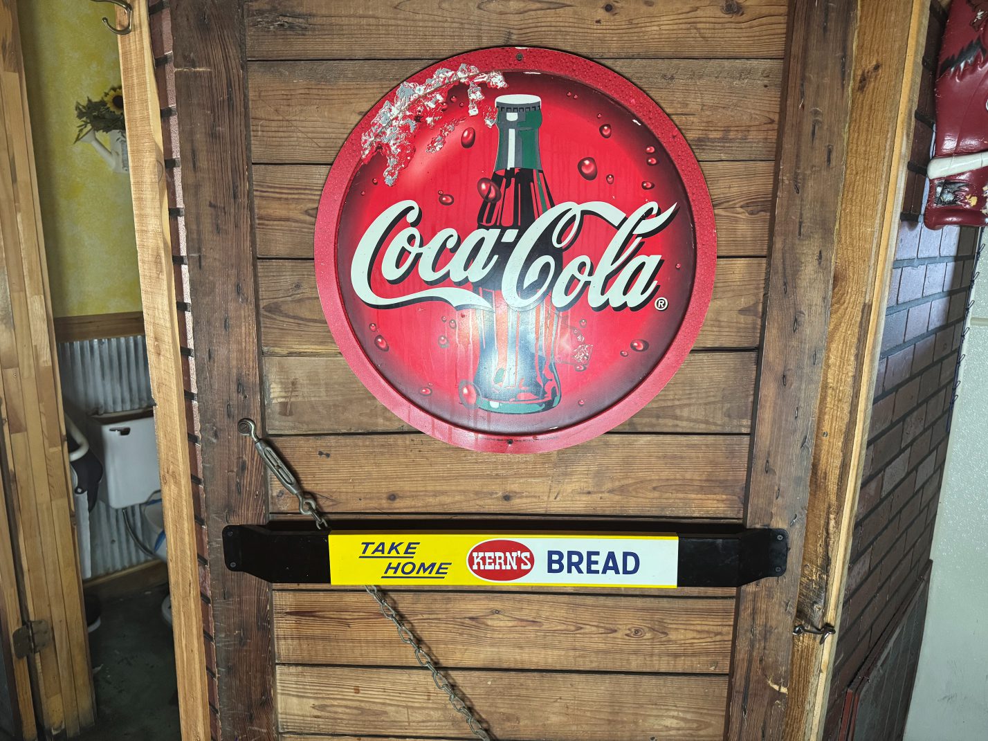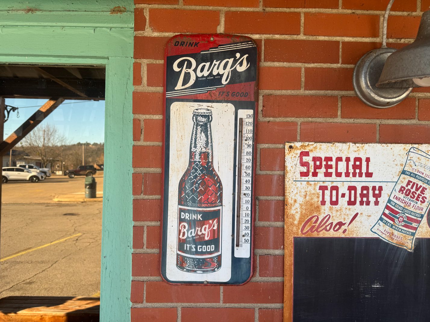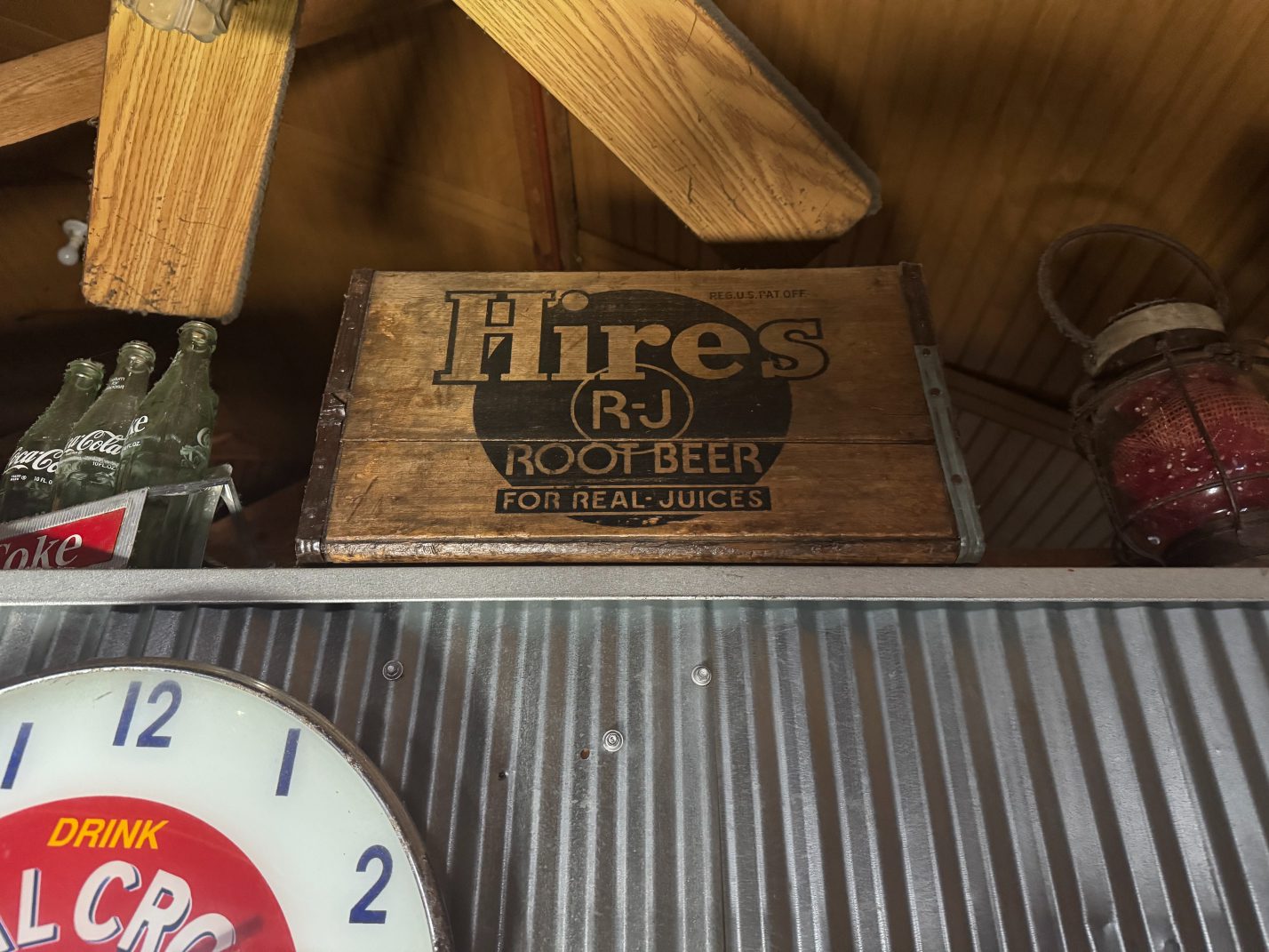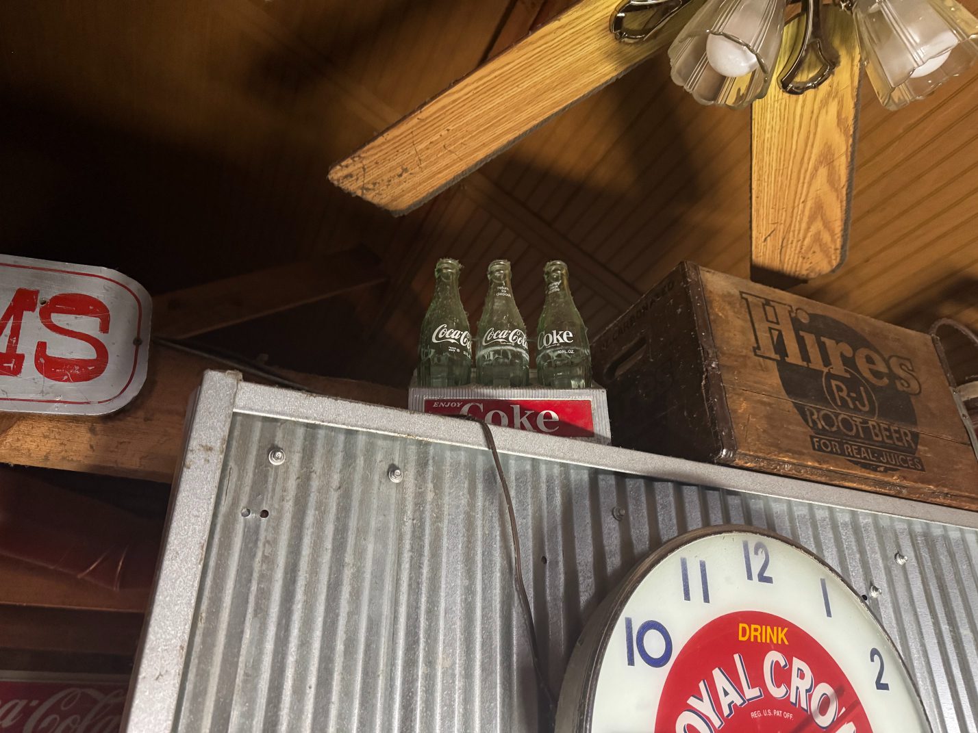 Signs: 5’x3′ Ranch Style Beans – 5’x3′ Wonder Bread – 6’x4′ RC Cola – 4 ½’x1 ½’ DR Pepper – 4 ½’x1 ½’ Coke – Coke Button – 3 ½’x1 ½’ Pepsi – Nehi – 4’x3′ Grapette – Mission Beverages – Double Cola (Flange) – 3 ½’x3′ S&H Green Stamps – Pet Milk – 6’x3′ Sunbeam Bread – Butter Nut Bread – Gardner’s Bread – 5’x1 ½’ Shipley’s Bread – Kern’s Bread Door Pull – 8’x1′ Boyd Grocery – Wabash Screen Door Co (Wooden) – Nichol Cola – KFFA 1360 – Orange Crush Chalk Board – Double Cola Chalk Board – Nesbitts Chalk Board – Five Roses Chalk Board – Street Signs – Pepsi Thermometer – RC Thermometer – Coke Clock – Barq’s Thermometer – RC Clock – Hires Clock – Blues Festival Posters