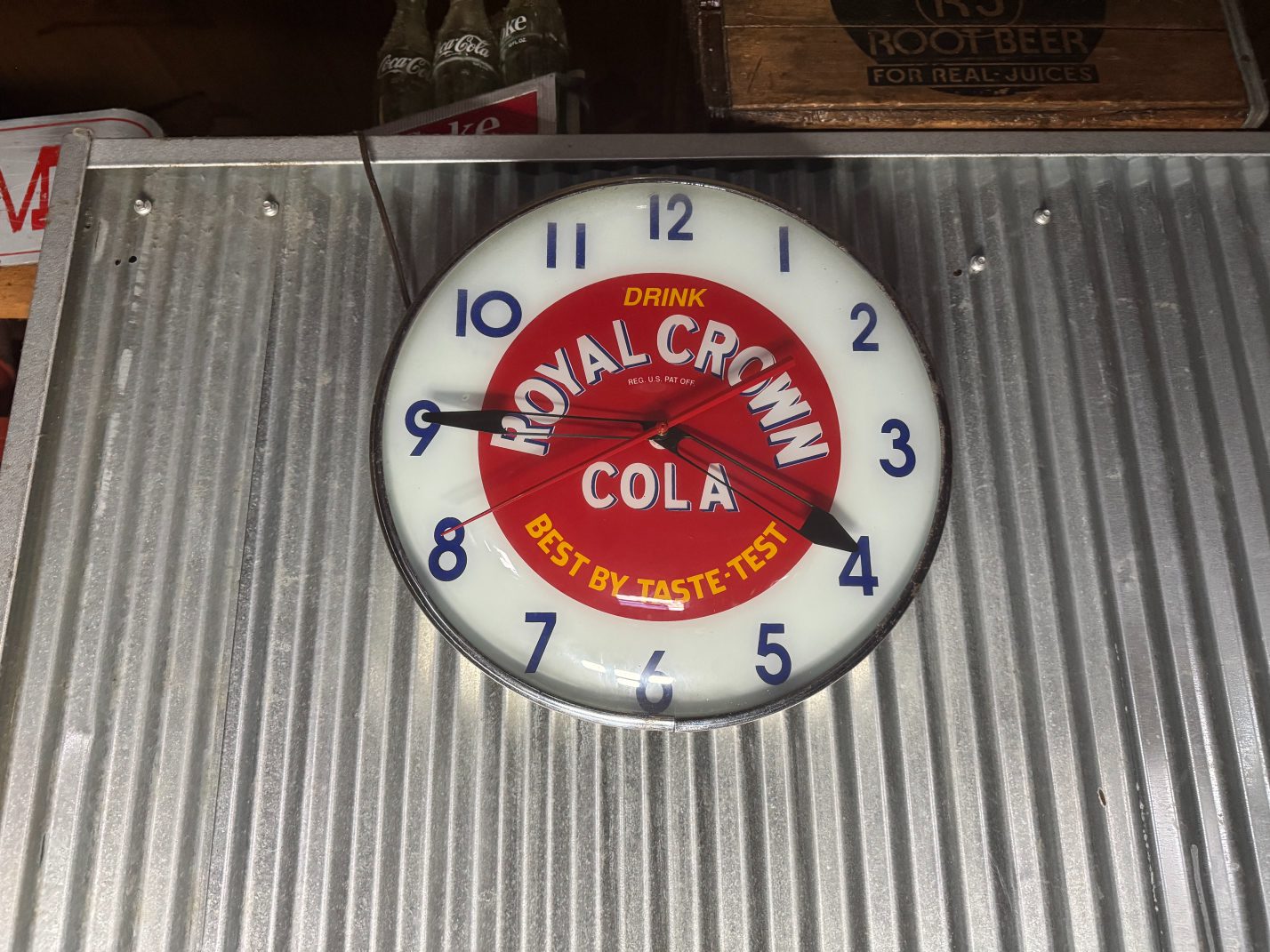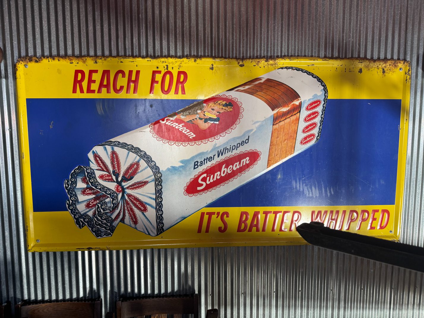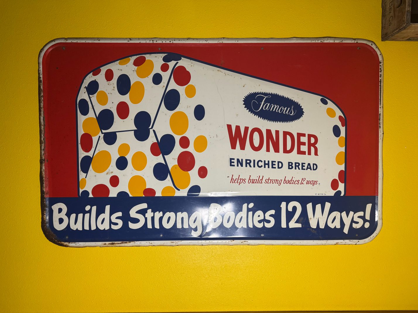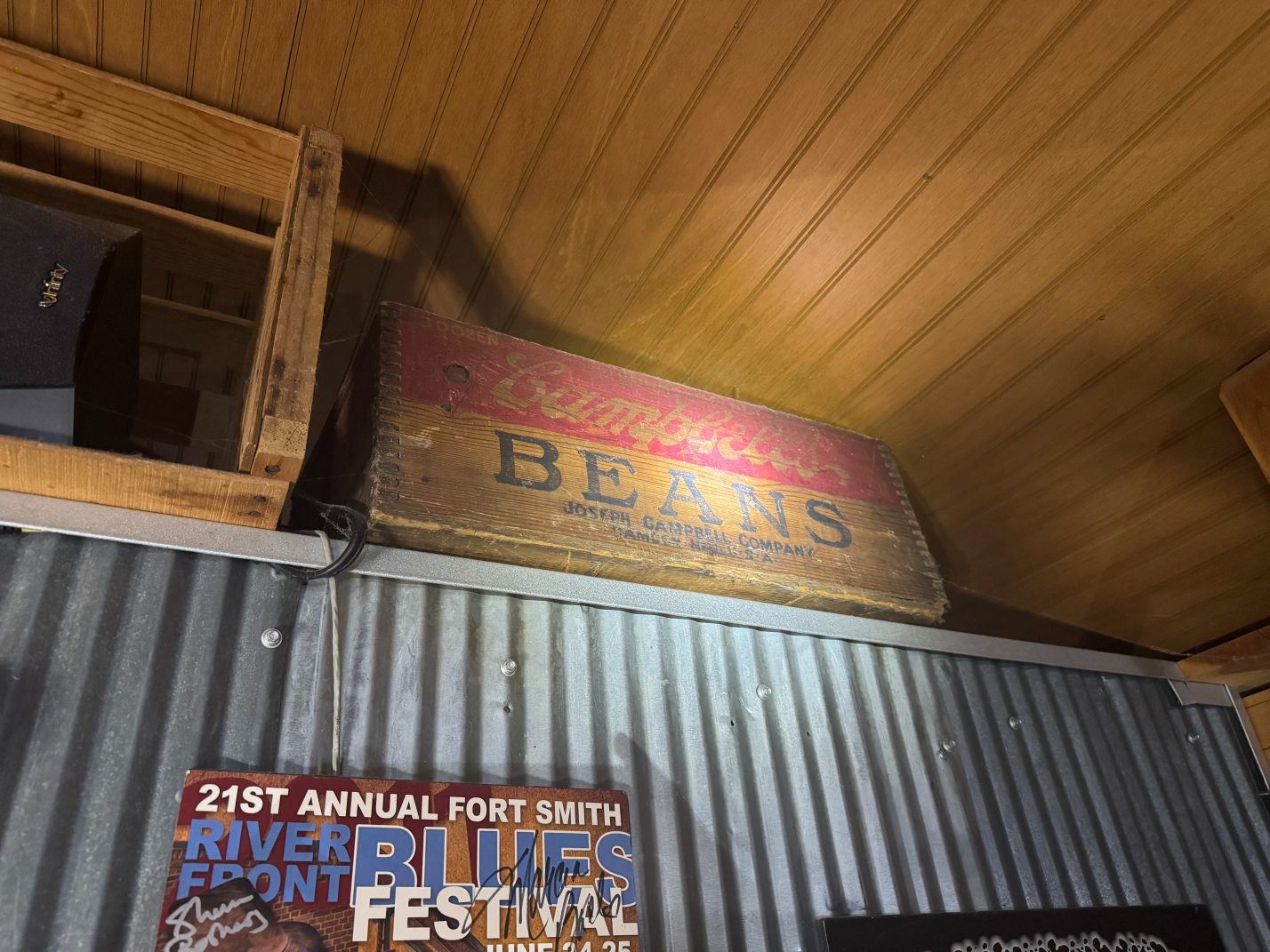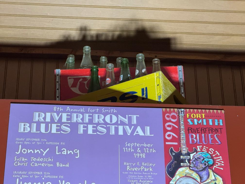 Signs: 5’x3′ Ranch Style Beans – 5’x3′ Wonder Bread – 6’x4′ RC Cola – 4 ½’x1 ½’ DR Pepper – 4 ½’x1 ½’ Coke – Coke Button – 3 ½’x1 ½’ Pepsi – Nehi – 4’x3′ Grapette – Mission Beverages – Double Cola (Flange) – 3 ½’x3′ S&H Green Stamps – Pet Milk – 6’x3′ Sunbeam Bread – Butter Nut Bread – Gardner’s Bread – 5’x1 ½’ Shipley’s Bread – Kern’s Bread Door Pull – 8’x1′ Boyd Grocery – Wabash Screen Door Co (Wooden) – Nichol Cola – KFFA 1360 – Orange Crush Chalk Board – Double Cola Chalk Board – Nesbitts Chalk Board – Five Roses Chalk Board – Street Signs – Pepsi Thermometer – RC Thermometer – Coke Clock – Barq’s Thermometer – RC Clock – Hires Clock – Blues Festival Posters