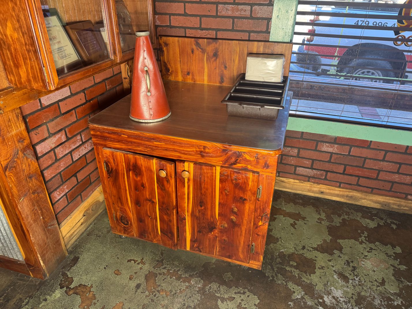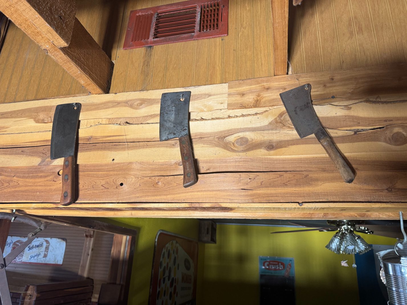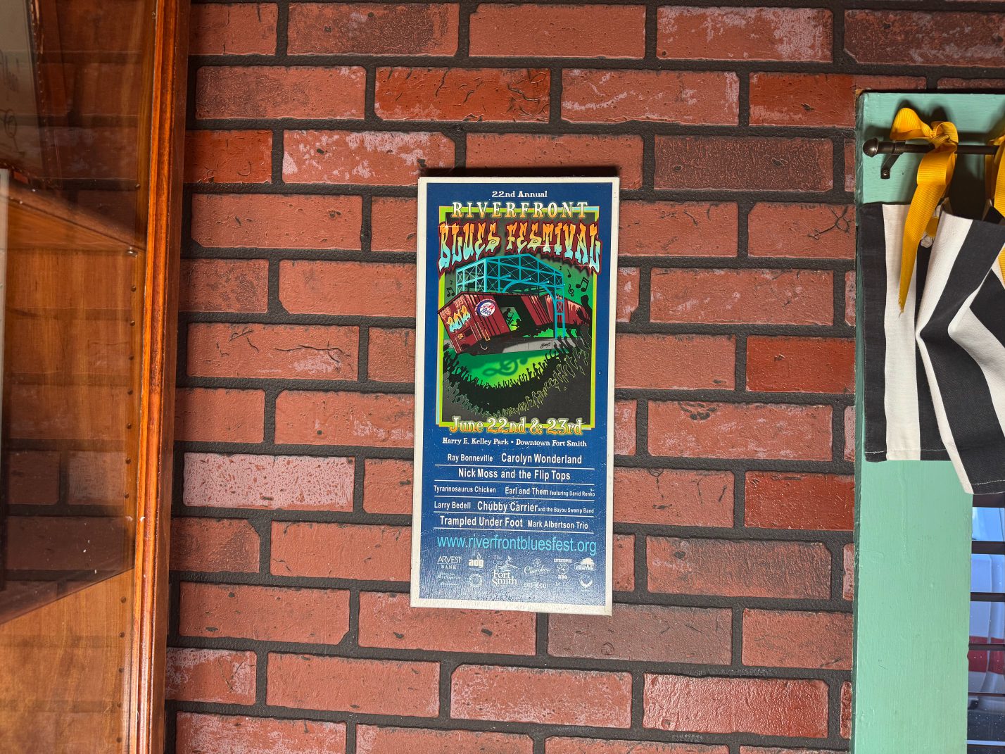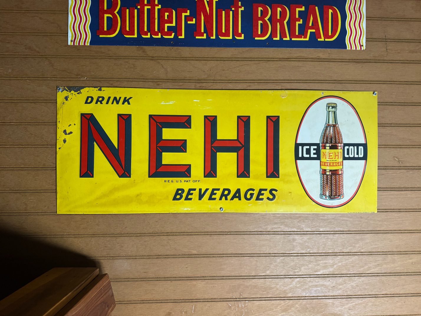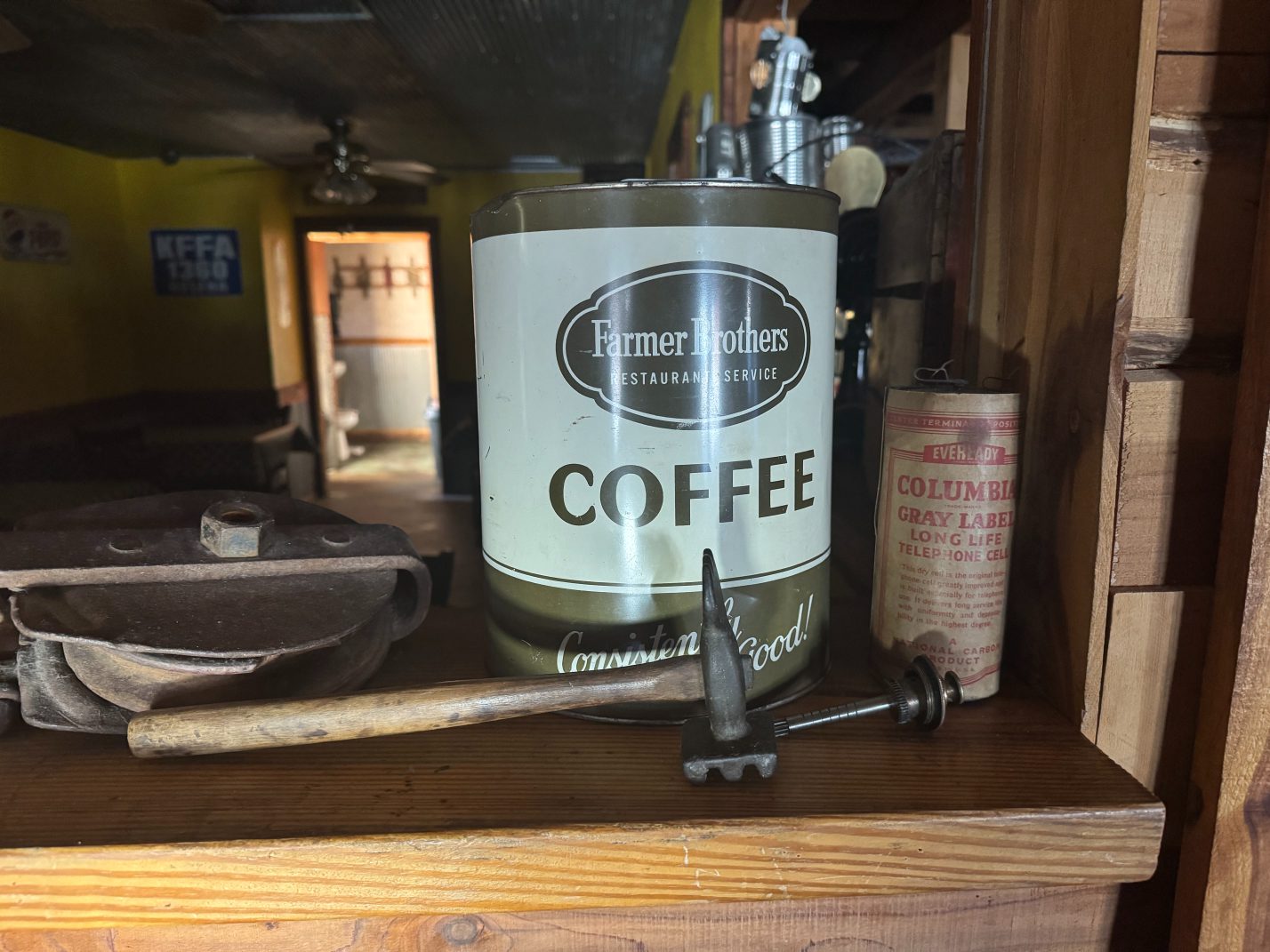 Signs: 5’x3′ Ranch Style Beans – 5’x3′ Wonder Bread – 6’x4′ RC Cola – 4 ½’x1 ½’ DR Pepper – 4 ½’x1 ½’ Coke – Coke Button – 3 ½’x1 ½’ Pepsi – Nehi – 4’x3′ Grapette – Mission Beverages – Double Cola (Flange) – 3 ½’x3′ S&H Green Stamps – Pet Milk – 6’x3′ Sunbeam Bread – Butter Nut Bread – Gardner’s Bread – 5’x1 ½’ Shipley’s Bread – Kern’s Bread Door Pull – 8’x1′ Boyd Grocery – Wabash Screen Door Co (Wooden) – Nichol Cola – KFFA 1360 – Orange Crush Chalk Board – Double Cola Chalk Board – Nesbitts Chalk Board – Five Roses Chalk Board – Street Signs – Pepsi Thermometer – RC Thermometer – Coke Clock – Barq’s Thermometer – RC Clock – Hires Clock – Blues Festival Posters