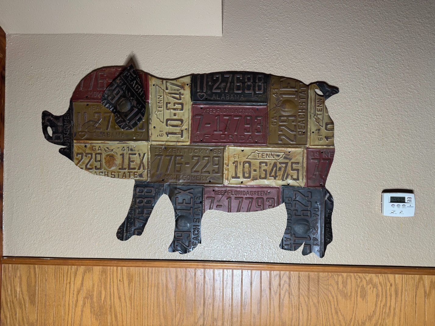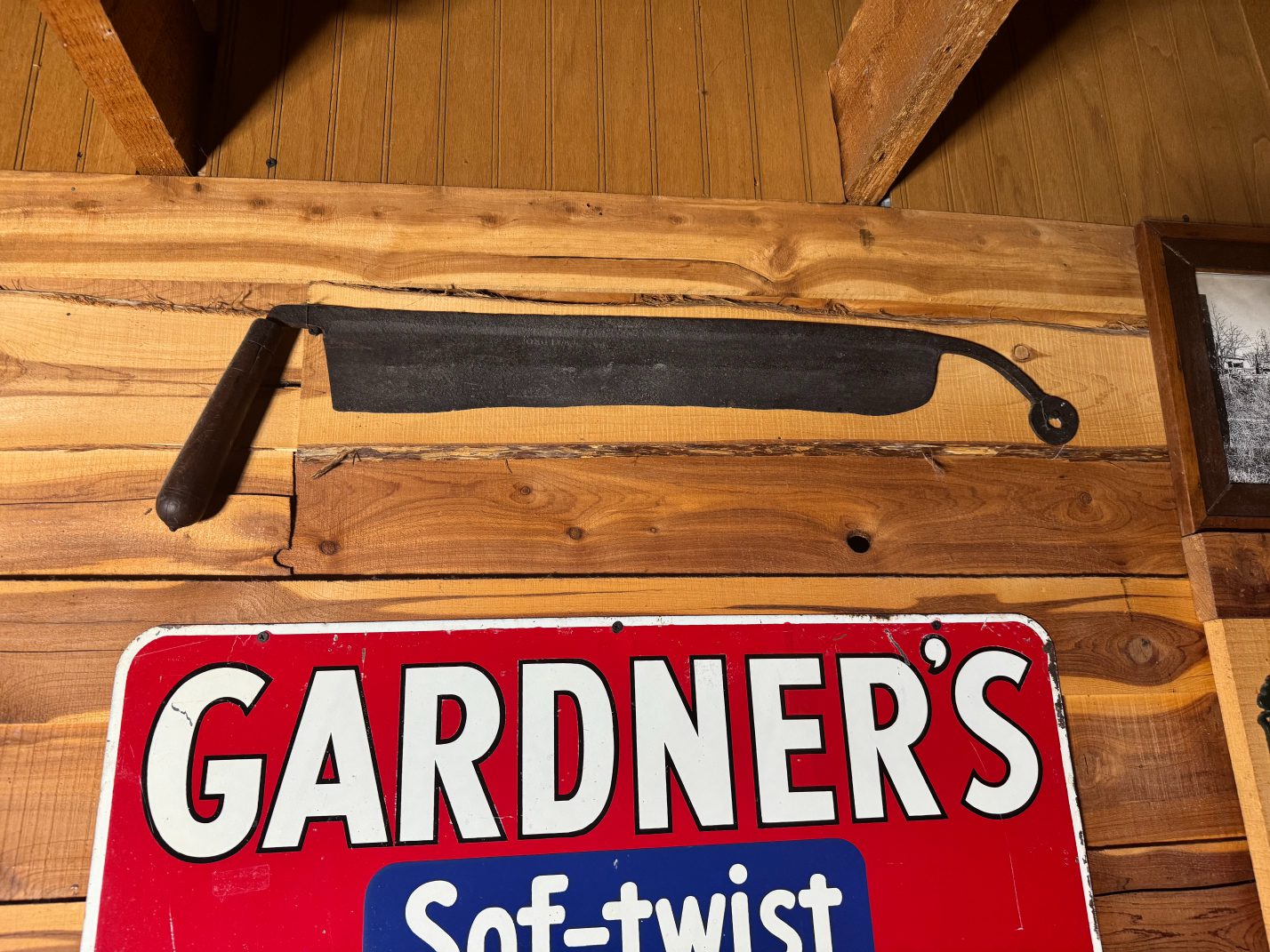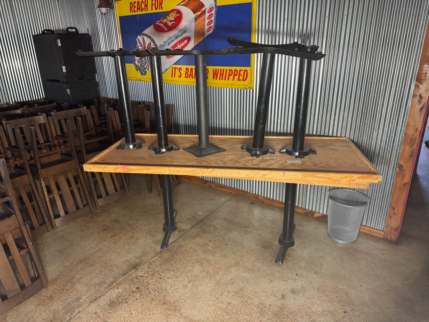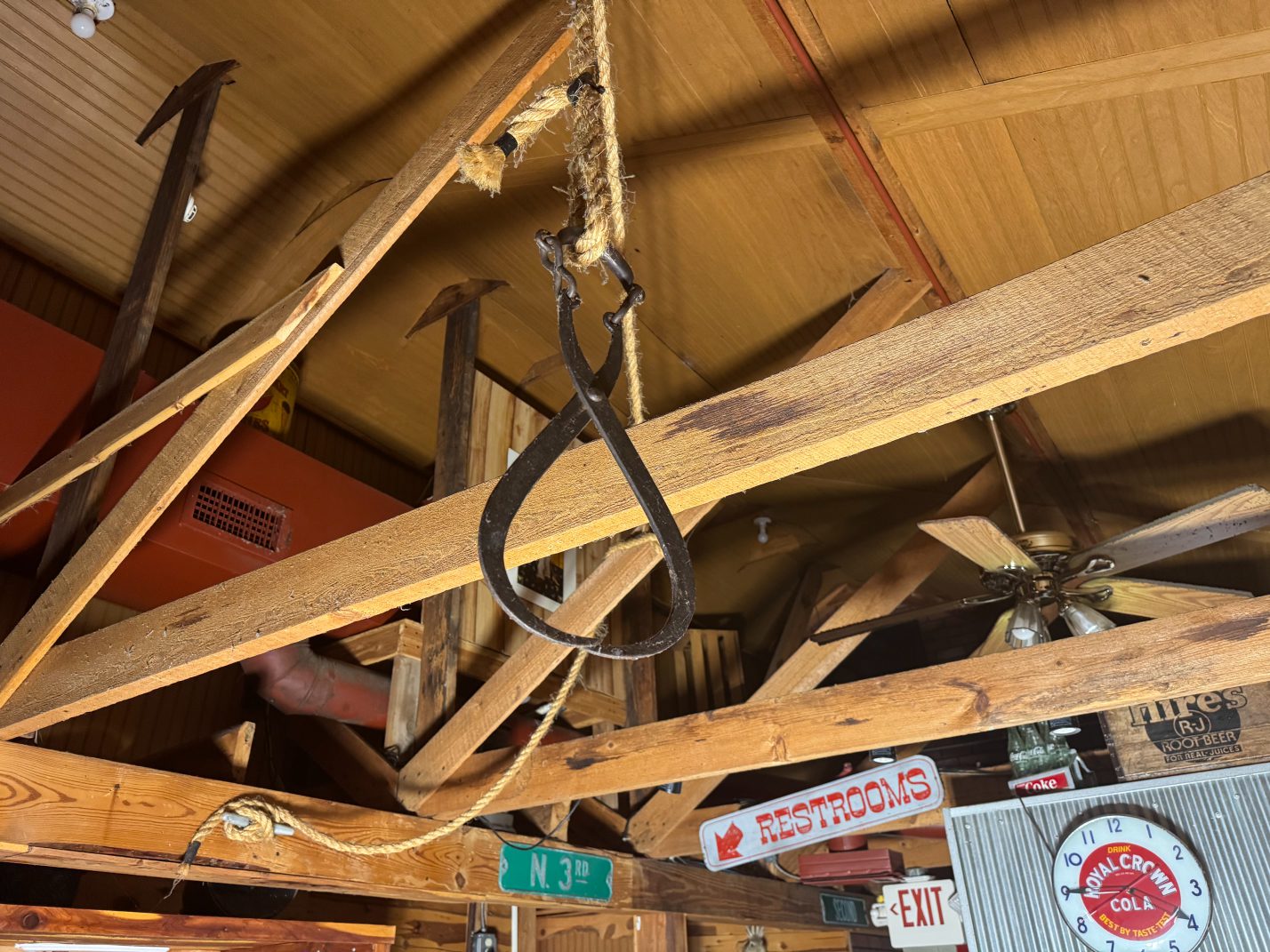 Antiques & Collectibles: 3′ Tall Metal Pig Statue – Jackalope – Dickson Egg Crate – (2) Hires Wood Crates – Campbell’s Beans Wood Crate – RC Cola Wood Crate – Metal Coke Carrier & Bottles – Lard, Potato Chip & Coffee Tins – Ice Tongs – RR Lantern – Lanterns – Fans – Meat Cleaver – Oil Can – Nail Keg – Whiskey Barrel – 8′ & 9′ Wood Church Pews – Typewriter