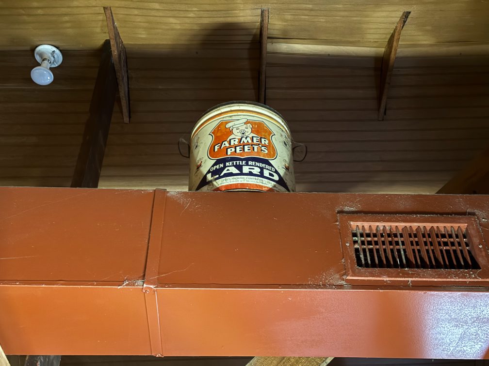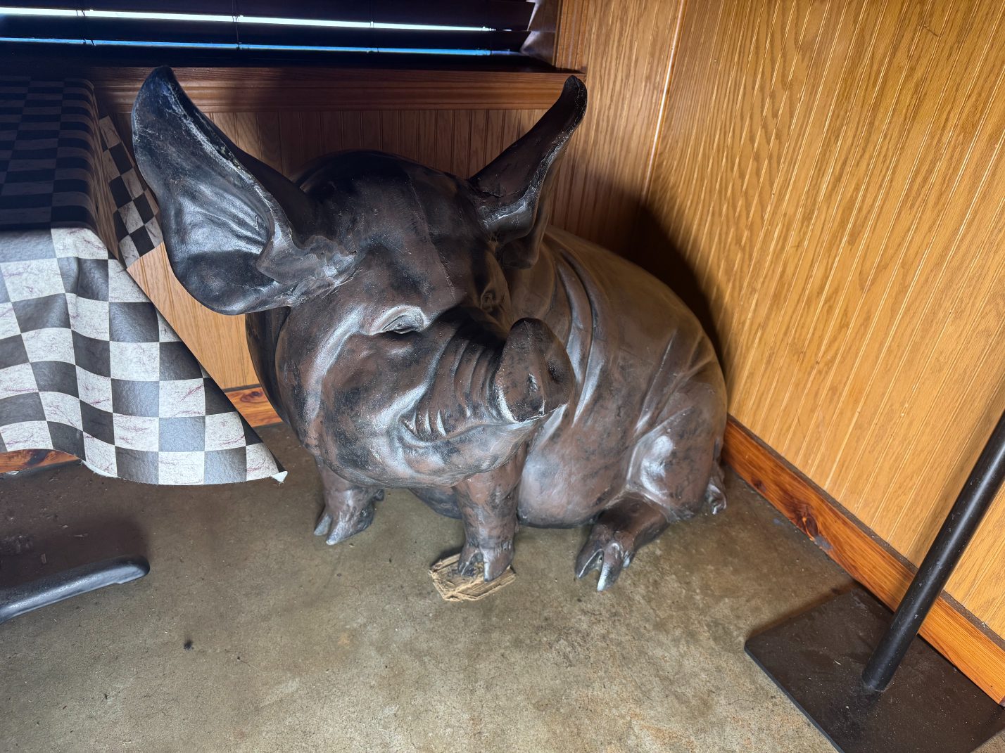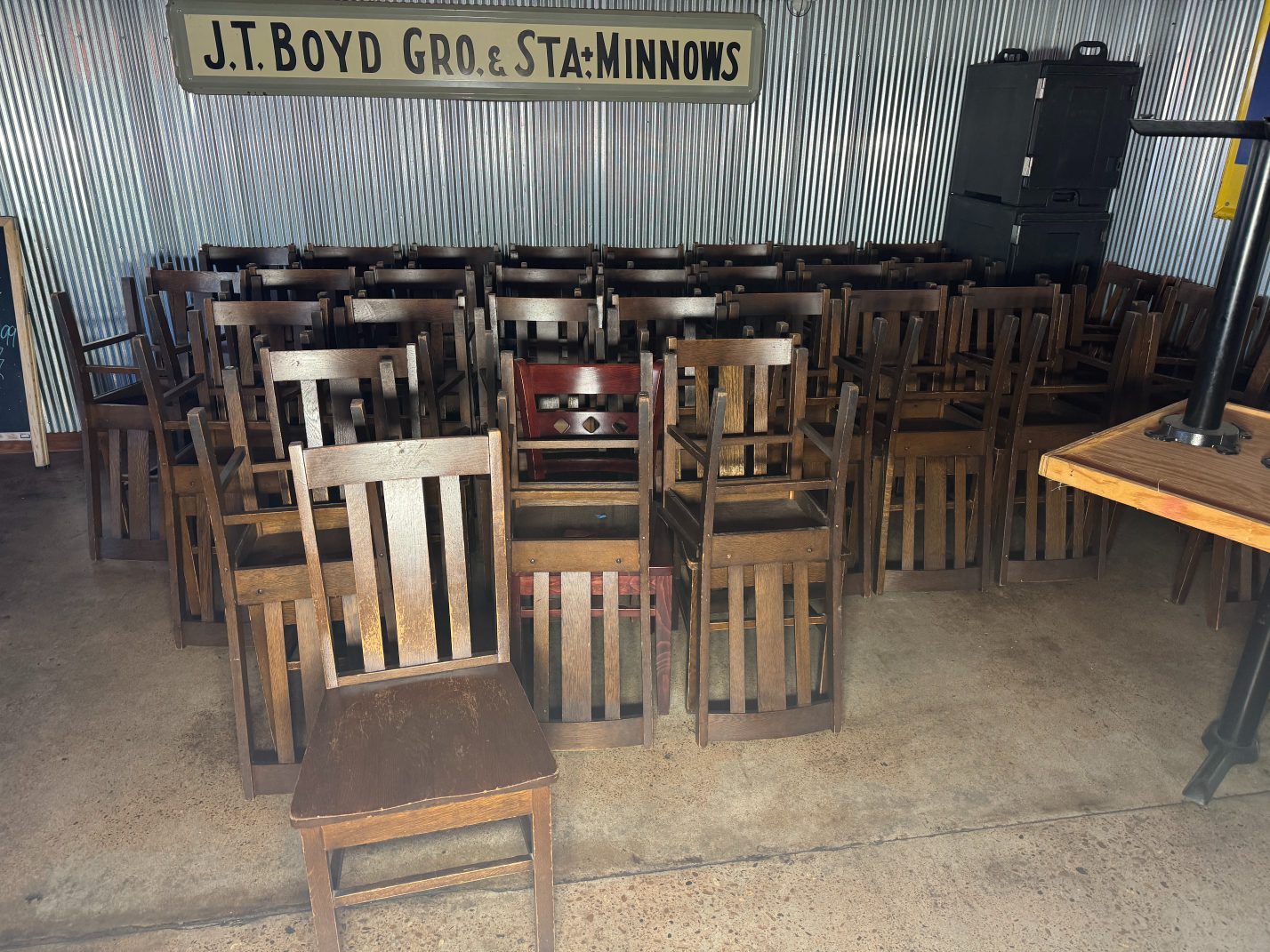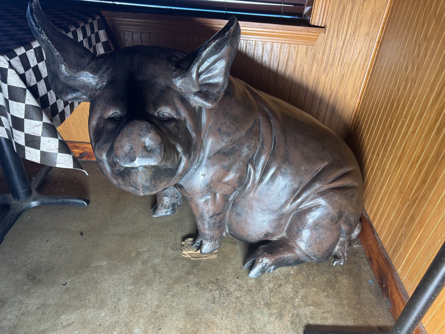 Antiques & Collectibles: 3′ Tall Metal Pig Statue – Jackalope – Dickson Egg Crate – (2) Hires Wood Crates – Campbell’s Beans Wood Crate – RC Cola Wood Crate – Metal Coke Carrier & Bottles – Lard, Potato Chip & Coffee Tins – Ice Tongs – RR Lantern – Lanterns – Fans – Meat Cleaver – Oil Can – Nail Keg – Whiskey Barrel – 8′ & 9′ Wood Church Pews – Typewriter