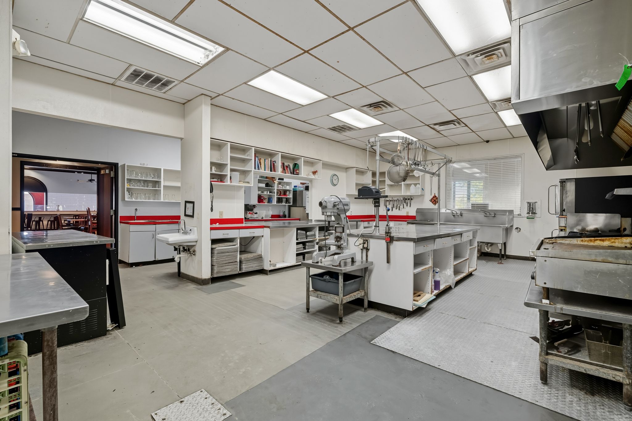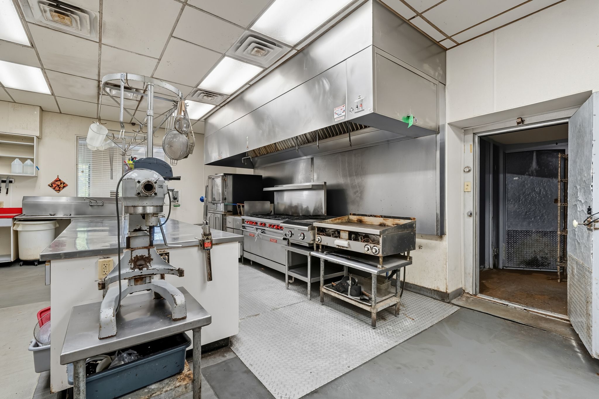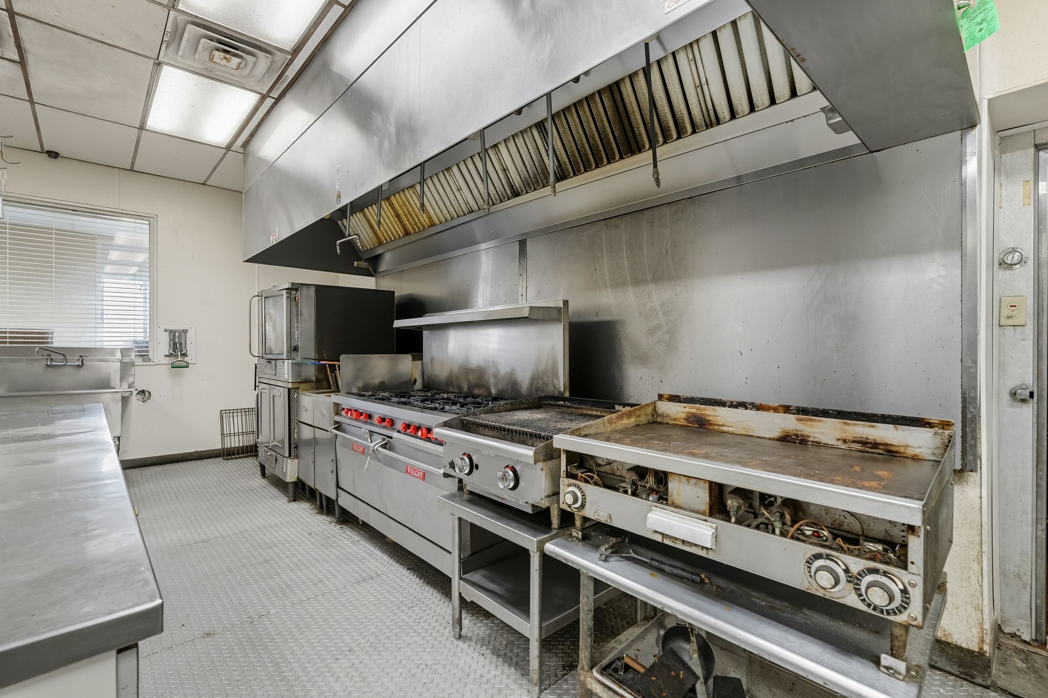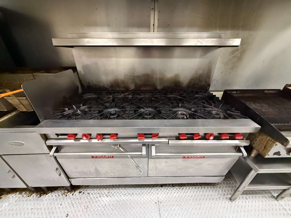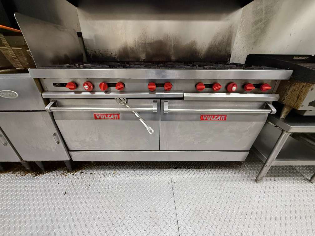 Vulcan 8-Burner Gas Stove – 2-Burner Gas Stove – Gas Griddle – (2) Dean Deep Fryers – (2) Blodgett Ovens – True Cooler – Hobart Commercial Mixer – Arctic Air Commercial Refrigerator – Beverage Air Cooler – Meat Slicer – Manitowoc Ice Maker – Avantco Refrigeration Beer Dispensers – Hamilton Beach Wine Cooler – APW Wyott Warmers