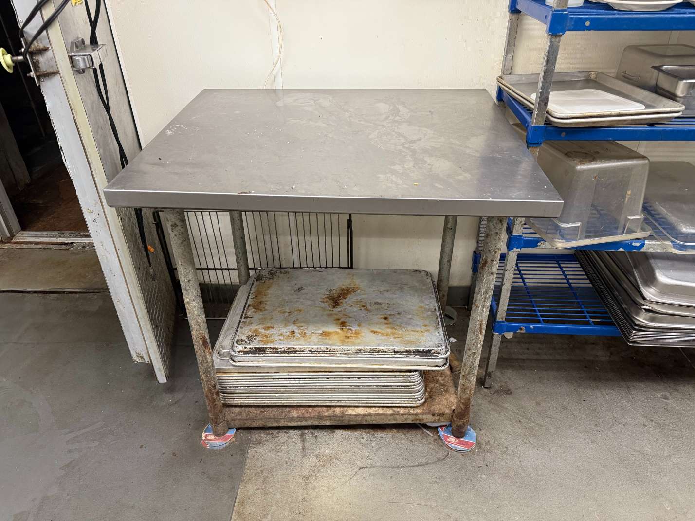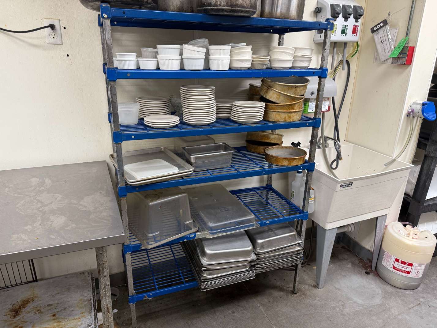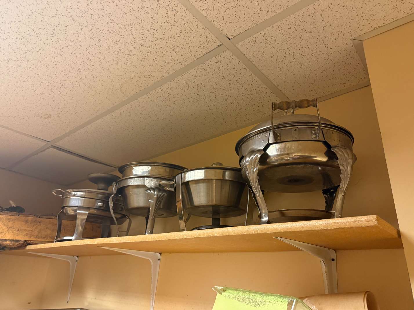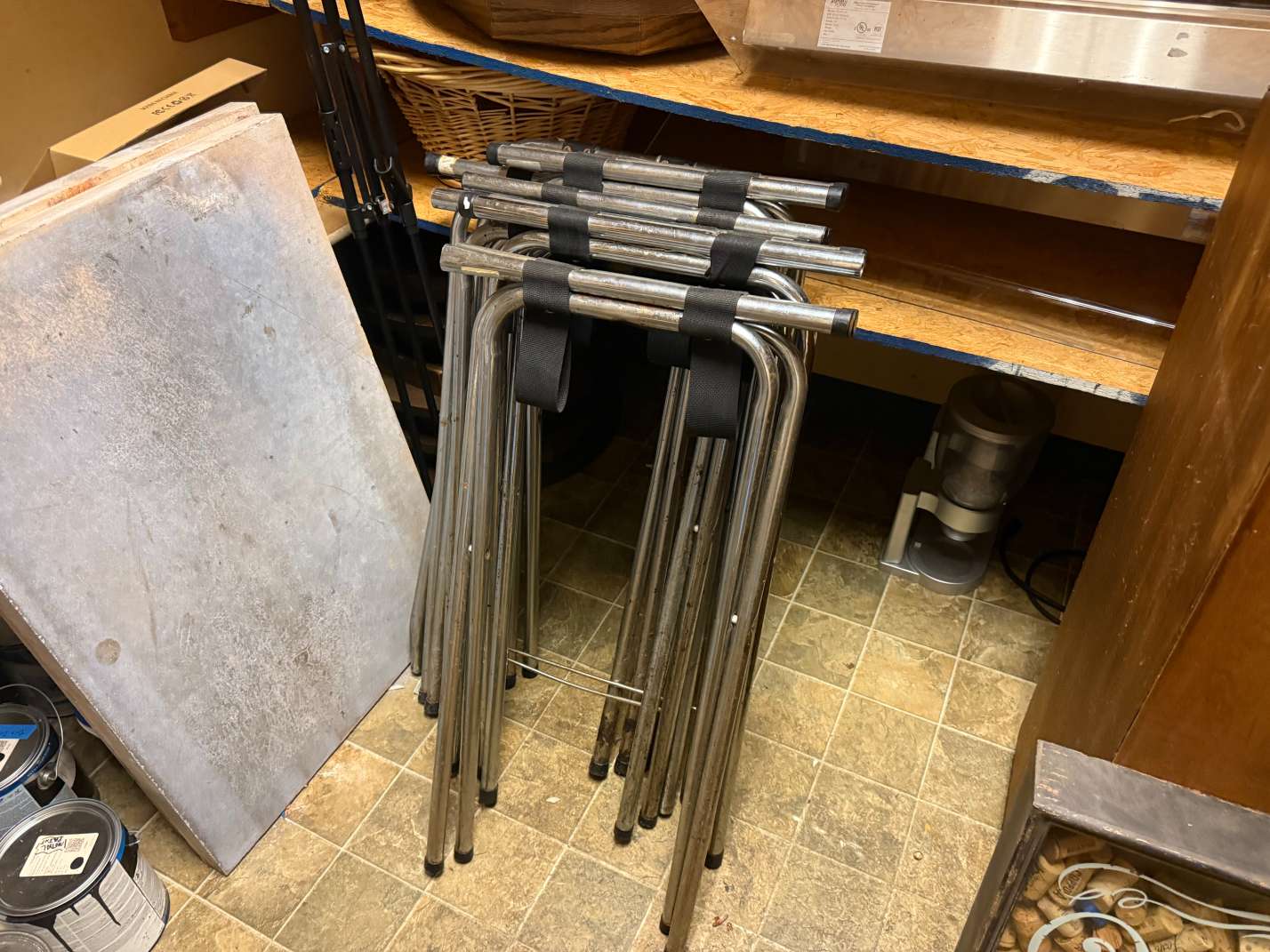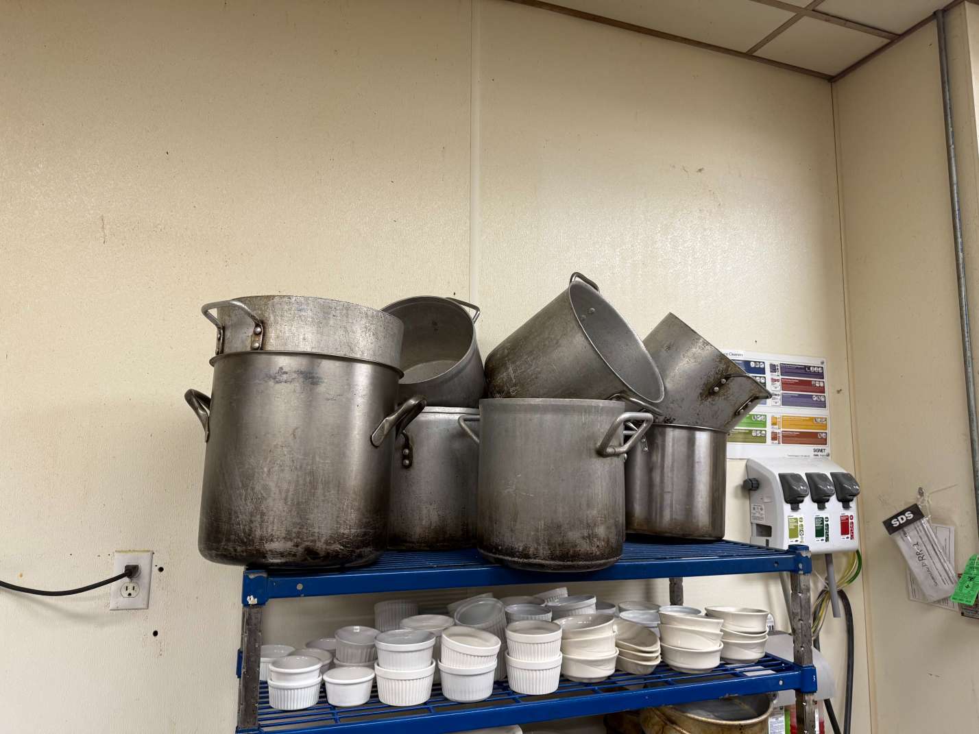 4ft Stainless Tables – 6ft Stainless Tables – Wear Ever Sheet Pan Racks – Commercial Pots – Commercial Pans – Warming Trays – Baking Pans – Always Can Rack – Stainless Racks – Stainless Mixing Bowls – Catering Supplies/Equipment – Baskets – Glasses – Dishes – Folding Tables