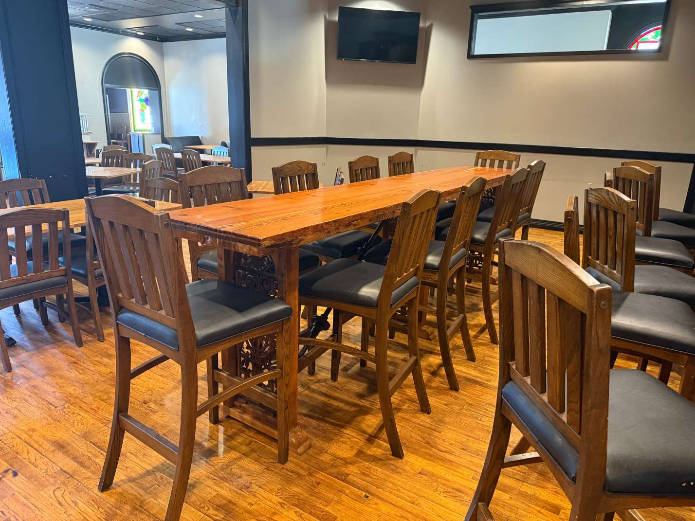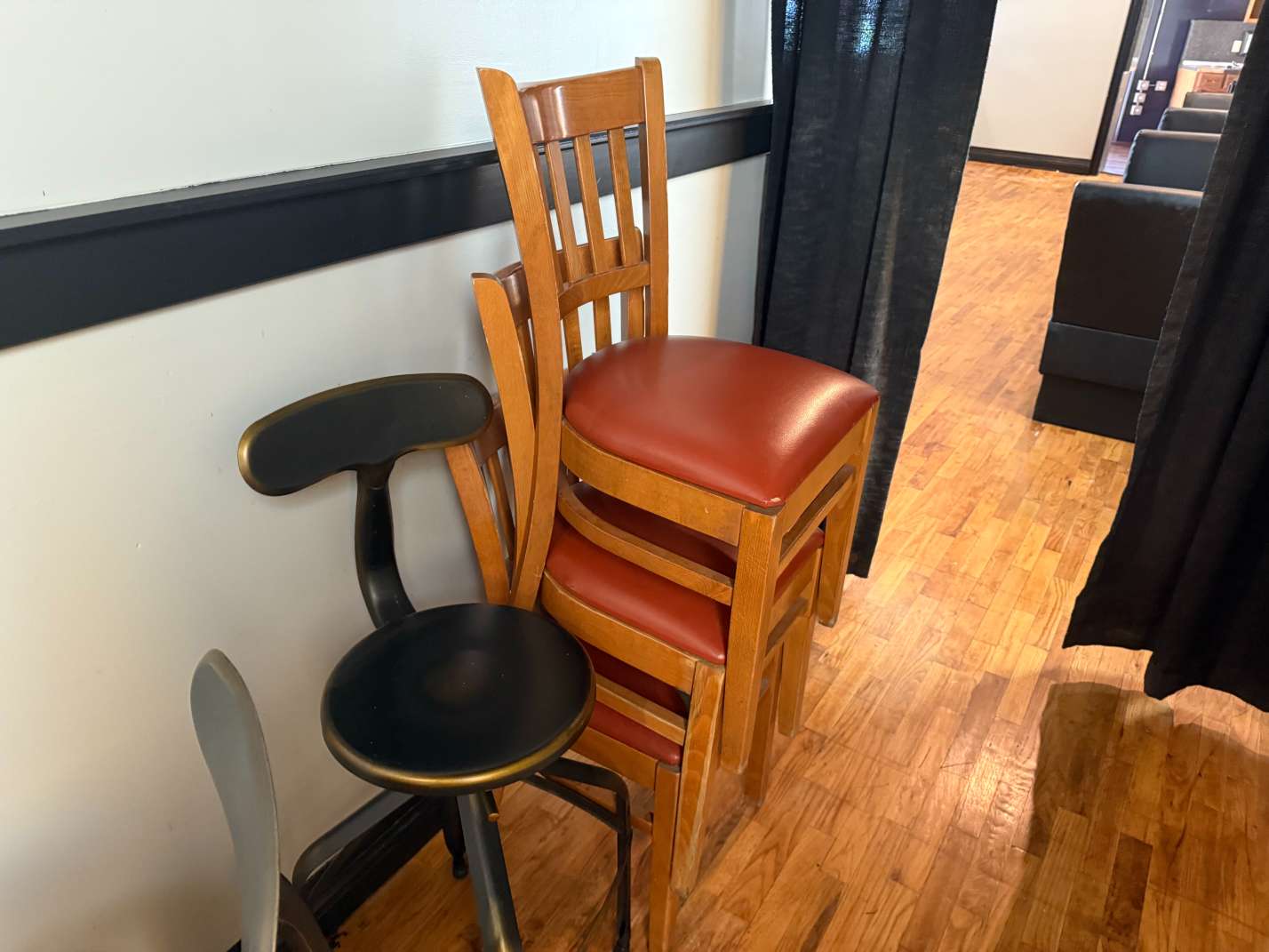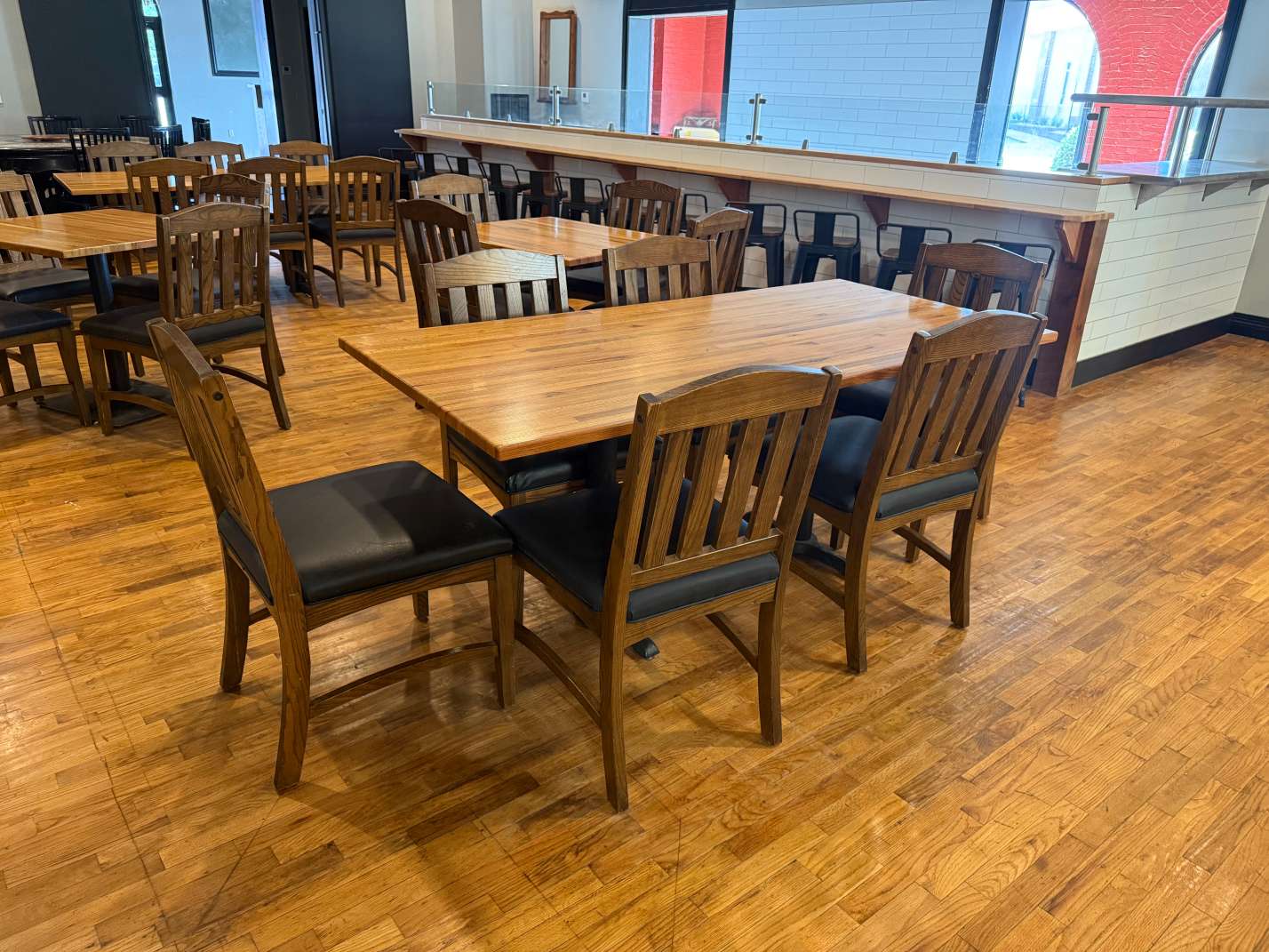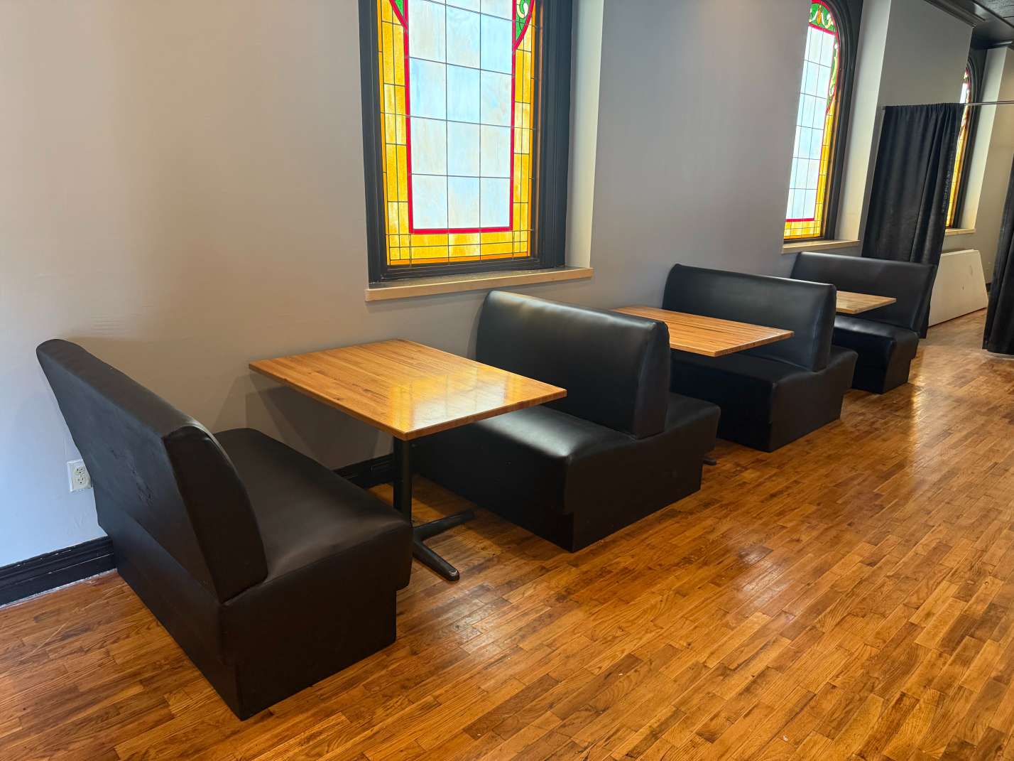 (3) Booths W/ Tables – (4) 4-Top Tables – (3) 8-Top Tables – (16) Bar-Height Chairs – (45) Chairs – (20) Bar Stools – High Chairs – Booster Seats