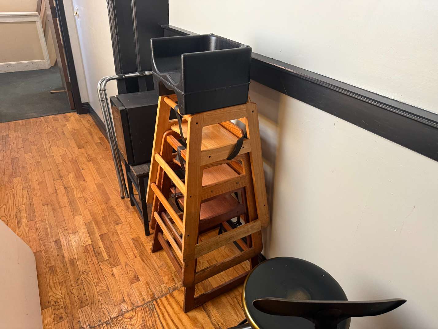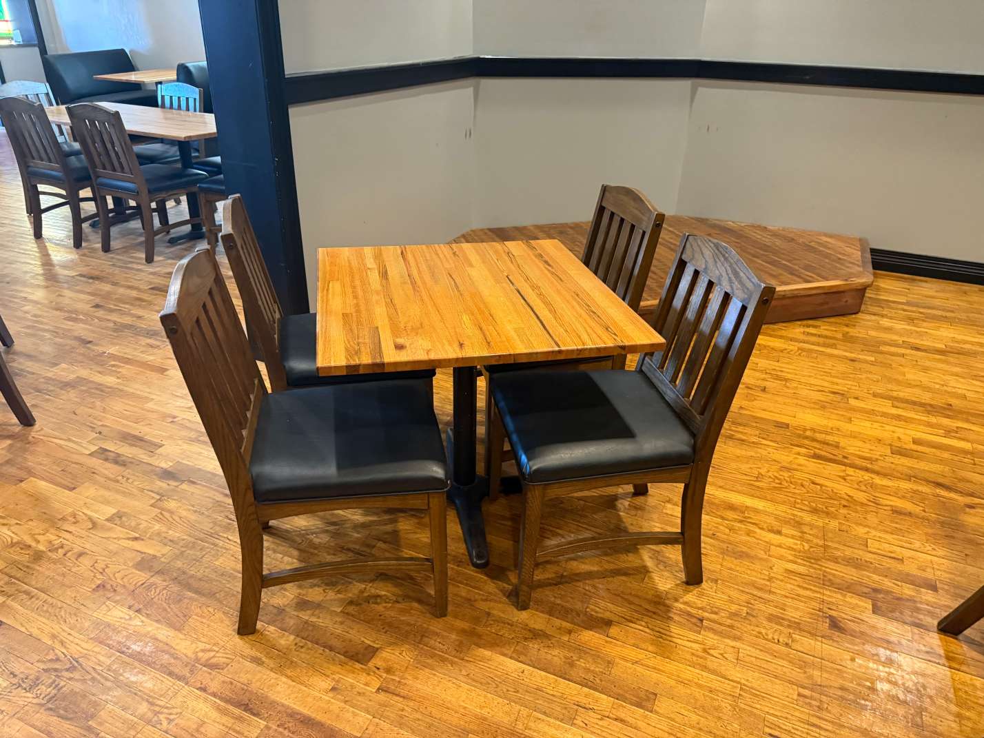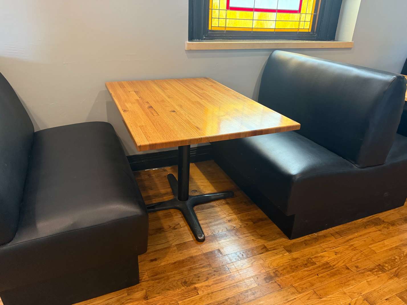 (3) Booths W/ Tables – (4) 4-Top Tables – (3) 8-Top Tables – (16) Bar-Height Chairs – (45) Chairs – (20) Bar Stools – High Chairs – Booster Seats