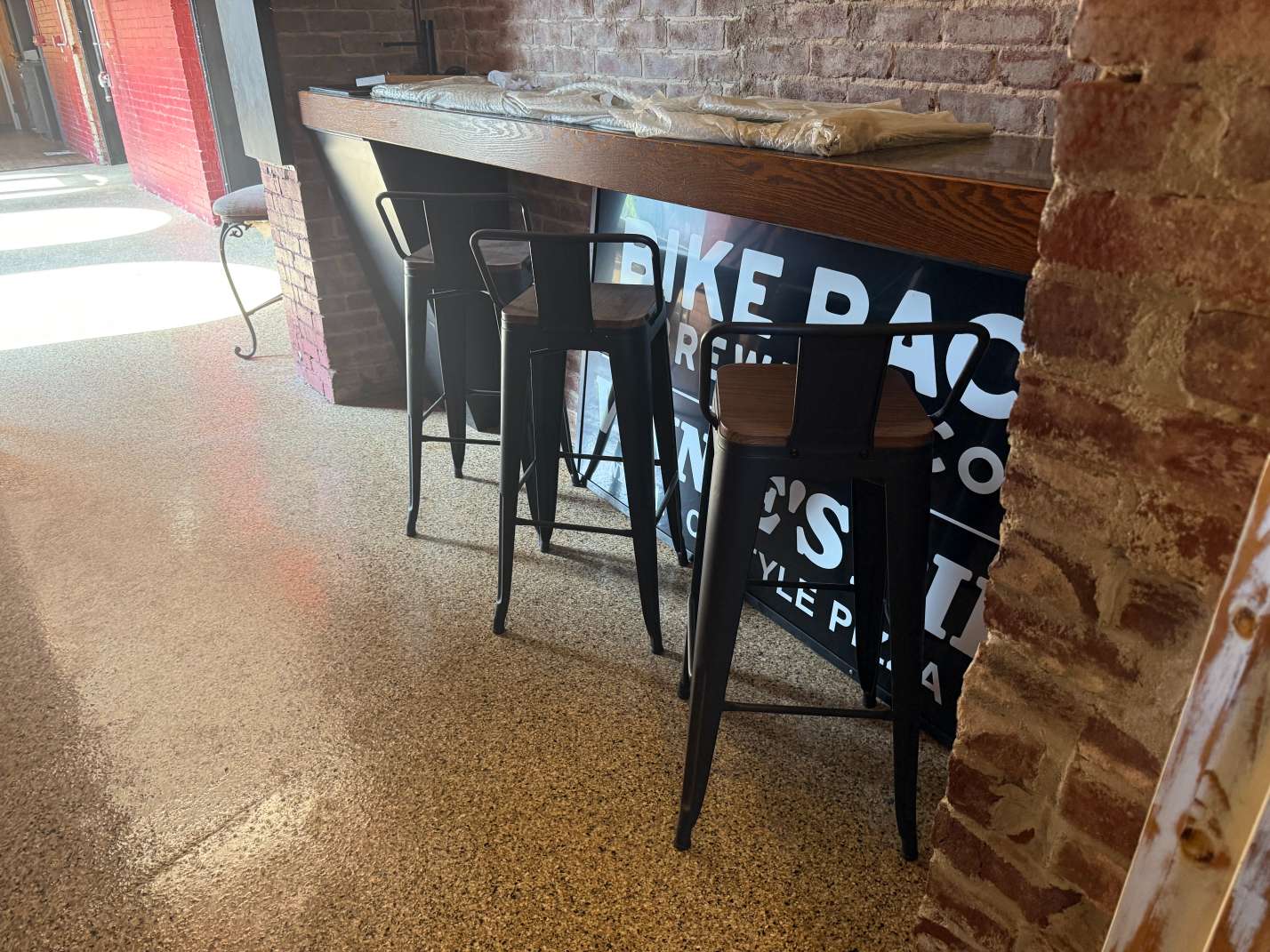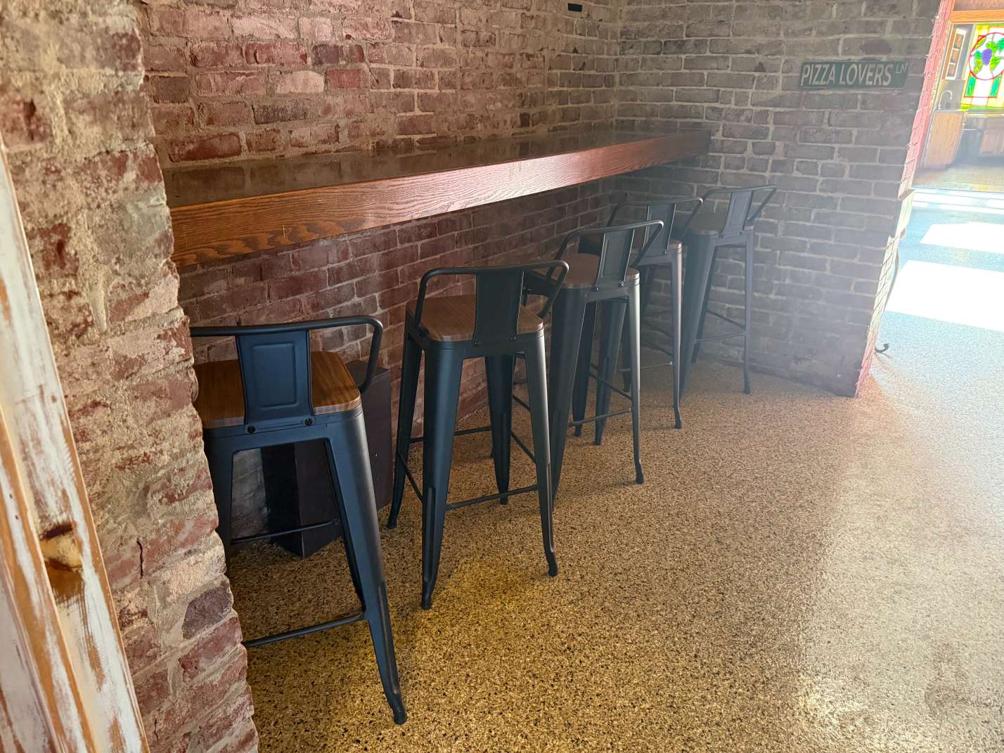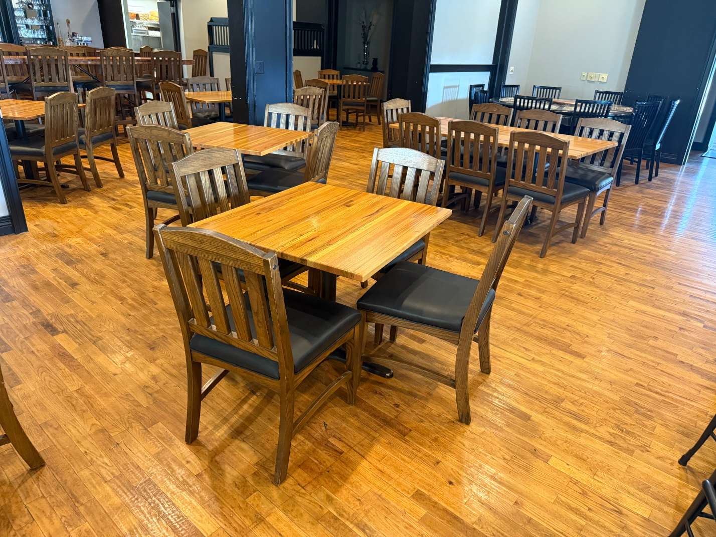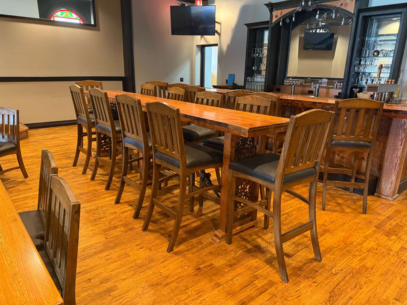(3) Booths W/ Tables – (4) 4-Top Tables – (3) 8-Top Tables – (16) Bar-Height Chairs – (45) Chairs – (20) Bar Stools – High Chairs – Booster Seats