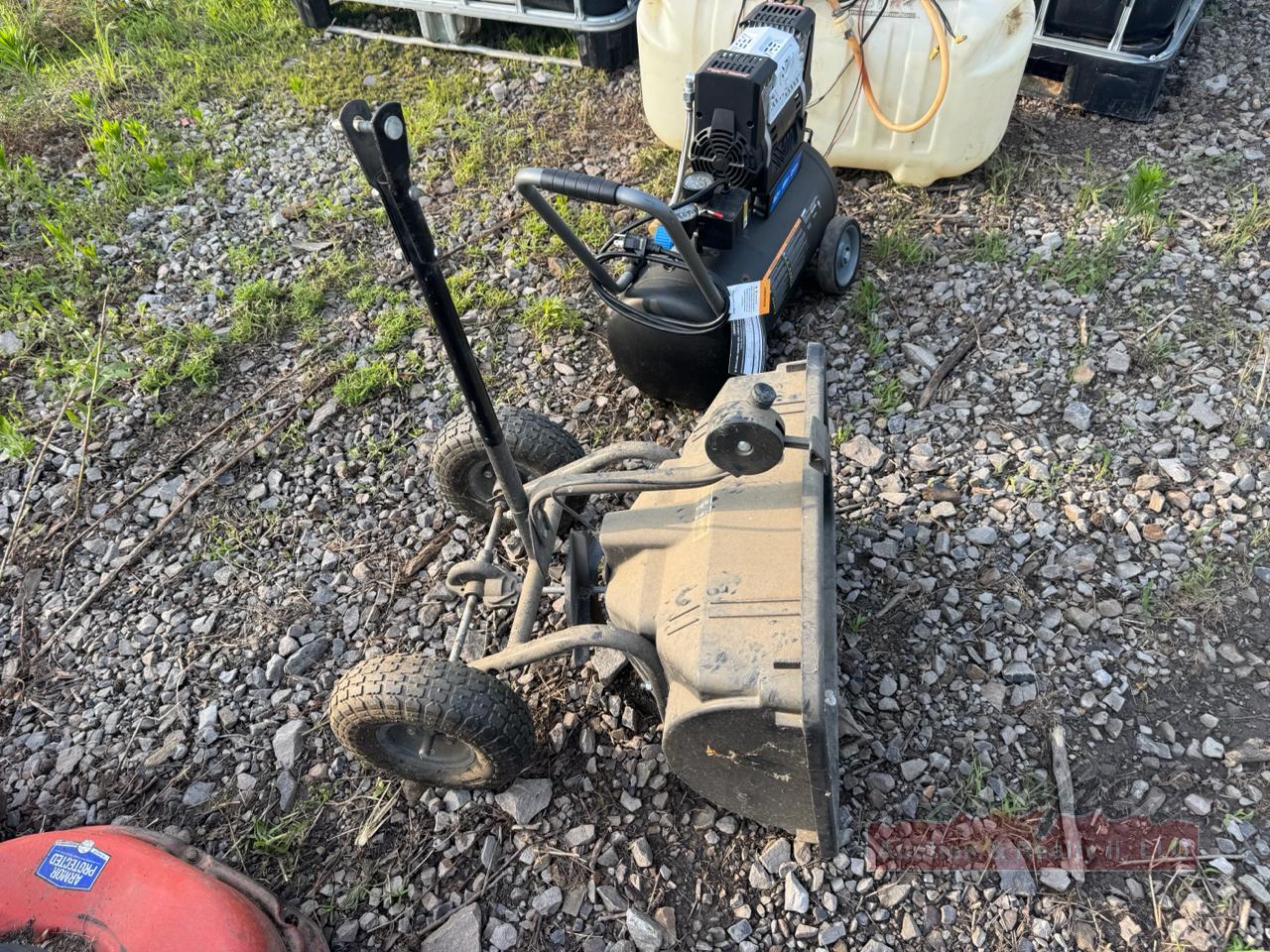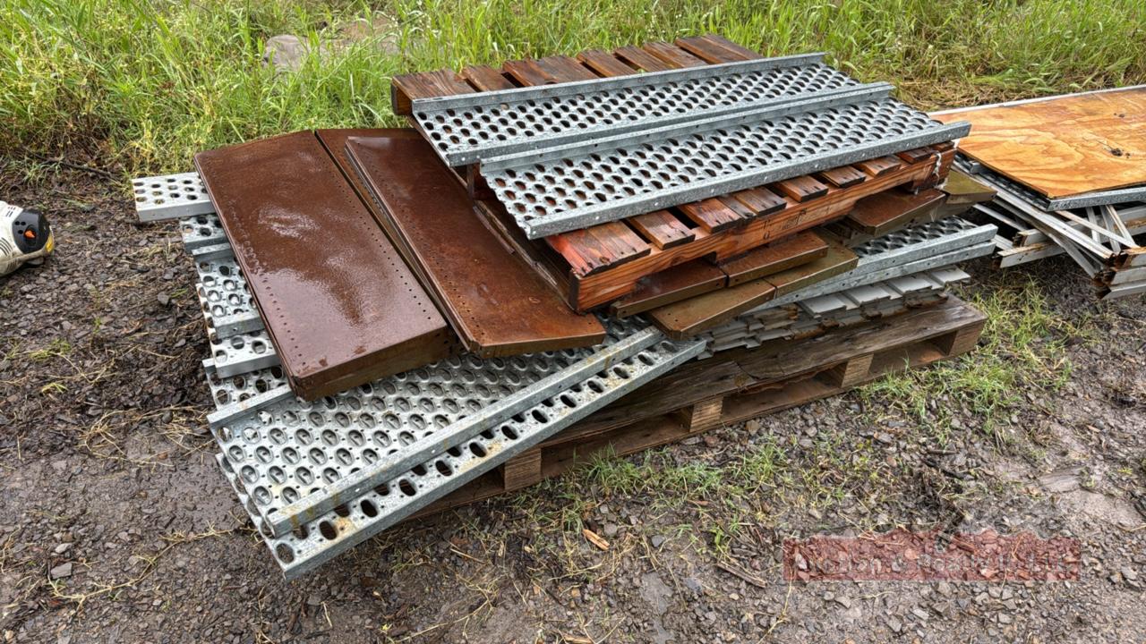 Miscellaneous: Atwoods Job Box – Yard Machines Edger – 8×7 Garage Door (x2) – Attic Fan (x2) – Stretch Posts (x8) – Hamilton Safe Night Depository – Tractor Cab Roof – Slip – Frame on Wheels – Metal Pipe – (6) 3in x 20ft Aluminum Conduit – (6) 2.5in x 13ft Aluminum Conduit – (6) 2in Pipe Carrier – Misc Channel Metal – Outdoor AC Unit – Metal Rack – Metal Staris – Telehandler Forks – Crown Electric Pallet Jack – Yale Electric Pallet Stacker – Self Dumping Hopper – Self Dumping Hopper Slip