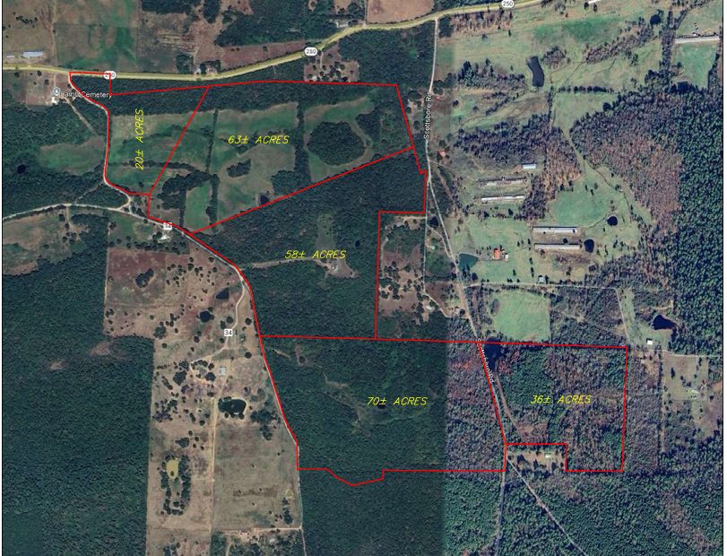 Tract 1: Appx 20 acres with road frontage on HWY 250 & Wildforest Road