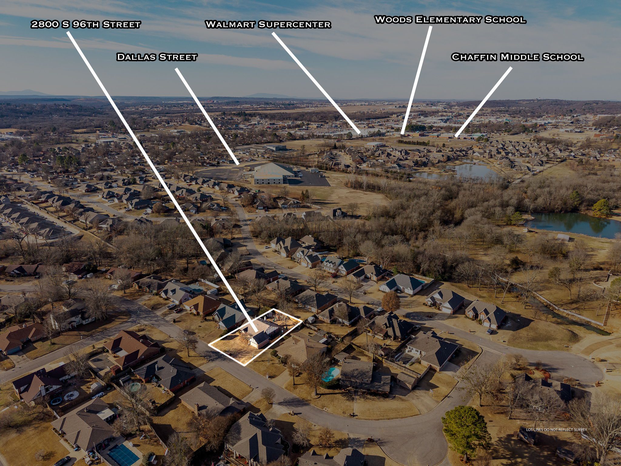 Directions: From Rogers Ave turn North on Massard Road go 4/10 mile; then turn East on Dallas St go 9/10 mile; then turn North on S 96th St.