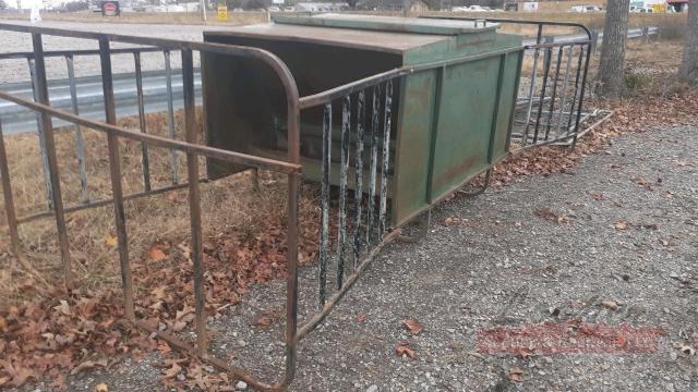 Metal Stoplights – (2) Metal Pipes – 2.5 Ton M35 – Chicken House Doors – (3) 10ft Economy Round Bar Gate 5pc – (2) 8ft Economy Round Bar Gate 5pc – 8ft Economy Round Bar Gate (5pc) – 14ft Economy Round Bar Gate (5pc) – 16ft Economy Round Bar Gate (5pc x2) – 8ft Horse Stall Economy Round Bar 8pc – Powder River Double Kreep Feeder – Two Metal Troughs – Two Oval Concrete Culverts – Round Concrete Culverts – Crate w/ Rebar Caps – (4) Propane Tanks & Forklift Tire – (2) 250 Gal Propane Tank – 150 Gal Fuel Tank w/ Stand – Aluminum Fuel Tank – Steel Saw Horses (2)