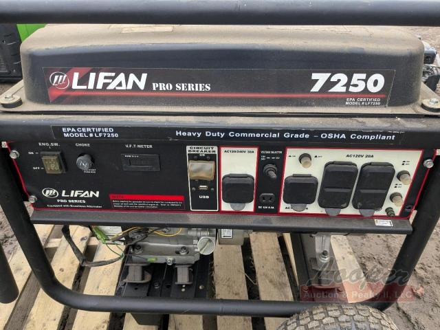 Natural Gas Generator – Brave EFI Generator – Generac Generator w/ Disconnect – (30+) Lifan Generators / Pumps / Power Units (various models) – Lifan 3in Water Pump – Lifan 1.5 Water Pump – (2) Lifan Water Pump – Lifan Hydro Pro – Lifan Pro Series Generator – Lifan Generator Motor – (2) Lifan ES4100 Generator – Lifan 860i Generator – (3) Lifan 2200 (incl. Refurbs) – Lifan Energy Storm Generator Refurb – Lifan Energy Storm 4000 Generator – Lifan Energy Storm 4100 Generator – Miller AEAD-200LE Welder/Generator – Miller Bobcat 225 Welder/Generator – IDEALARC 250 Welder – Stanley 2in Water Pump