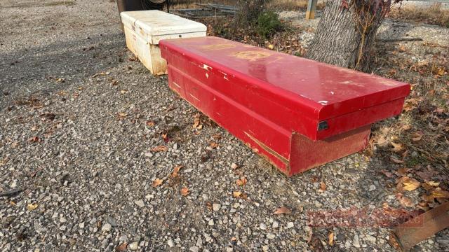 3pt Posthole Digger – 3pt 7ft Angle Blade – 3pt Seeder/Fertilizer – 3pt Post Digger w/ Auger – 3pt Countyline Log Splitter – 3pt Countyline Tiller – 3pt Bale Lift – (10+) Quick Attach Skid Steer Weldable Plates – (6) Skid Steer Trailer Mover – Material Handler JIB – Engine Hoist – Air Door – Aluminum Headache Rack – 5ft Delta Tool Box – 6ft Red Truck Tool Box – White Magnum Tool Box – Pack Rat Tool Box – Fuel Cell – Front End Loader Bucket (x2)