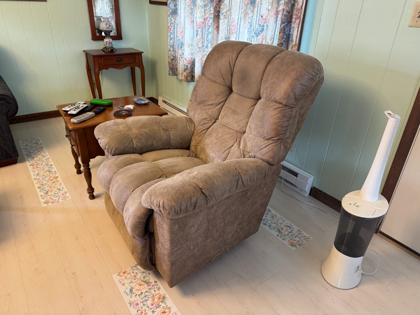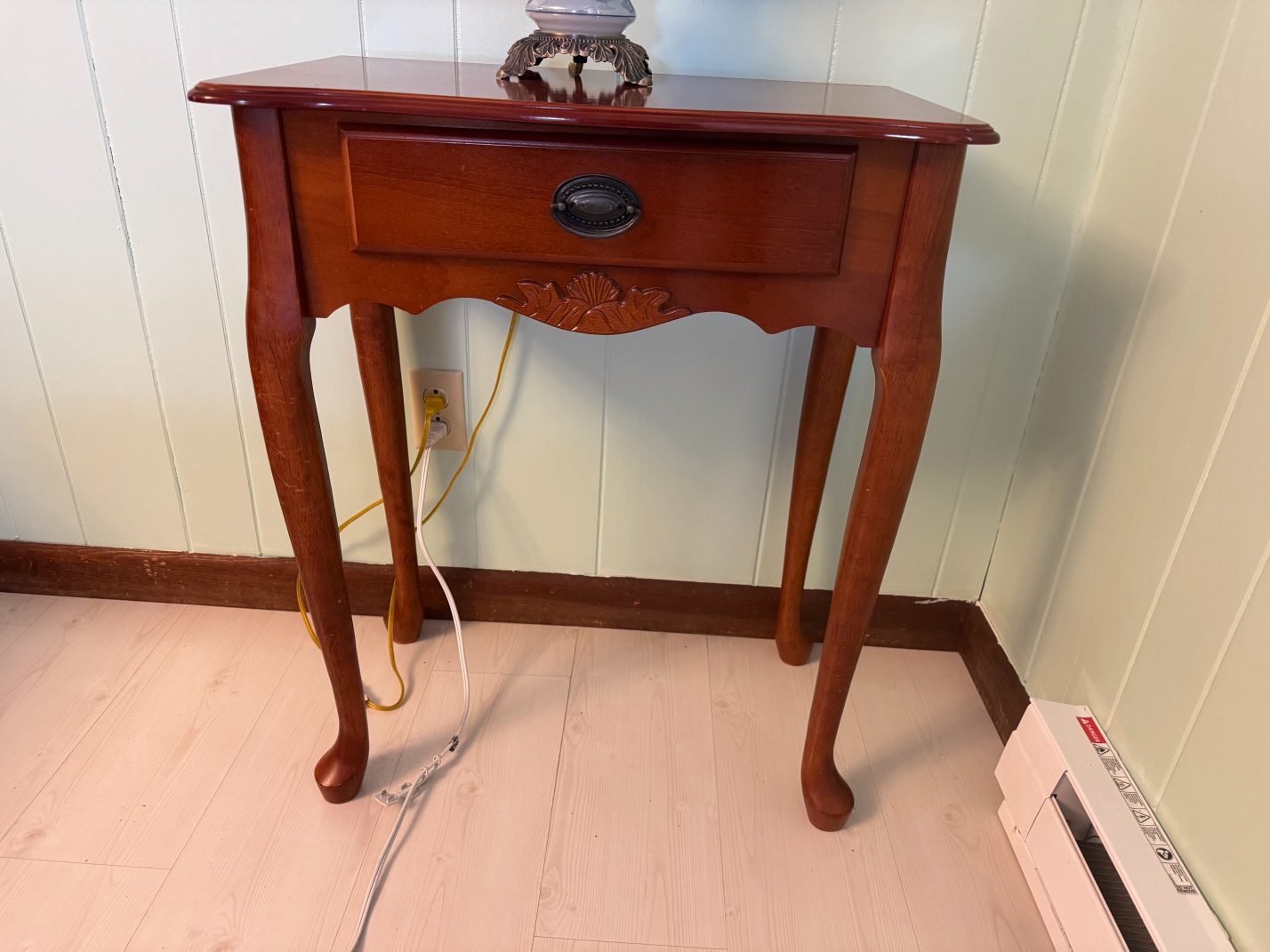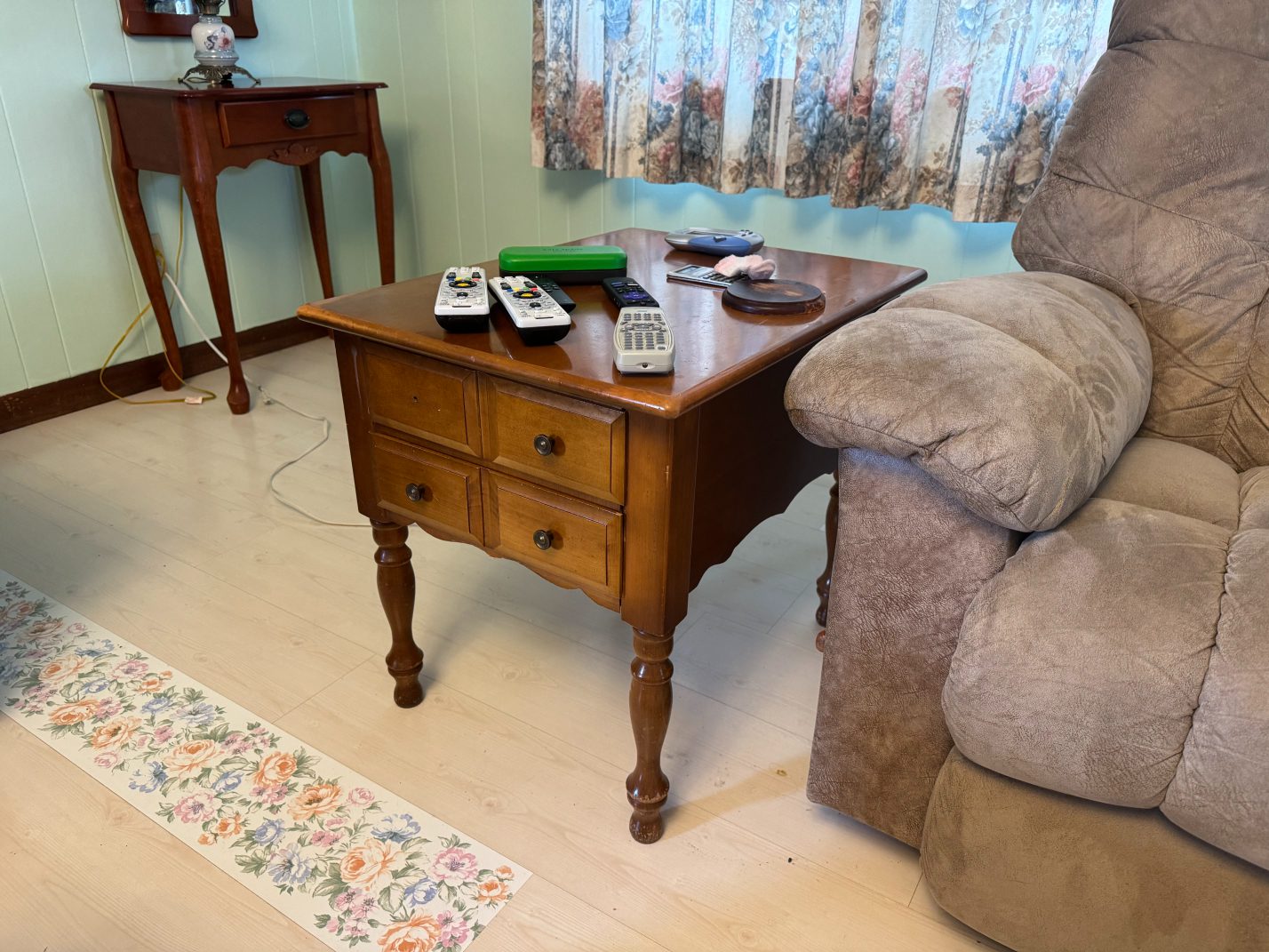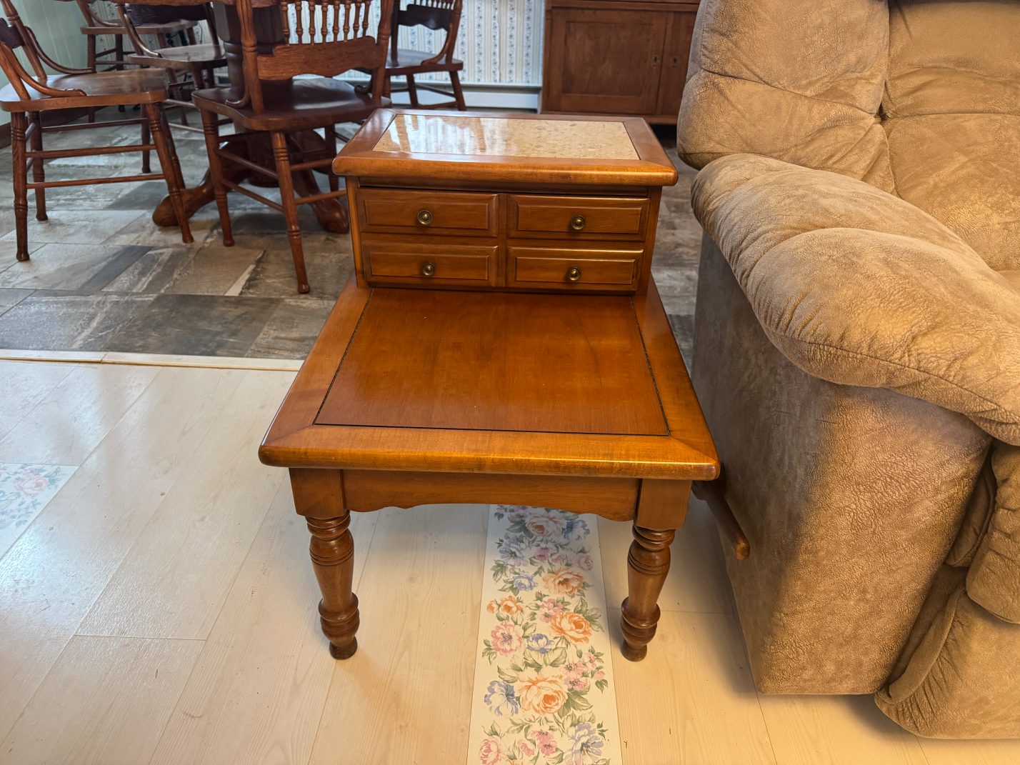 Furniture: La-Z-Boy Recliner – End Table – Couch – Nightstand – Ethan Allen Baumritter Heirloom Nutmeg Maple Dough Box Coffee Table – Full-Length Mirrors – Two Tier End Tables – Electric Fireplace TV Stand – Kitchen Table – Filing Cabinets – Bookshelf – Cabinet – Wall Clock – Television – Console Table – Tall Wood Dresser – Vintage Wooden Rolling Drop Leaf Tea Cart – Post Outdoor Gliders – Vintage Desk – Telephone Bench – Vintage Drop Leaf Table – Vintage Maple Full-Size Poster Bed – Dresser with Mirror – Bathroom Vanity – Garden Table – Antique Wash Stand