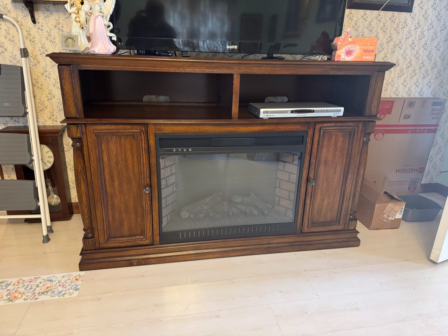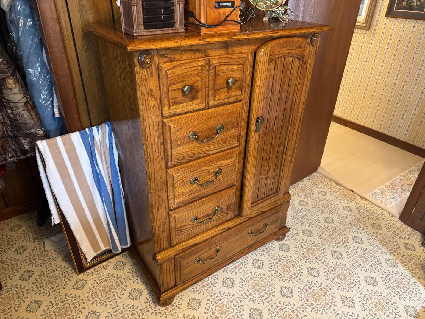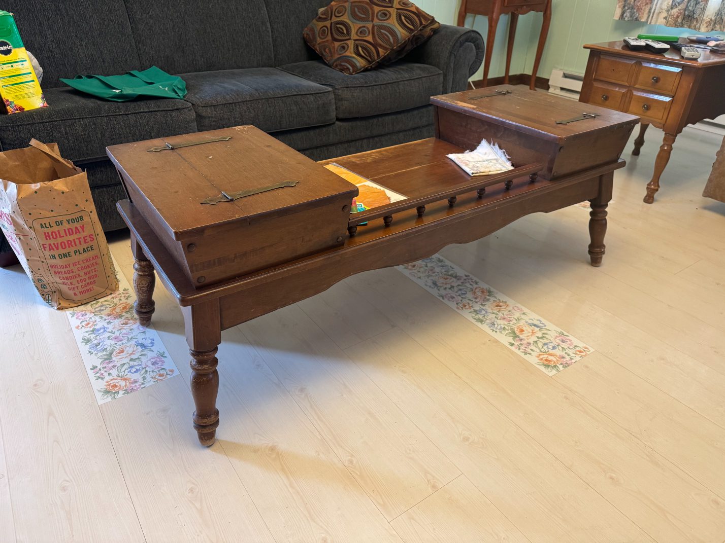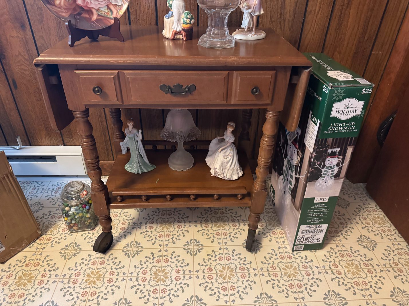 Furniture: La-Z-Boy Recliner – End Table – Couch – Nightstand – Ethan Allen Baumritter Heirloom Nutmeg Maple Dough Box Coffee Table – Full-Length Mirrors – Two Tier End Tables – Electric Fireplace TV Stand – Kitchen Table – Filing Cabinets – Bookshelf – Cabinet – Wall Clock – Television – Console Table – Tall Wood Dresser – Vintage Wooden Rolling Drop Leaf Tea Cart – Post Outdoor Gliders – Vintage Desk – Telephone Bench – Vintage Drop Leaf Table – Vintage Maple Full-Size Poster Bed – Dresser with Mirror – Bathroom Vanity – Garden Table – Antique Wash Stand