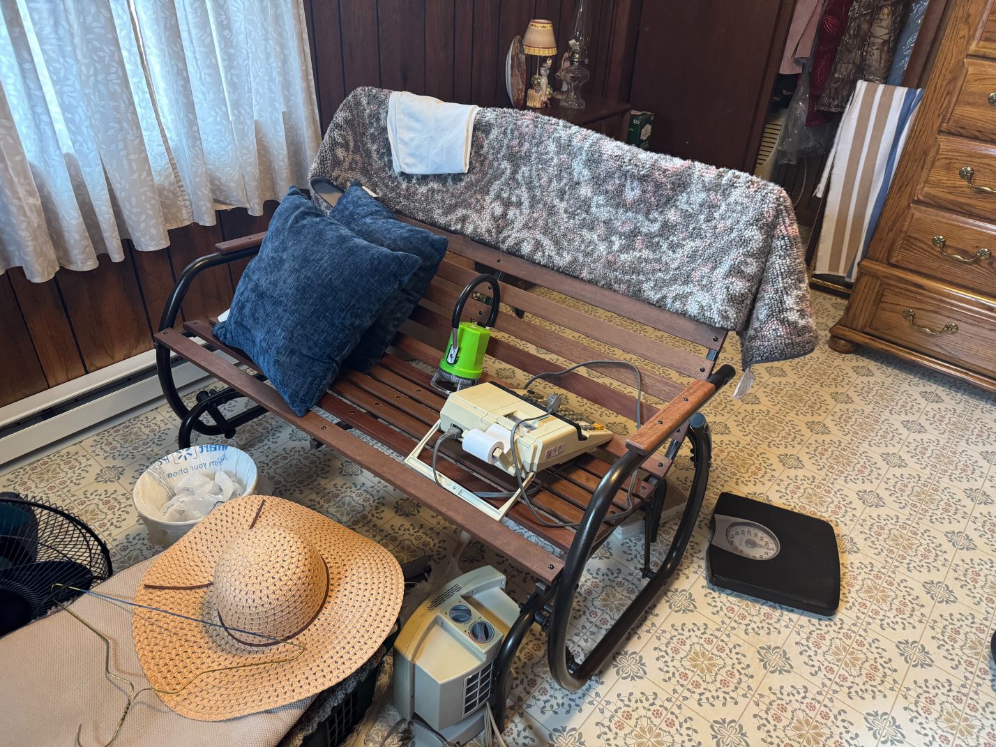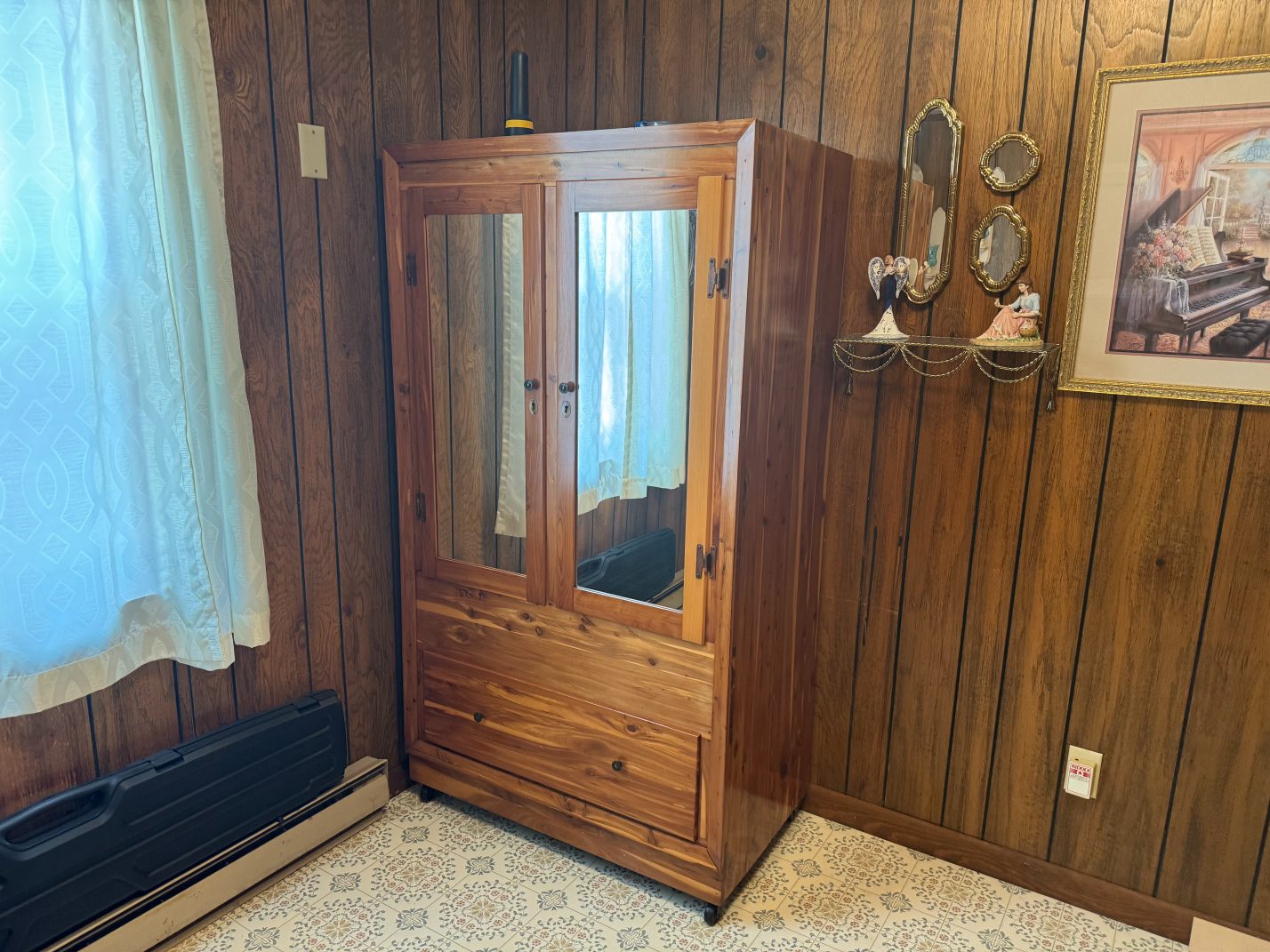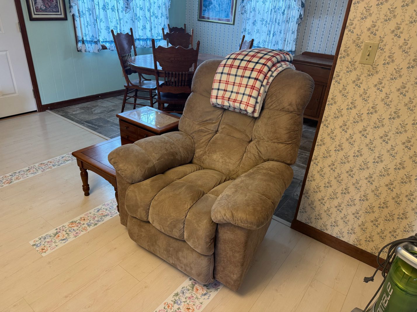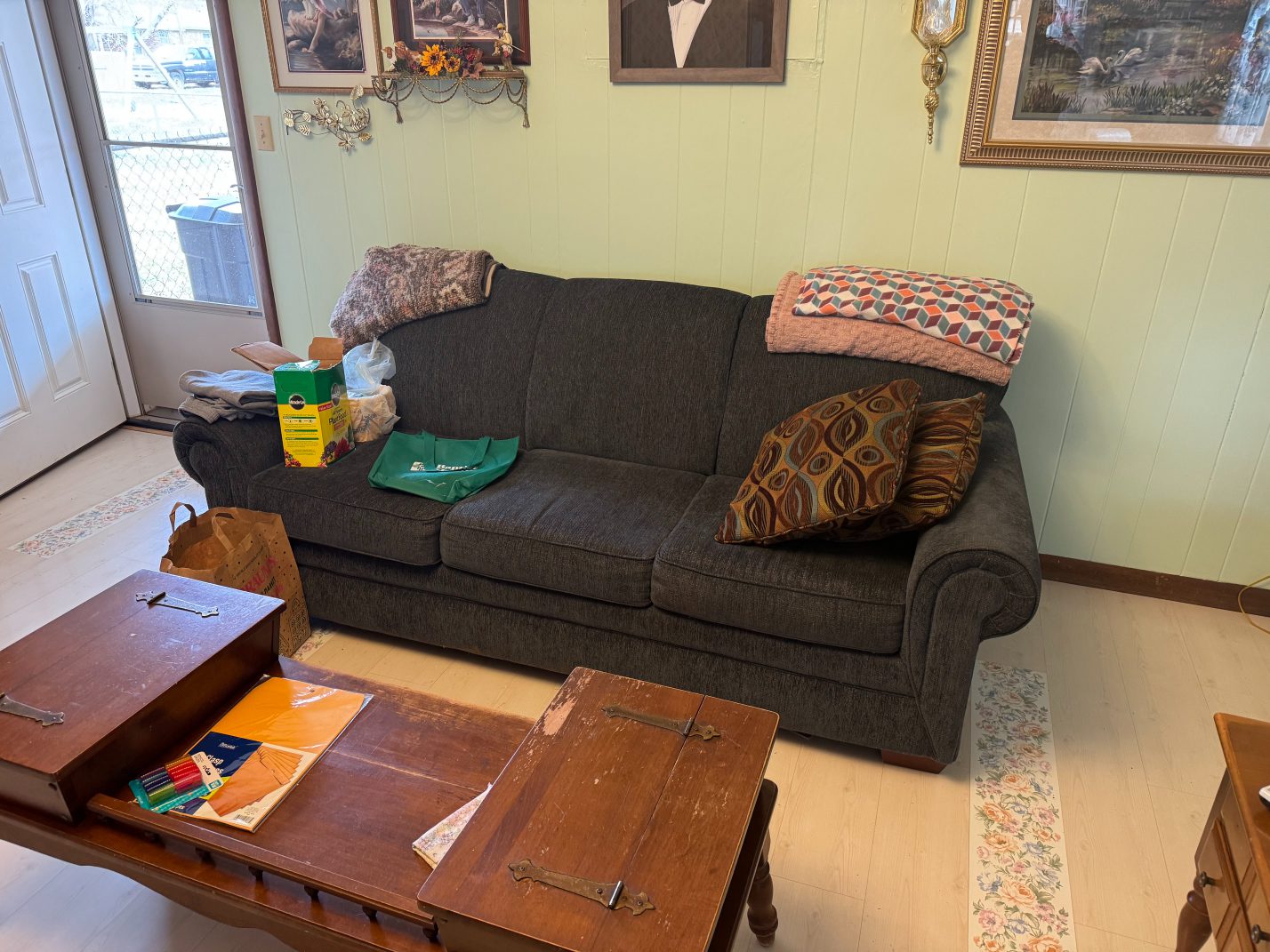 Furniture: La-Z-Boy Recliner – End Table – Couch – Nightstand – Ethan Allen Baumritter Heirloom Nutmeg Maple Dough Box Coffee Table – Full-Length Mirrors – Two Tier End Tables – Electric Fireplace TV Stand – Kitchen Table – Filing Cabinets – Bookshelf – Cabinet – Wall Clock – Television – Console Table – Tall Wood Dresser – Vintage Wooden Rolling Drop Leaf Tea Cart – Post Outdoor Gliders – Vintage Desk – Telephone Bench – Vintage Drop Leaf Table – Vintage Maple Full-Size Poster Bed – Dresser with Mirror – Bathroom Vanity – Garden Table – Antique Wash Stand