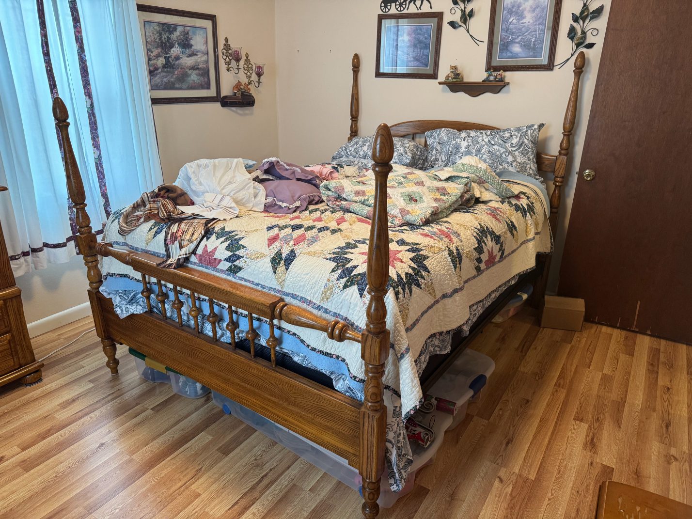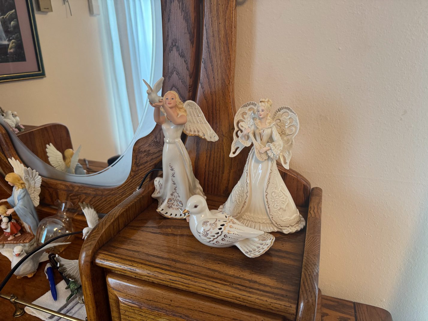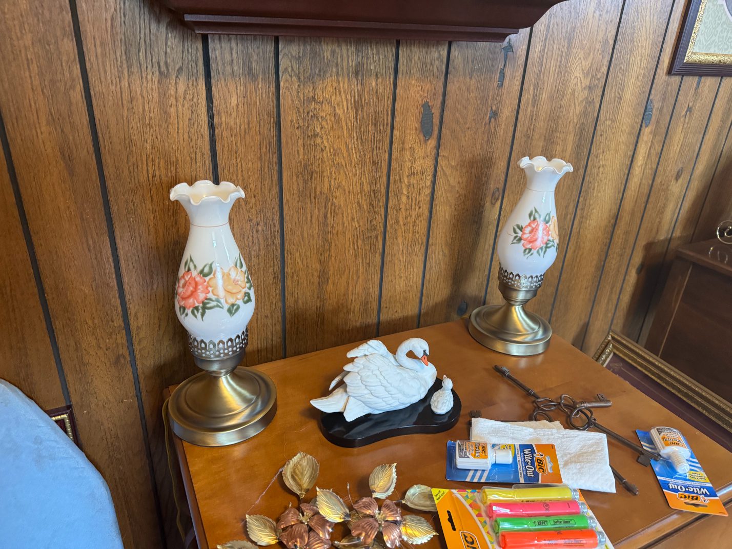 Household Items: Refrigerator – Whirlpool Washer & Dryer – Upright Freezer – Floral Hurricane Lamp – Microwave – Oster Digital Toaster Oven – Pink Bouquet Oval Baker Wire Basket & Trivet Set – Electric Kitchenwares – Food Processor – Books – Vintage Indiana Glass Covered Candy Dish – Dessert Display Tray – Stainless Steel Sink Shelf Rack – China – Kitchen Center Mixer – Coffee Maker – Roaster – Cooking Wares – DVD Player – Oil Lamp – Lantern – Vintage Norman Rockwell Collector’s Edition Radio & Cassette Player – Dove Figurines – 2 Electric Milk Glass Hurricane Lamps – Compote Bowl – Sewing Machine – Table Lamp – Pedestal Fan – Jadeite Glass Salt & Pepper Shaker – Kitchen Towels and Dishcloths – CDs and DVDs – “The Touch of the Master’s Hand” Print – The Shepherd’s Daughter print – Vintage Gold Oval Girl With Basket Picture – Angel Framed Matted Print – Vintage Swan And Gazebo Painting – Bettie Herbert Felden “the Garden Party” Print – “Amelia’s Garden” Picture – Vintage Victorian Garden Picture By D. Giacomo – “Tea by Seashore” Picture – Vintage Precious Moments Picture – Charles Courtney Curran Painting Picture – Flower Painting Picture – Matted Print Of Country Living – “Cottage Afternoon” by Barbara Mock – Vintage Gold Hexagon Farmhouse – Marbles – Lady Caroline Figurine – Musical Porcelain Angel – White Dove Pair Figurines – Antique Figurines – Amelia Porcelain Doll – Camille Porcelain Figurine – Lady Covington Porcelain Figurine – “A Time To Love” Collector Plate – Porcelain Graceful Reflection Swan “Dear to the Heart” Plate by Sandra Kuck – “Once Upon A Time” Plate by Sandra Kuck – Collectible Railroad Lanterns – Assorted Figurines – “First Snow” Plate by Sandra Kuck – Sandals – Angel Serenade Tree Topper – Porcelain Tamiki Mizuno Birds Mockingbird Mother Baby – Holiday Time Light Up Snowman