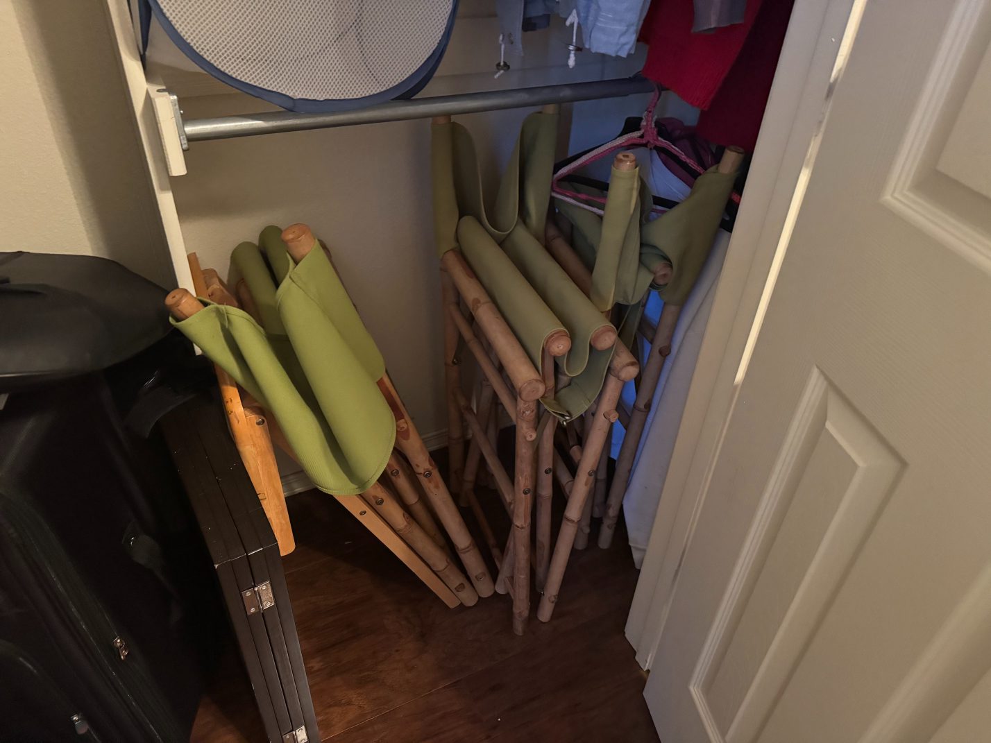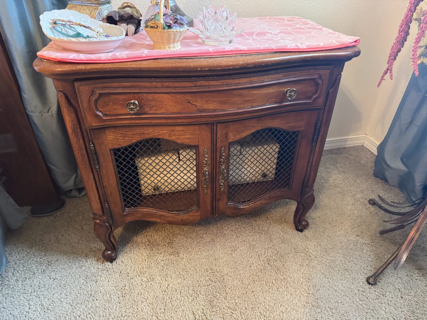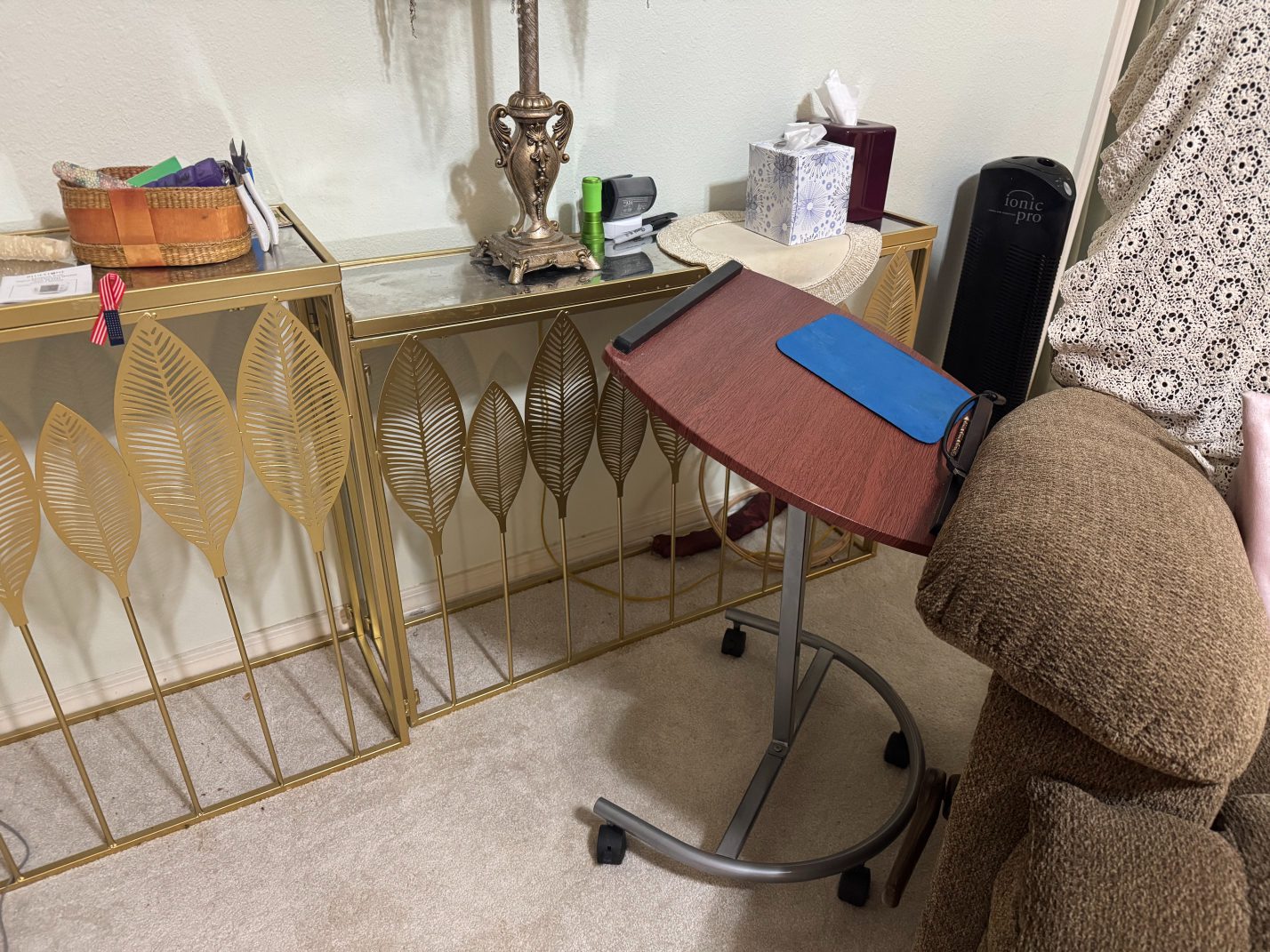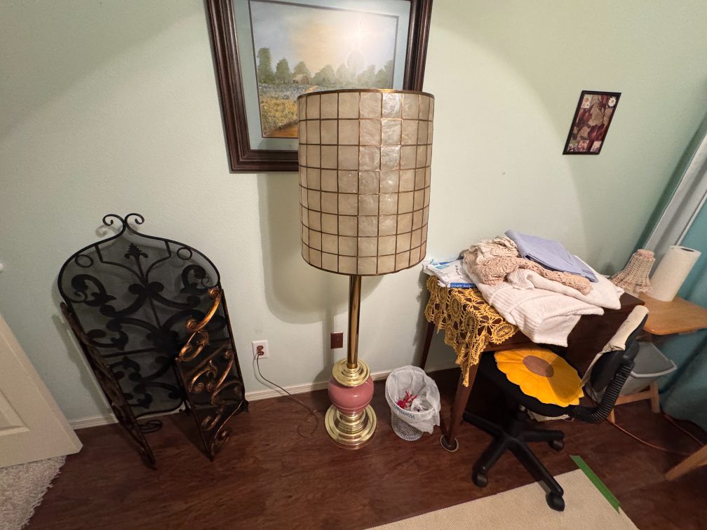Furniture: Couch – Round Coffee Table – Wooden Folding Chairs – Foot Stool – Recliner Sofa – Ornate Round Mirrored Table – Console Table – Mobile Rolling Laptop Desk – Wurlitzer Piano – Vintage Dresser – Metal Bed – Vintage Sally Eckman Roberts Butterfly Stool – Storage Bench – Oak Nightstand – Office Chair – 6-Drawer Cart Rolling Cabinet – Folding Table – Thomasville Oak Nightstand – Queen Bed – 2-Drawer Filing Cabinet – Patchwork Upholster – Round Table With Cloth – Rolling Kitchen Cart – Kitchen Cabinet – Dining Chair – Bookshelf – Bamboo Tray Table – Folding Bamboo Side Table – Bamboo Bar Stool – Patio Chairs And Table – Iron Corner Shelf – Plant Stand – Hanging Swing – Ladies Clothing Armoire – Wooden Bed – Bench Ottoman – Drawer Dresser – Wooden Arched Mirror – Jewelry Box – Standing Jewelry Chest – Dresser Vanity – Slipper Chair – Vintage End Table – Bird Feeder – Filing Cabinet – Shoe & Bag Display Stand – Gun Cabinet – Wooden Room Divider – Garden Chair – Cast Iron Plant Stand – Hexagon End Table