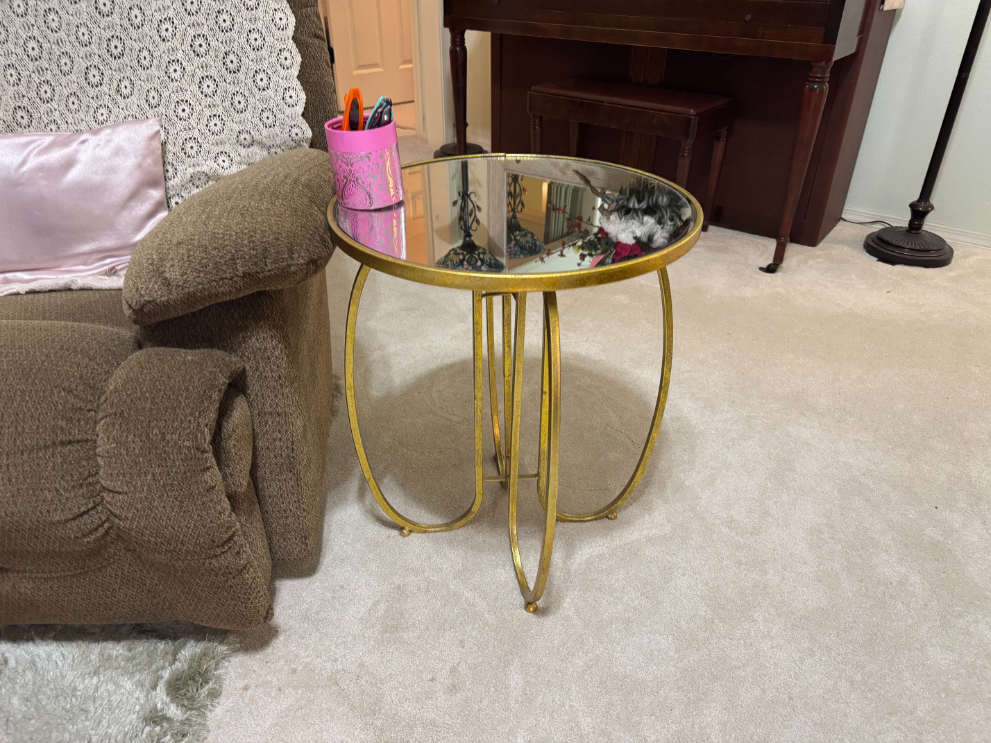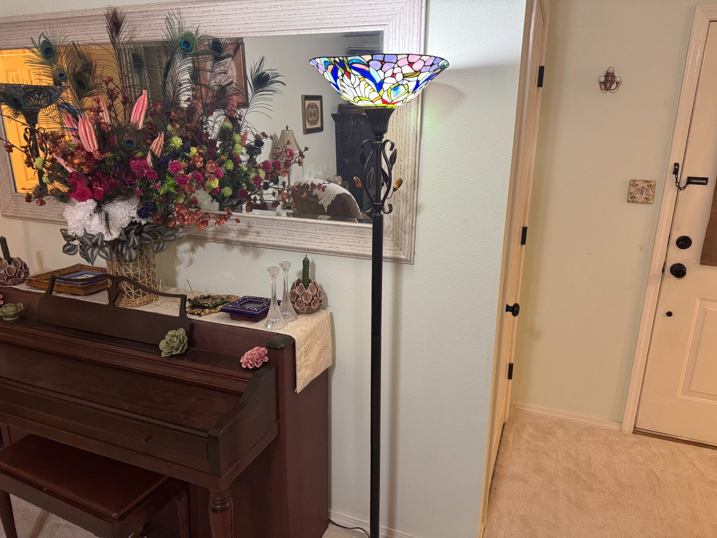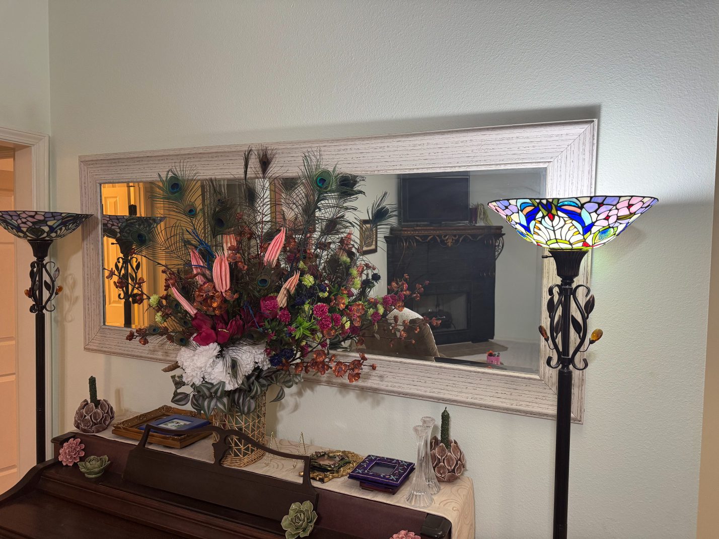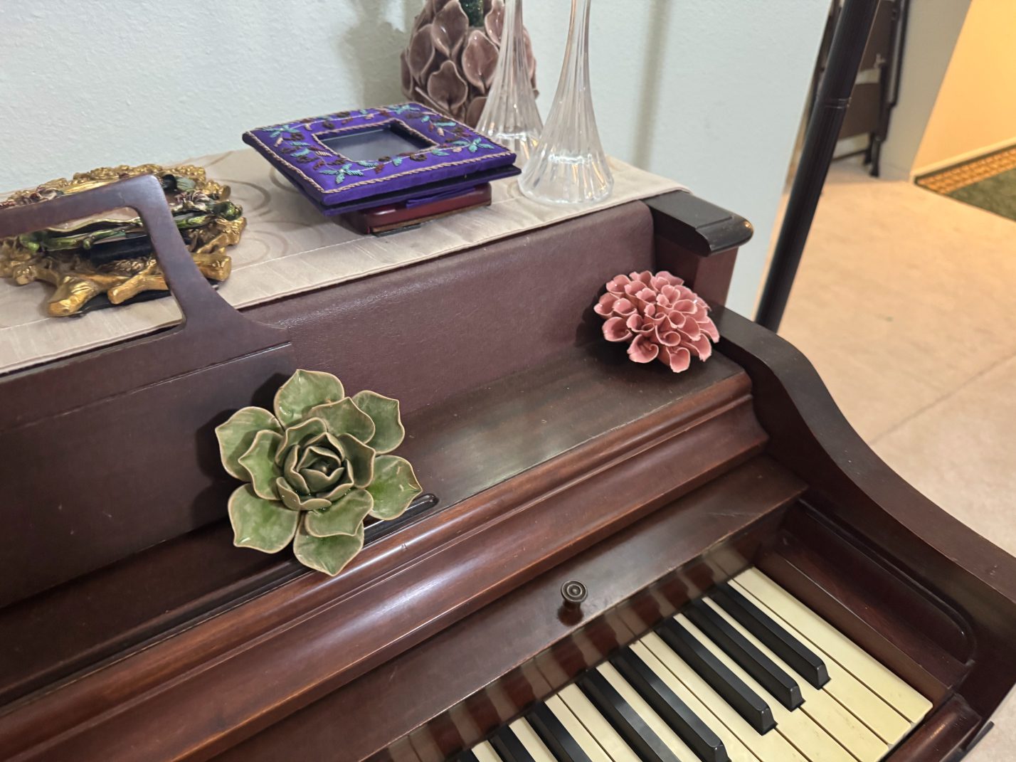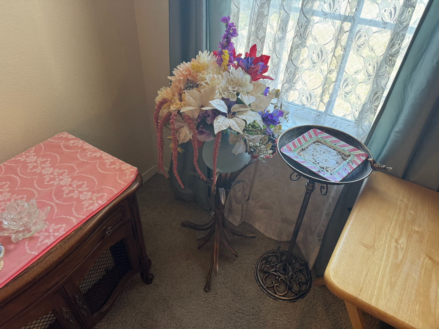 Furniture: Couch – Round Coffee Table – Wooden Folding Chairs – Foot Stool – Recliner Sofa – Ornate Round Mirrored Table – Console Table – Mobile Rolling Laptop Desk – Wurlitzer Piano – Vintage Dresser – Metal Bed – Vintage Sally Eckman Roberts Butterfly Stool – Storage Bench – Oak Nightstand – Office Chair – 6-Drawer Cart Rolling Cabinet – Folding Table – Thomasville Oak Nightstand – Queen Bed – 2-Drawer Filing Cabinet – Patchwork Upholster – Round Table With Cloth – Rolling Kitchen Cart – Kitchen Cabinet – Dining Chair – Bookshelf – Bamboo Tray Table – Folding Bamboo Side Table – Bamboo Bar Stool – Patio Chairs And Table – Iron Corner Shelf – Plant Stand – Hanging Swing – Ladies Clothing Armoire – Wooden Bed – Bench Ottoman – Drawer Dresser – Wooden Arched Mirror – Jewelry Box – Standing Jewelry Chest – Dresser Vanity – Slipper Chair – Vintage End Table – Bird Feeder – Filing Cabinet – Shoe & Bag Display Stand – Gun Cabinet – Wooden Room Divider – Garden Chair – Cast Iron Plant Stand – Hexagon End Table