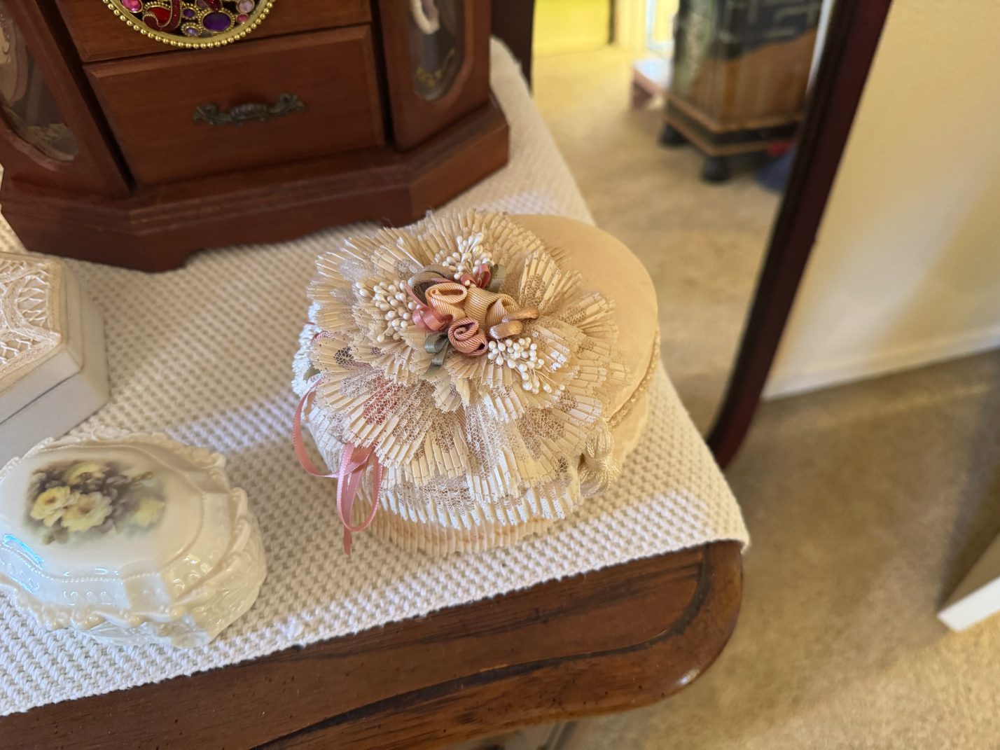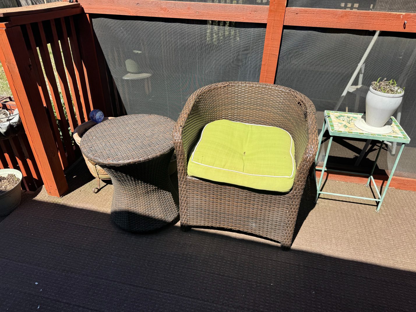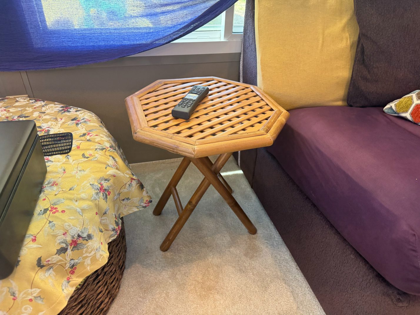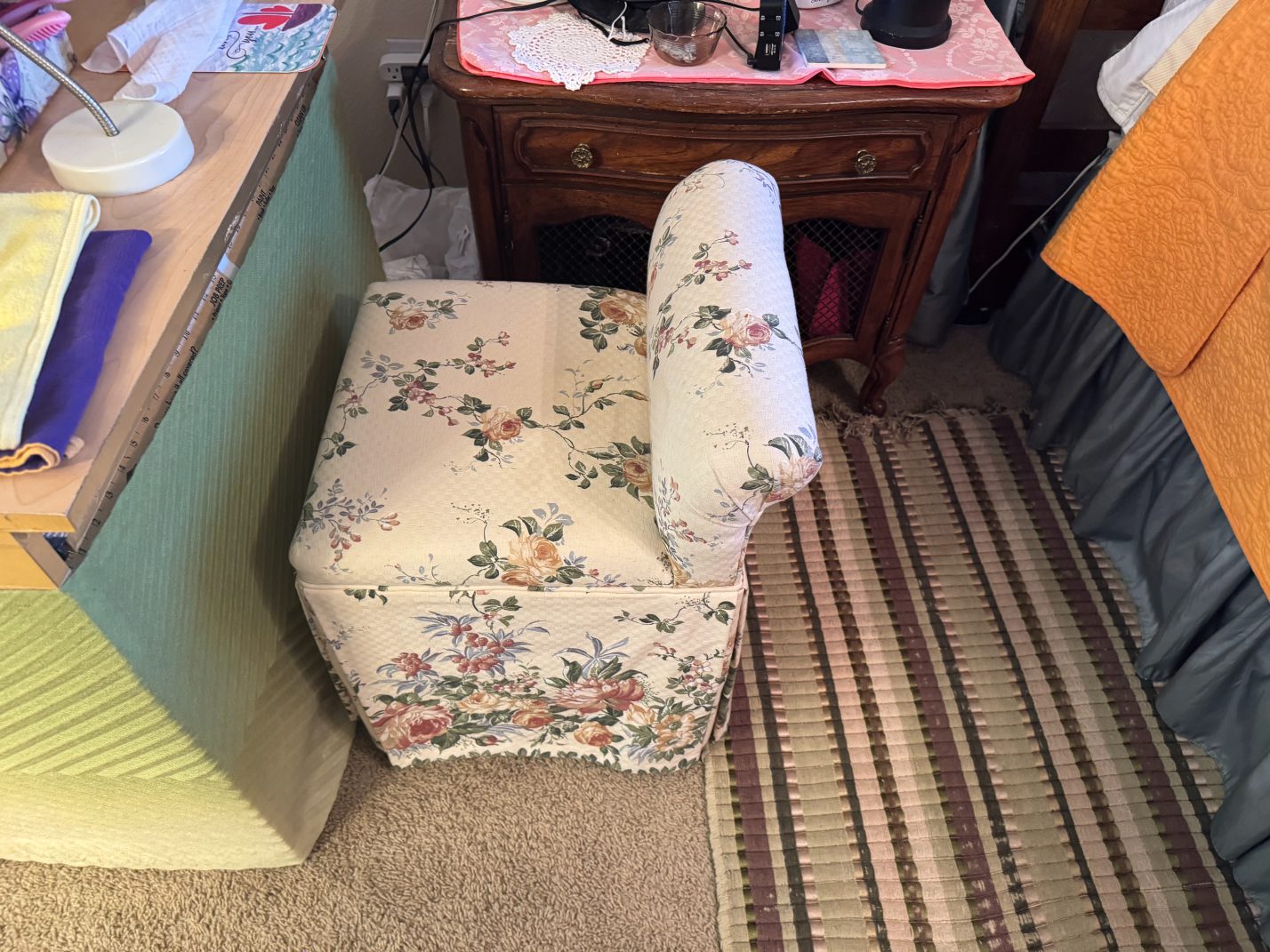 Furniture: Couch – Round Coffee Table – Wooden Folding Chairs – Foot Stool – Recliner Sofa – Ornate Round Mirrored Table – Console Table – Mobile Rolling Laptop Desk – Wurlitzer Piano – Vintage Dresser – Metal Bed – Vintage Sally Eckman Roberts Butterfly Stool – Storage Bench – Oak Nightstand – Office Chair – 6-Drawer Cart Rolling Cabinet – Folding Table – Thomasville Oak Nightstand – Queen Bed – 2-Drawer Filing Cabinet – Patchwork Upholster – Round Table With Cloth – Rolling Kitchen Cart – Kitchen Cabinet – Dining Chair – Bookshelf – Bamboo Tray Table – Folding Bamboo Side Table – Bamboo Bar Stool – Patio Chairs And Table – Iron Corner Shelf – Plant Stand – Hanging Swing – Ladies Clothing Armoire – Wooden Bed – Bench Ottoman – Drawer Dresser – Wooden Arched Mirror – Jewelry Box – Standing Jewelry Chest – Dresser Vanity – Slipper Chair – Vintage End Table – Bird Feeder – Filing Cabinet – Shoe & Bag Display Stand – Gun Cabinet – Wooden Room Divider – Garden Chair – Cast Iron Plant Stand – Hexagon End Table