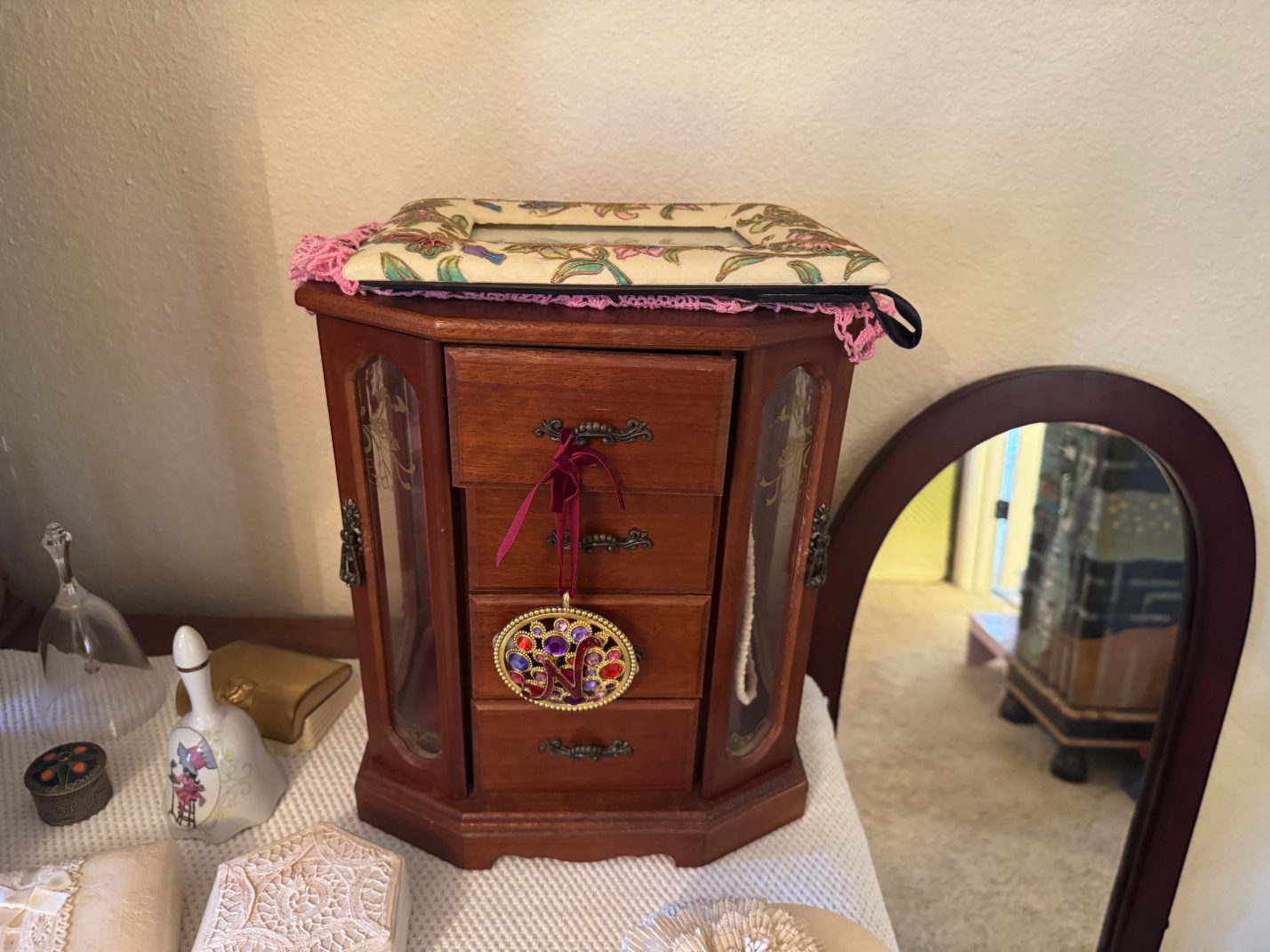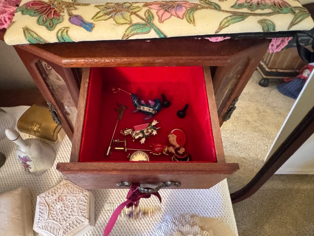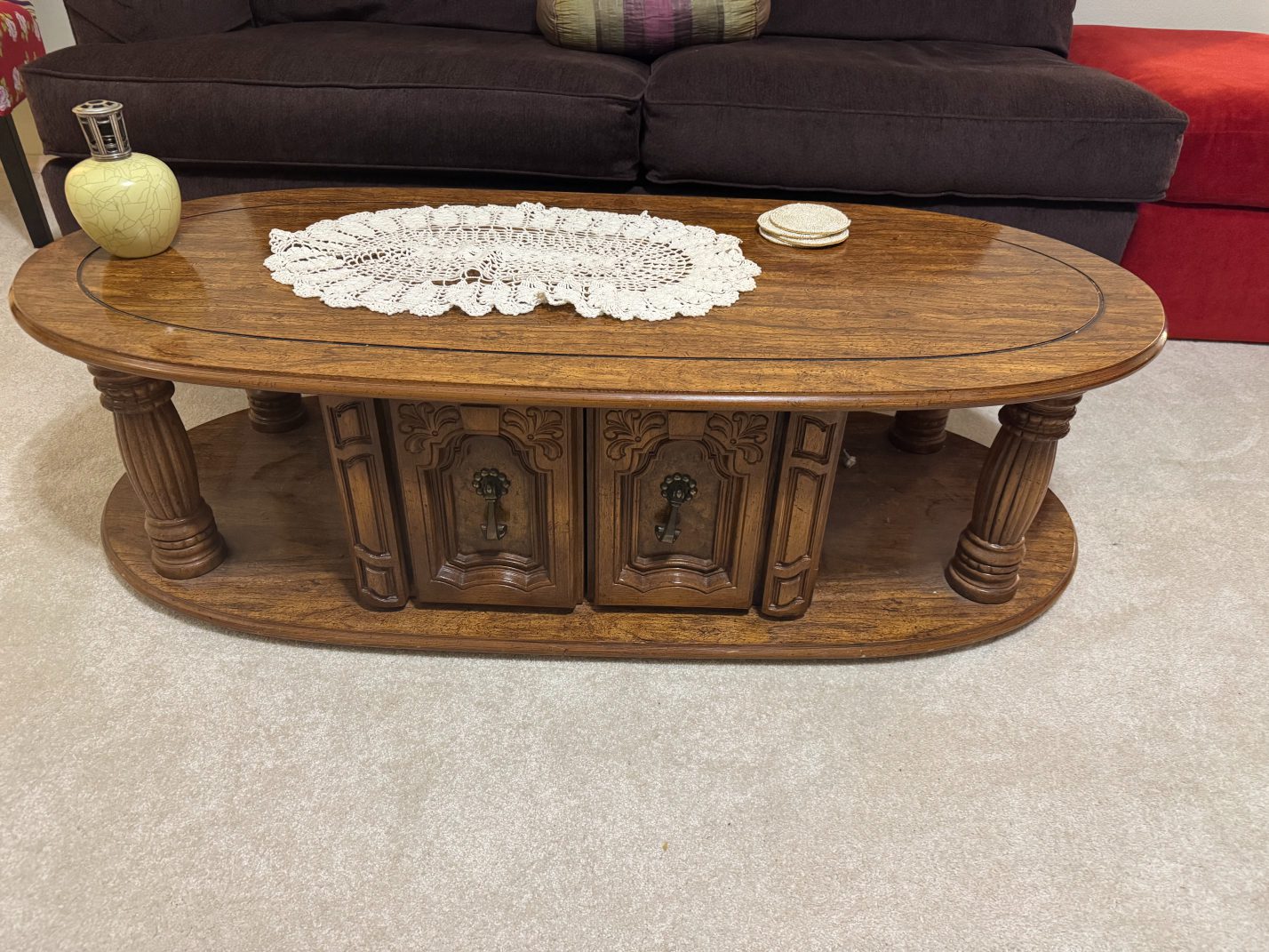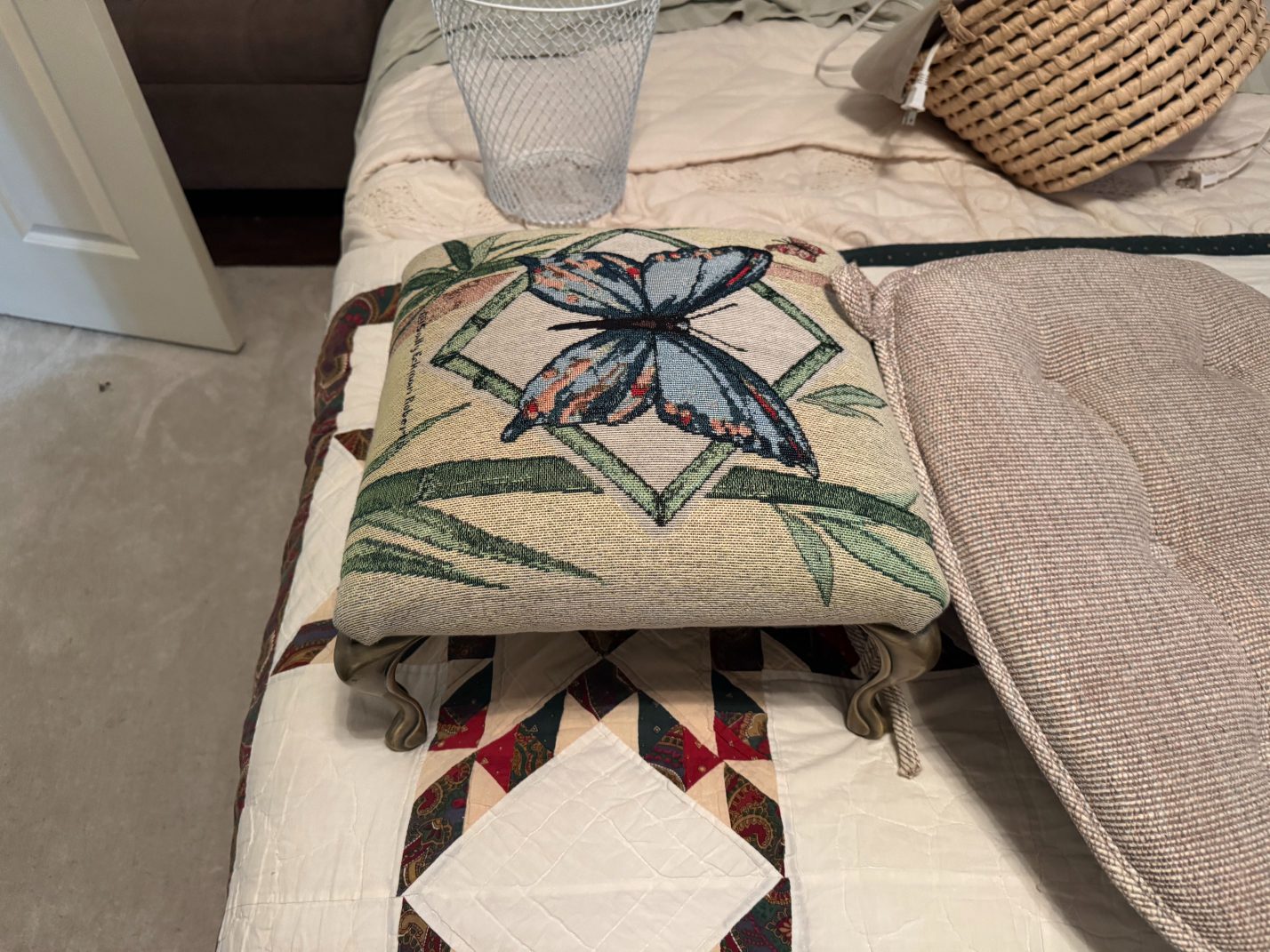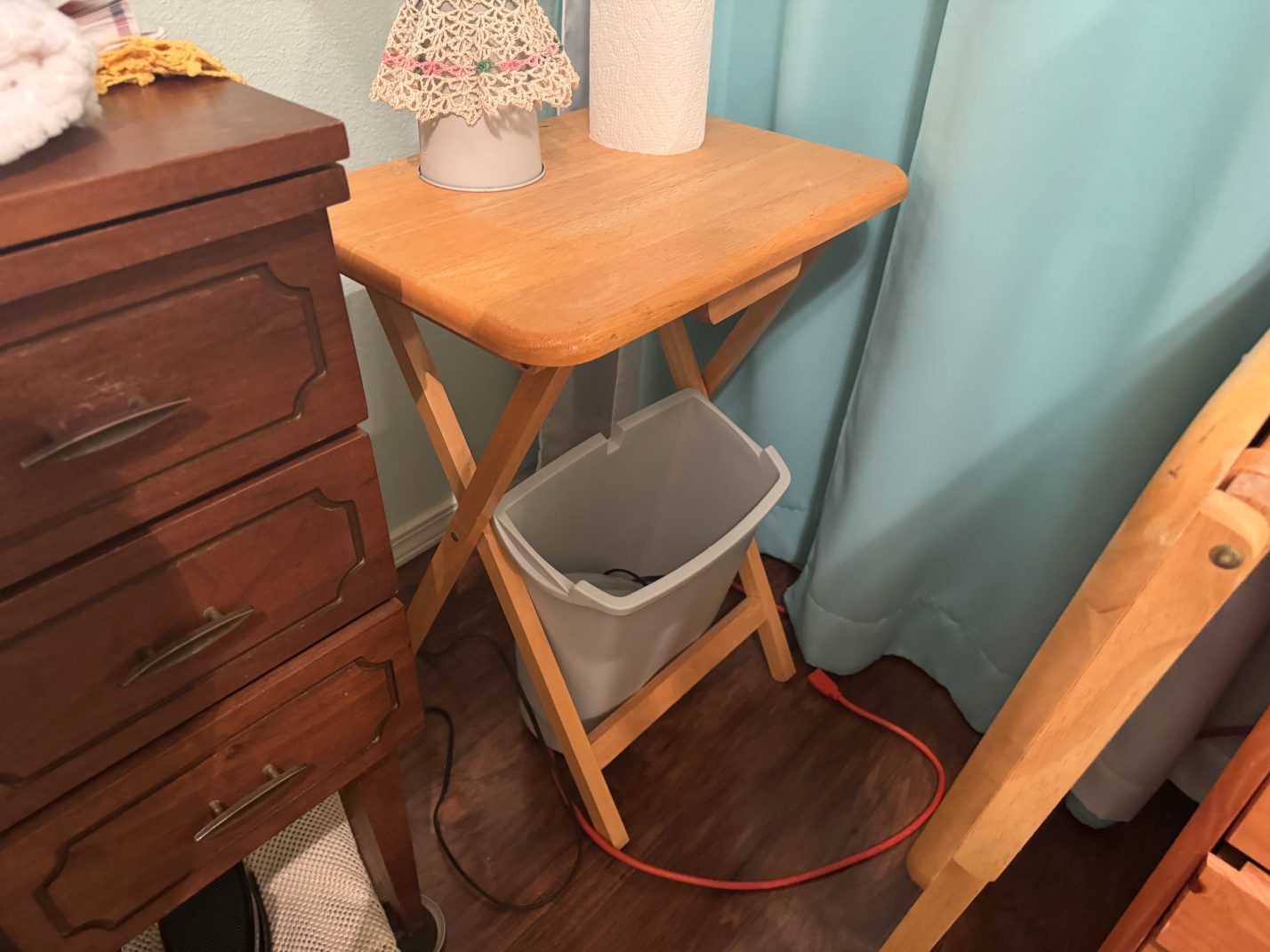 Furniture: Couch – Round Coffee Table – Wooden Folding Chairs – Foot Stool – Recliner Sofa – Ornate Round Mirrored Table – Console Table – Mobile Rolling Laptop Desk – Wurlitzer Piano – Vintage Dresser – Metal Bed – Vintage Sally Eckman Roberts Butterfly Stool – Storage Bench – Oak Nightstand – Office Chair – 6-Drawer Cart Rolling Cabinet – Folding Table – Thomasville Oak Nightstand – Queen Bed – 2-Drawer Filing Cabinet – Patchwork Upholster – Round Table With Cloth – Rolling Kitchen Cart – Kitchen Cabinet – Dining Chair – Bookshelf – Bamboo Tray Table – Folding Bamboo Side Table – Bamboo Bar Stool – Patio Chairs And Table – Iron Corner Shelf – Plant Stand – Hanging Swing – Ladies Clothing Armoire – Wooden Bed – Bench Ottoman – Drawer Dresser – Wooden Arched Mirror – Jewelry Box – Standing Jewelry Chest – Dresser Vanity – Slipper Chair – Vintage End Table – Bird Feeder – Filing Cabinet – Shoe & Bag Display Stand – Gun Cabinet – Wooden Room Divider – Garden Chair – Cast Iron Plant Stand – Hexagon End Table