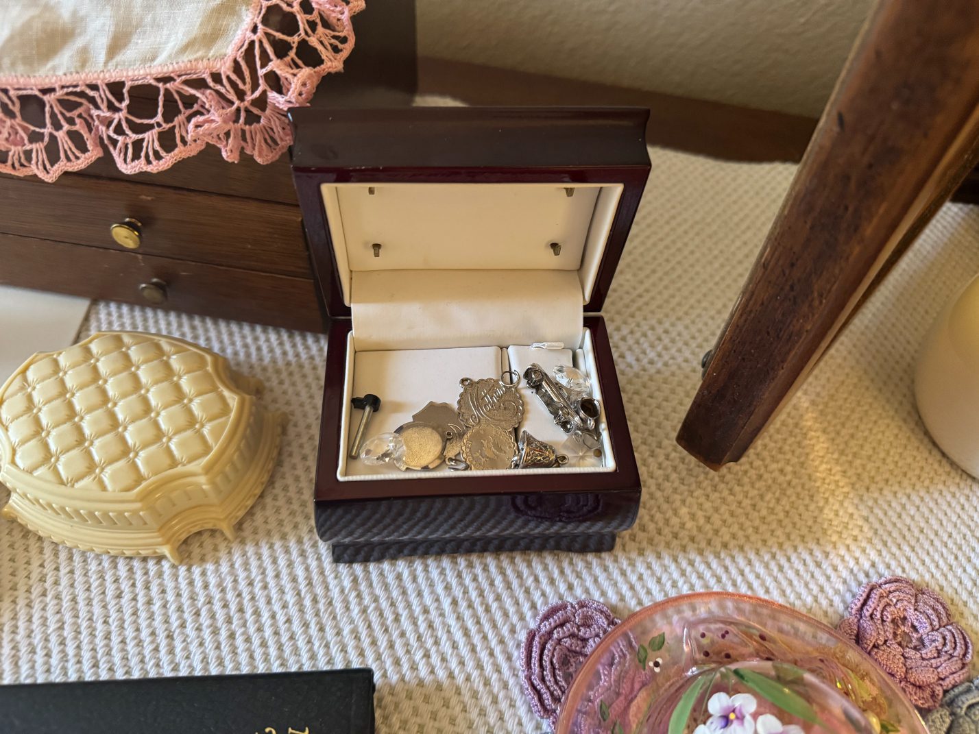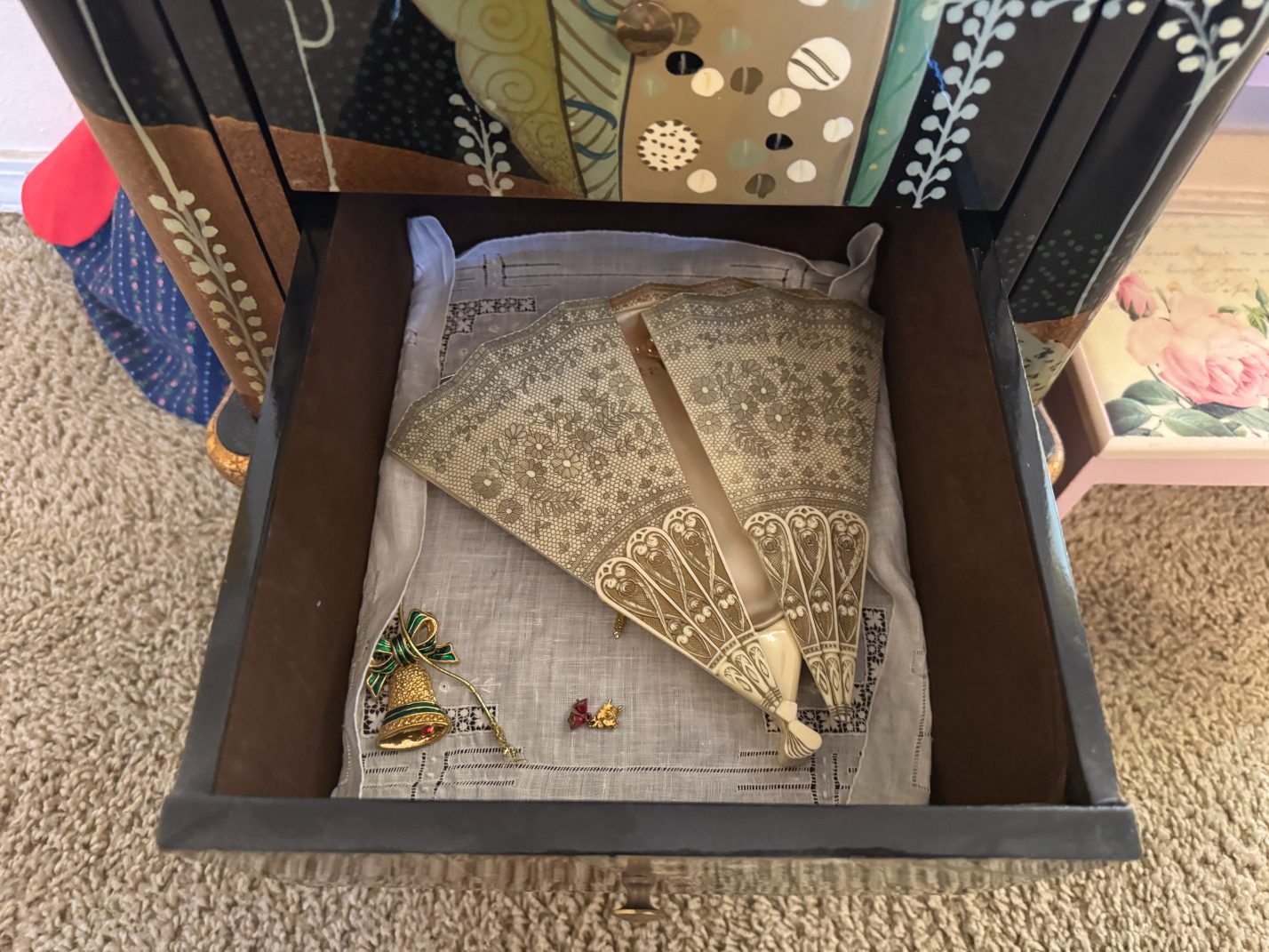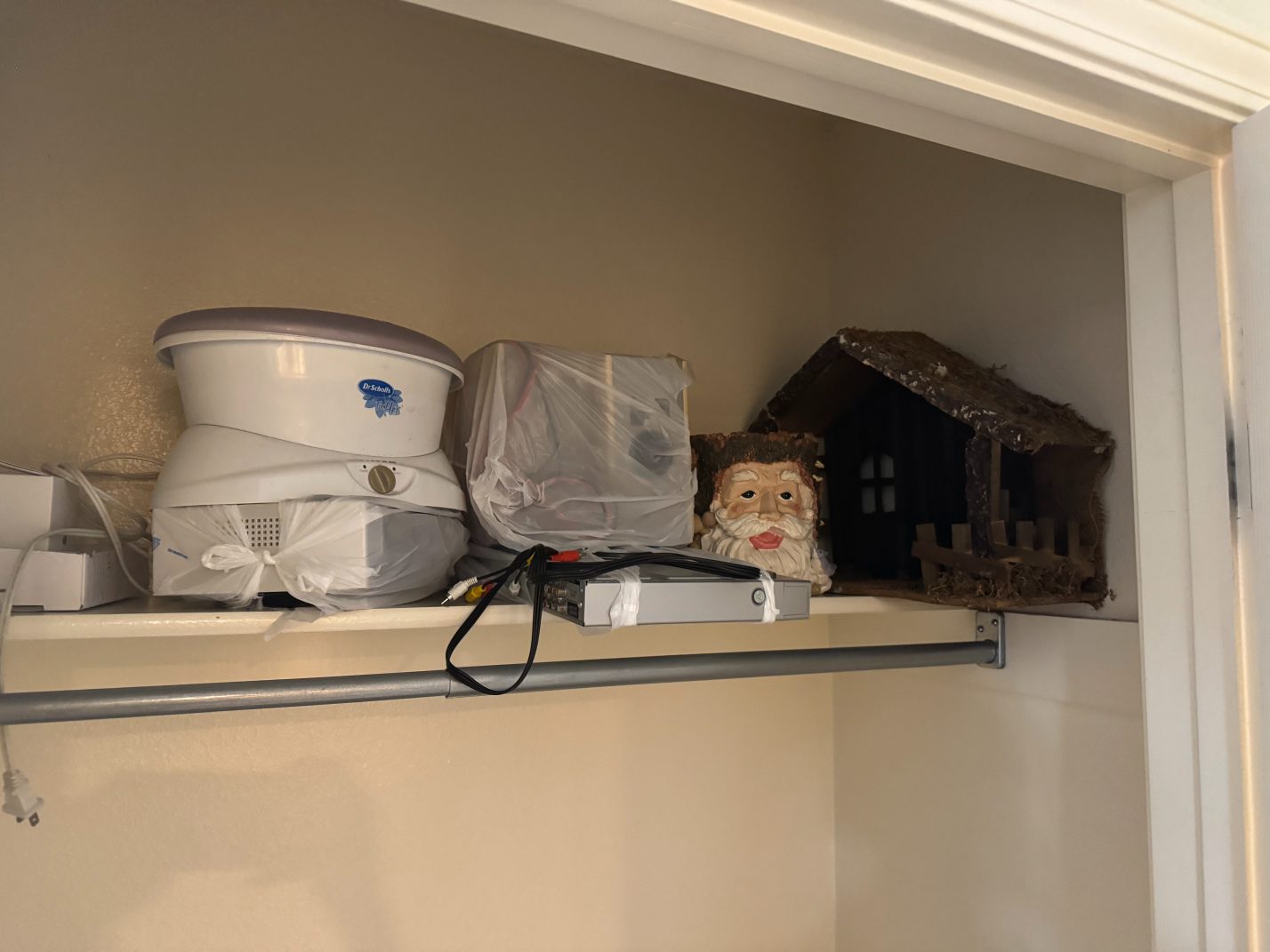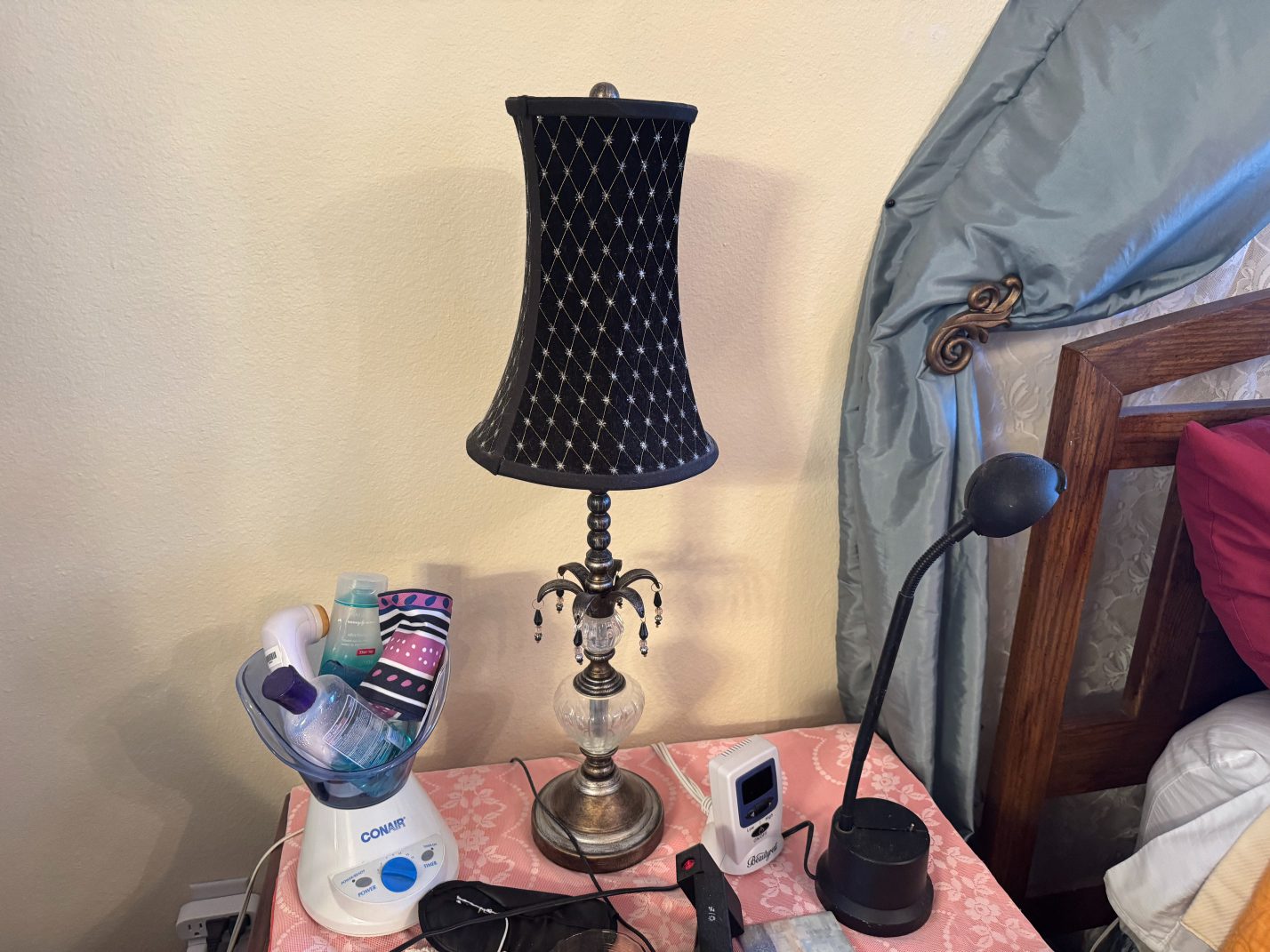 Household Items: Kenmore Washer & Dryer – Mirror – Claude Monet “Lunch In The Garden” Painting – Vintage Lamp – Framed Tapestry – Tifanny Style Floor Lamp – Wall Mirror – Peacok Feather Floral Arrangement – Candlestick – Ceramic Flower Collection – Picture Frames – Vintage Chinese Porcelain Oriental Lamp – Wall Decor – Peacock Feather Mask – Peaceful Road Painting – Capiz Shell Floor Lamp – Glass Octopus Sculpture Figurine – Gator Figurine – Puffer Fish Display – Shells Display – Fragrance Lamp – Porcelain Flower Diffuser – Candle Holder – Tropical Fish Art Print – Ceramic Clam Shell Wall Art – Santa Head Figurine – Decorative Vegetable Basket – Soda Stream Bundle – Hamilton Beach Electric Can Opener – Casserole – Felicity Plate – Glass Bowl – Glass Jar – Ceramic Canister – Ceramic Jungle Animal Mug And Plates – Ceramic Bamboo Floral Salad Plate – ‘Ode To Spring II’ Painting – Toaster Oven – Chafing Dishes Food Warmer – Glass Fruit Bowl – Blender – Automatic Rice Steamer – Sprouting Jars – Flower Vases – Measuring Glass Cup – Plates and Bowls – Tupperware – Television – Cookware – Cutlery – Mini Fridge – Metal Rose Wall Art – Stone Freestanding Corded Garden & Patio Fountains – Baby Wooden Safety Gate – Cement Crocodile Statue – Plant Painting Decor – Amber Colored Pitcher and Glasses – Wine Glasses – Vintage Anchor Hocking Wexford – Core Lounge – Vintage Perfume Bottles – Victorian Vintage Mannequin Jewelry Holder – Fenton Hand Painted Pink Ladies Hat Sculpture – Vintage Wooden Jewelry Container Box – Miss Mignon Speidel Gold Tone Expansion Bracelet Locket – Vintage Hummel Music Box – Faux Crystal Lotus Flower Trinket Box Ring Holder – China Bell – Crystal Clear Bell – Porcelain Trinket Box – Clown Doll – Chunky Gold-tone Infinity Necklace – Bangle Bracelets – Bracelet Watches – Pearl Hand Fan – Fashion Necklaces – Gold-tone Class Ring – Rooster Art Painting – Black Table Lamp – Solid Wood Folding Table Desk – Vintage Chinese Silk Hand Embroidered Picture – Stoneware Vase – Assorted Tote Bags – Clothes – Bath Towels – Crocs Skin Shoulder Bag – Jute Bag – Soulder Bags – Trash Cans – Electric Fireplace – Cordless Cyclone Vacuum Cleaner – Robot Vacuum – Fireplace Screen – Sewing Machine – Hoover Max – Vacuum –