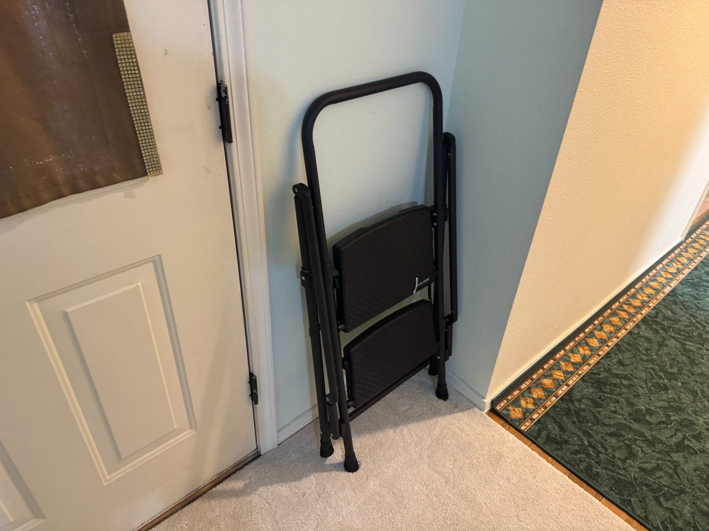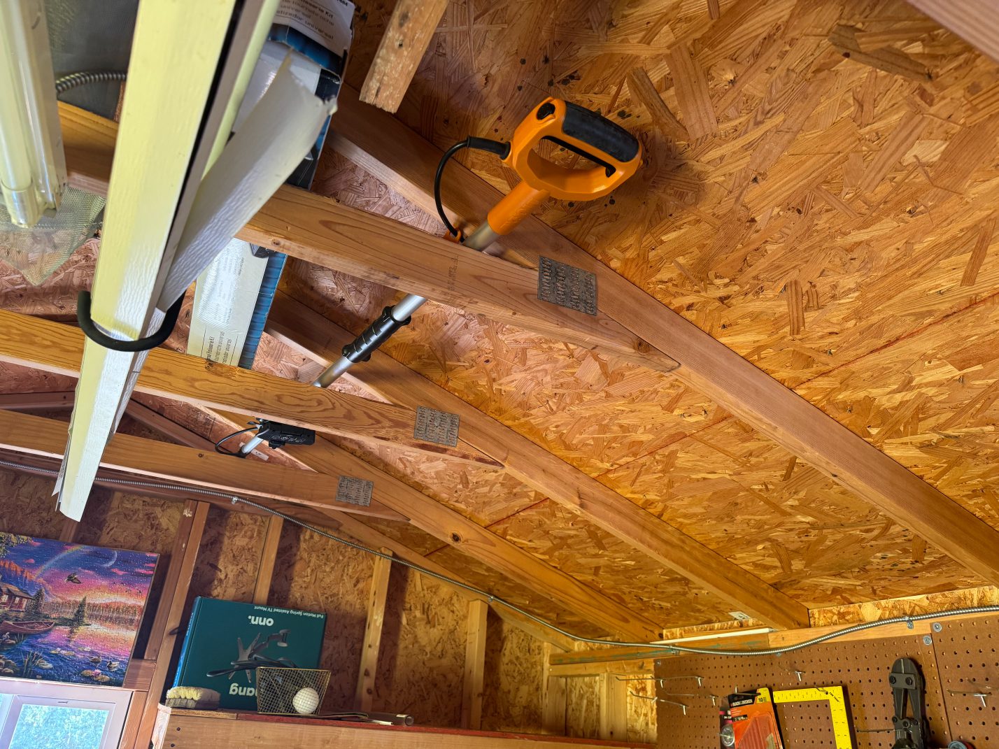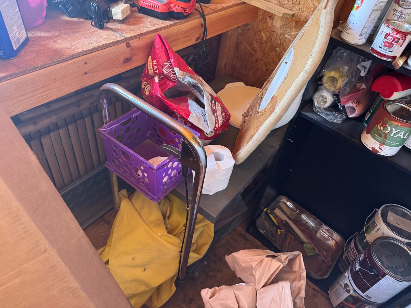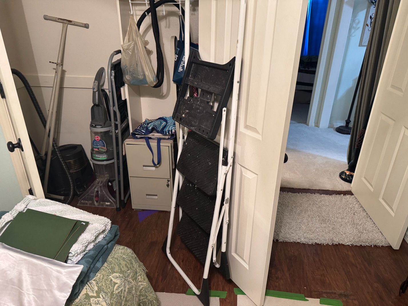 Tools/Shop Items: 4-Step Ladder – Step Ladder – Printer – Shoulder Handbag – Step Stool – Plastic Urn Planter – Garden Hose – Scotts Broadcast Spreader – Ladder – DeWalt Chainsaw – Black and Decker Sander – Cordless Grass Shear – Hand Saw – Black & Decker Corded Jigsaw – Hand Tools – Clamps – Spray Bottles – Scotts Handheld Turf Builder Spreader – Weed Wacker – Electric Leaf Blower – Rake – Electric Pole Saw – Paint – Paint Brush – Hatchet – Hammers – Lawn and Garden Sprayer – Chapin Garden Sprayer – Extension Cords