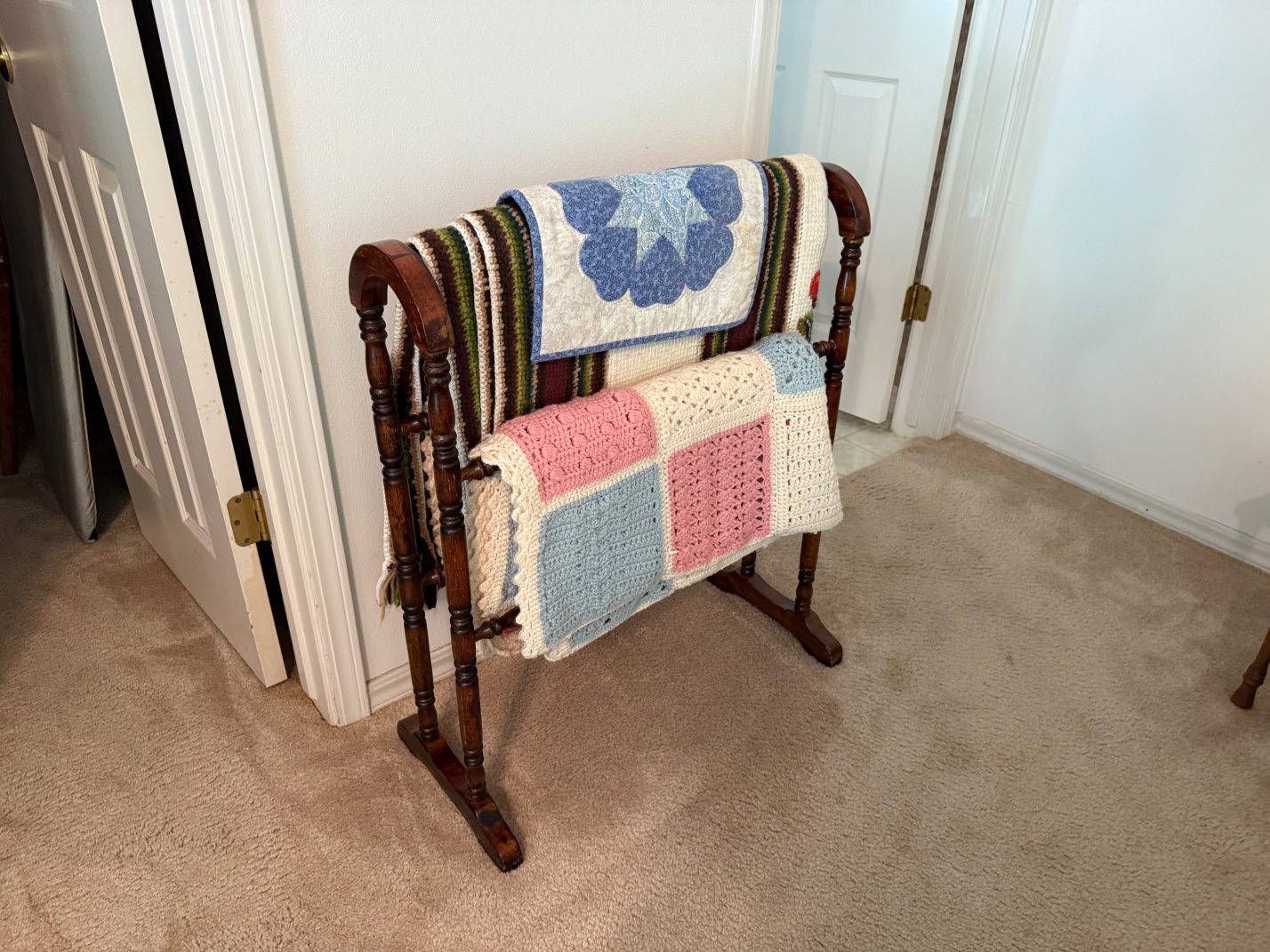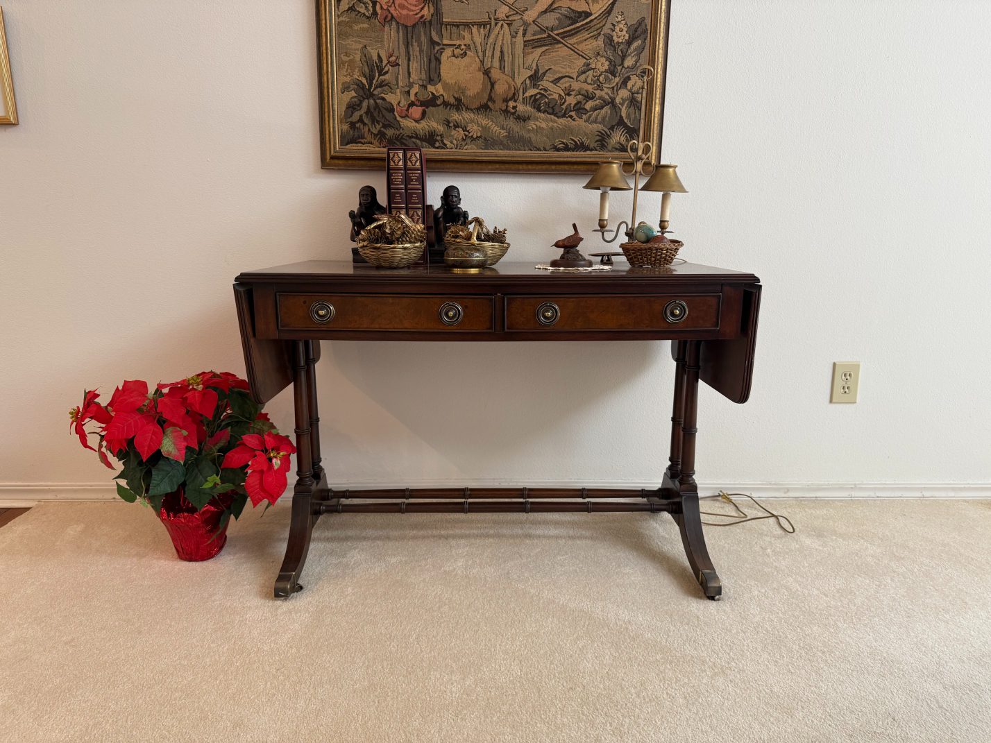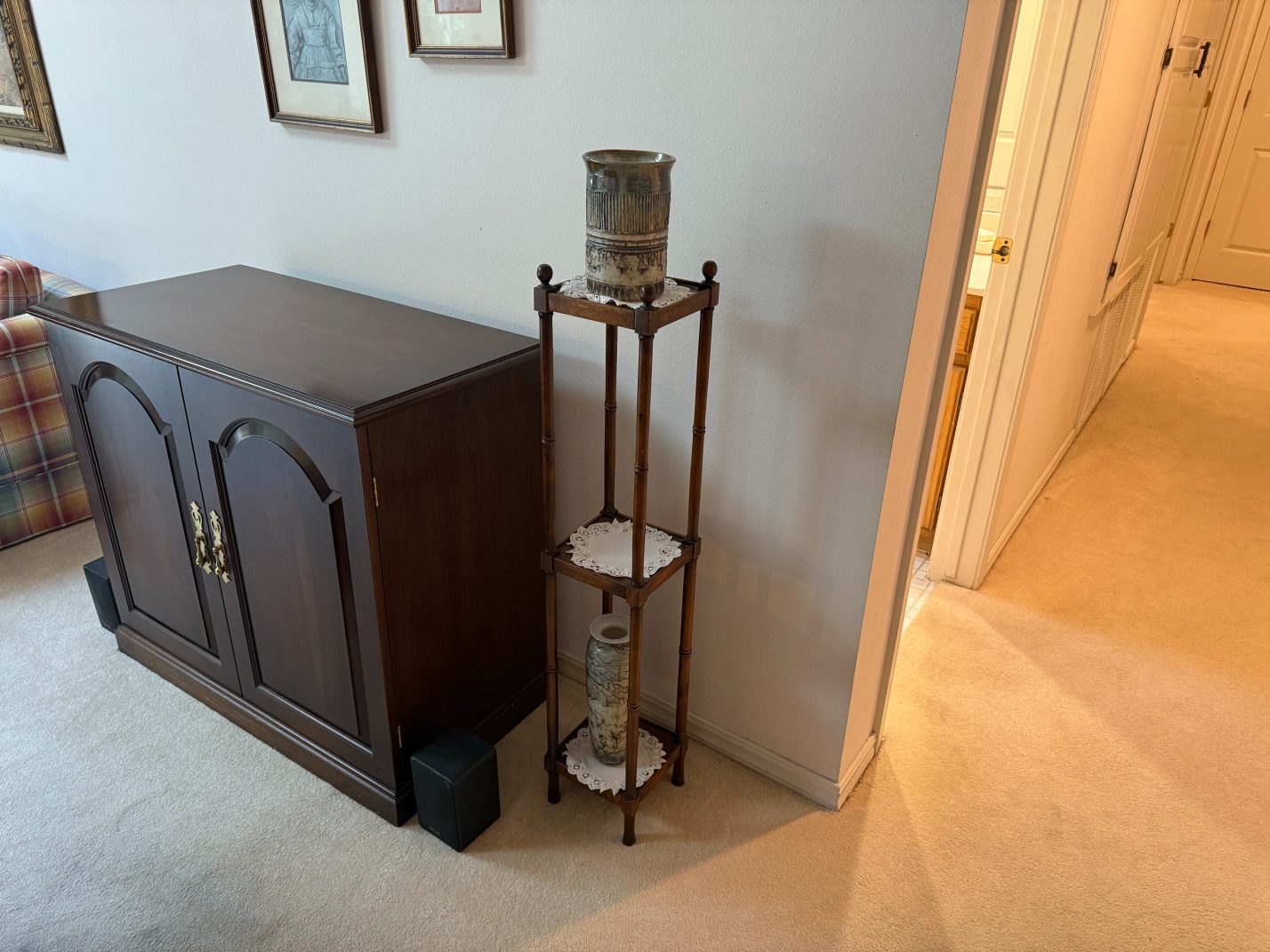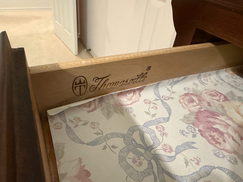 Drop-Leaf Hall Table – Bookcases – Wingback Chair – Curio Cabinet – China Hutch – Side Table – Sofas – Record Cabinet – Desk – Dressing Bench – King-Size Bed – Dressing Mirror – Thomasville Night Stand – Cedar Chest – Thomasville Dresser – Kitchen Cart – Barstool – Card Table and Chairs – Lamp Table – Queen-Size Bed – Quilt Rack