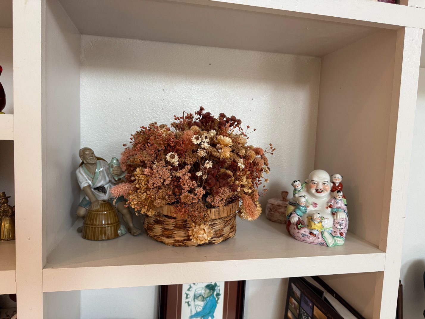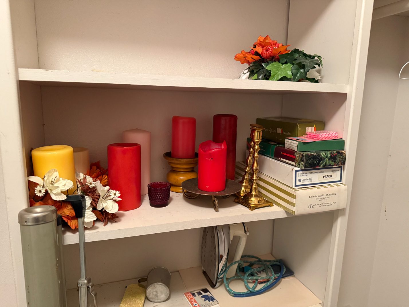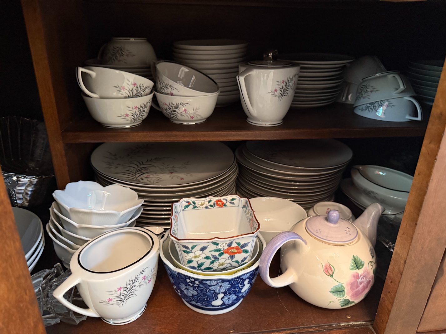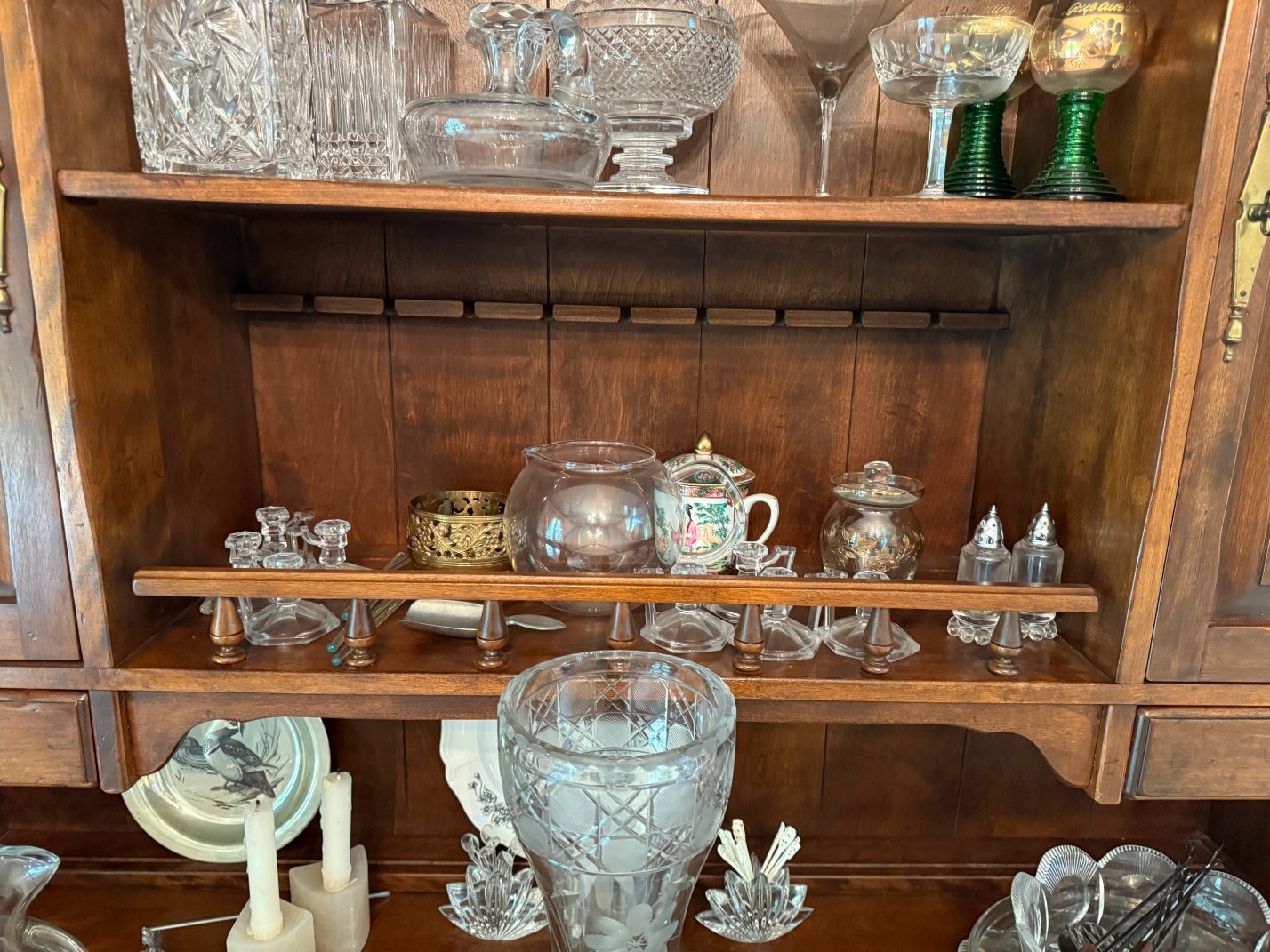 Bookends – Tapestry – Framed Artwork – Books – Ornate Vases – Lamps – Wooden Masks – Baskets – Rugs – Pottery – Decanters – Crystal Glassware – Crystal Vases – Pitchers – Wine Glasses – Candle Holders – Goblets – Teapots – Nortakie China – Paintings – Kenwood Stereo Cassette Deck Model KX-630 – Anniversary Clock – Busts – Records – Globe – Paper Shredder – Linens – Quilts – Panasonic Microwave – Canister Set – Cookie Jar – Glassware – Kitchen Appliances – Kitchen Utensils – Whirlpool Washer (Like New) – Maytag Dryer – Candles – Floor Lamps – Coffee Tins – General Electric Clock – Airplane Prints – Trash Cans – Oil