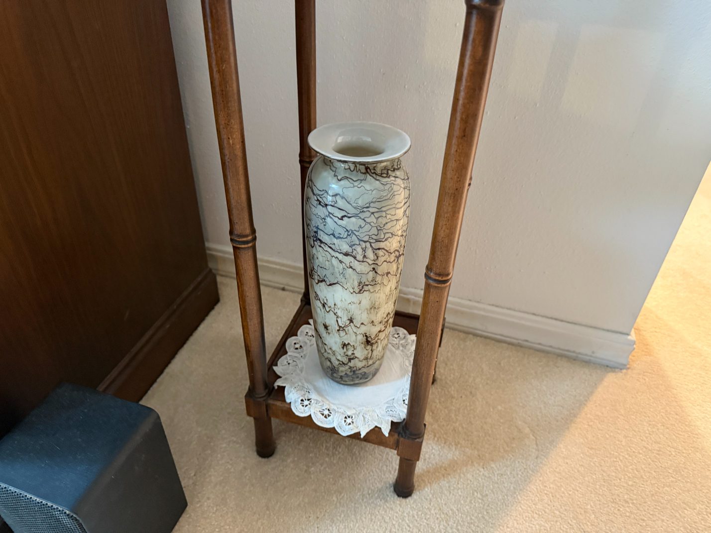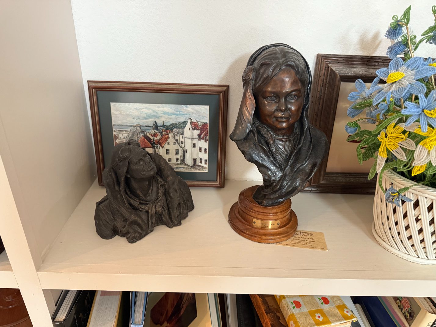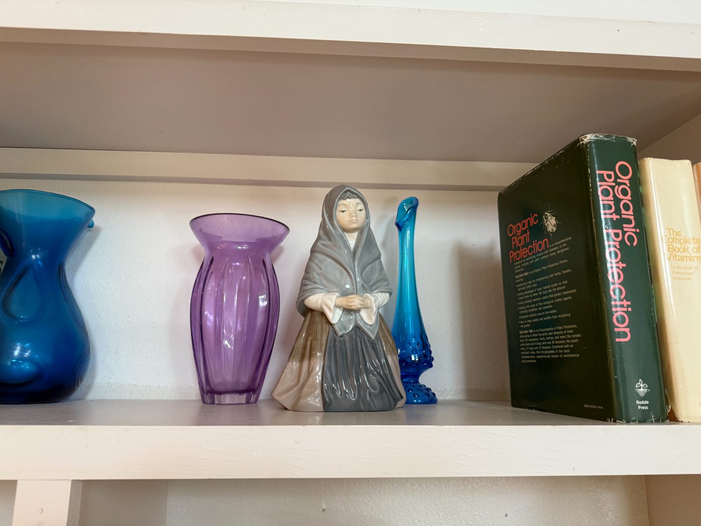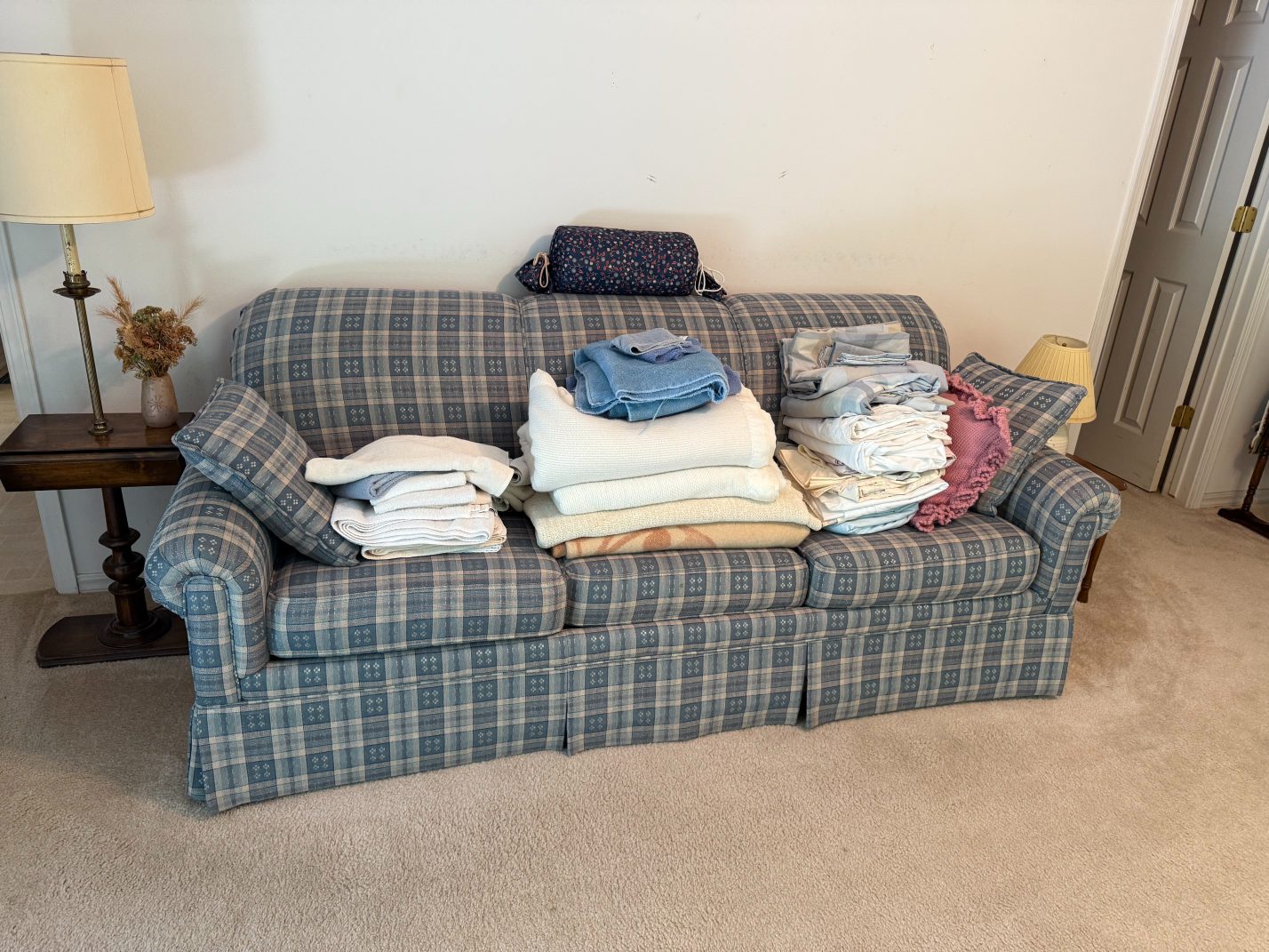 Bookends – Tapestry – Framed Artwork – Books – Ornate Vases – Lamps – Wooden Masks – Baskets – Rugs – Pottery – Decanters – Crystal Glassware – Crystal Vases – Pitchers – Wine Glasses – Candle Holders – Goblets – Teapots – Nortakie China – Paintings – Kenwood Stereo Cassette Deck Model KX-630 – Anniversary Clock – Busts – Records – Globe – Paper Shredder – Linens – Quilts – Panasonic Microwave – Canister Set – Cookie Jar – Glassware – Kitchen Appliances – Kitchen Utensils – Whirlpool Washer (Like New) – Maytag Dryer – Candles – Floor Lamps – Coffee Tins – General Electric Clock – Airplane Prints – Trash Cans – Oil
