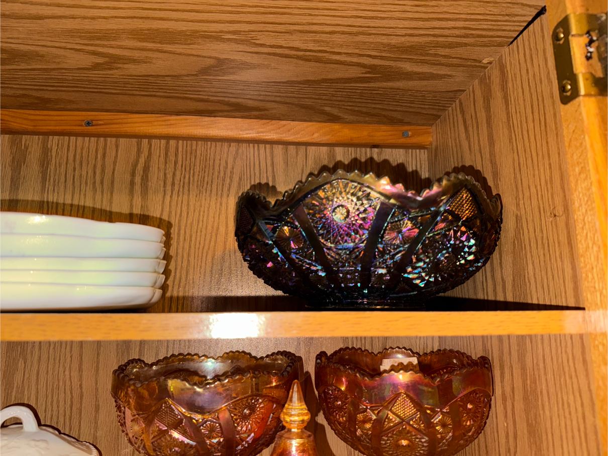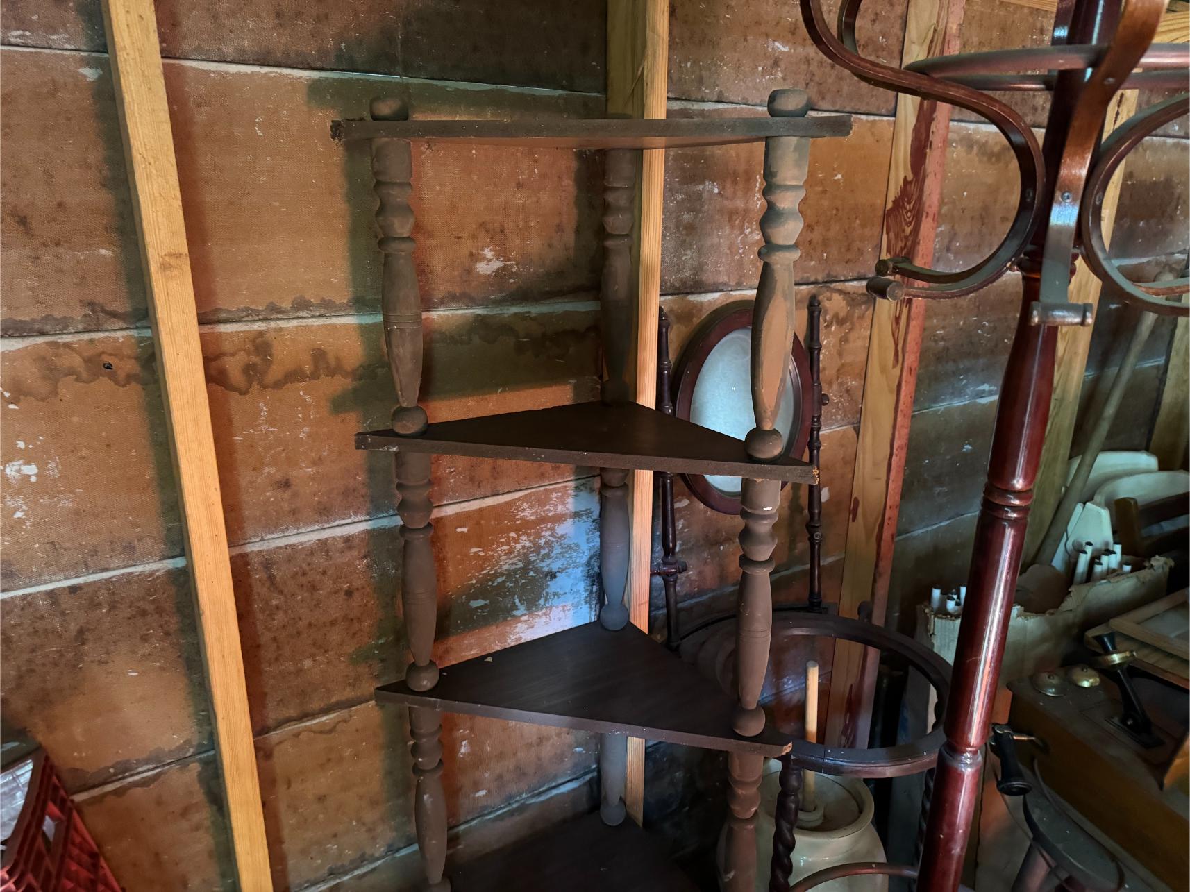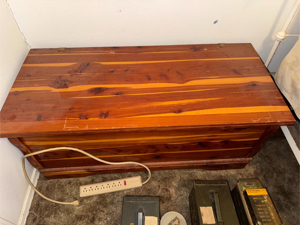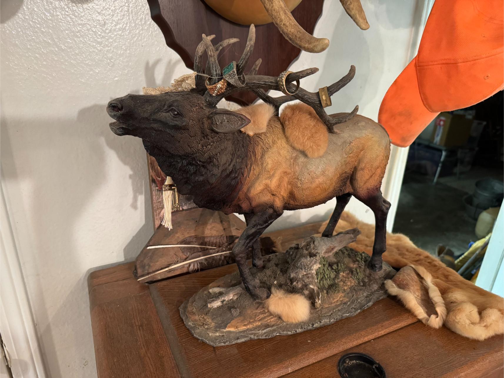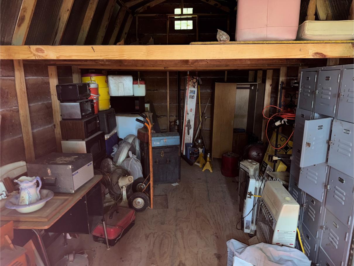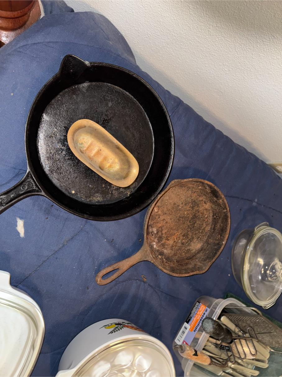 Antiques & Collectibles: Oak Dining Table & Chairs – Oak Ice Box – Regulator Wall Clock – Iron Bed – Maple Queen Size Bed, Dresser & Chest – Mahogany Chest – Tiger Oak Chest – Chairs – Cedar Chest – Pine Corner Cabinet – Hall Tree – Crank Wall Phone – Enamel Pans – Cast Iron Skillets, Corn Bread – Carnival Glass – Pyrex – Milk Glass – Deer Mount – Deer Antlers – Pipe Hawk – Figurines – Spurs – Fan – Tools – Small Cast Iron Stove – Peters & Remington Shot Gun Shells – 1-Man Saw
