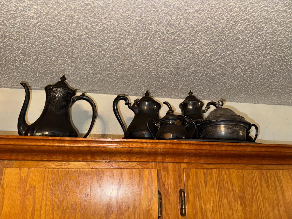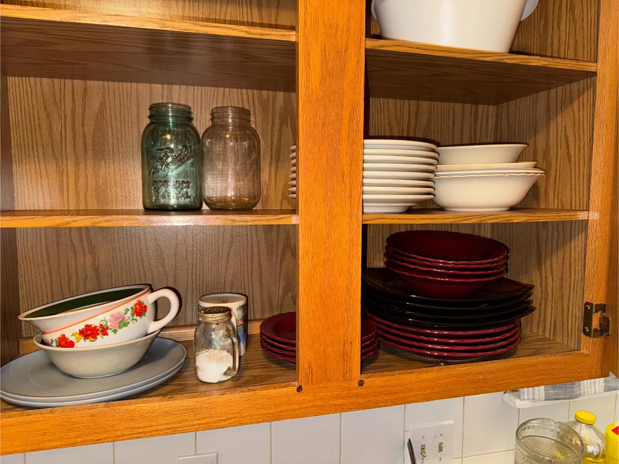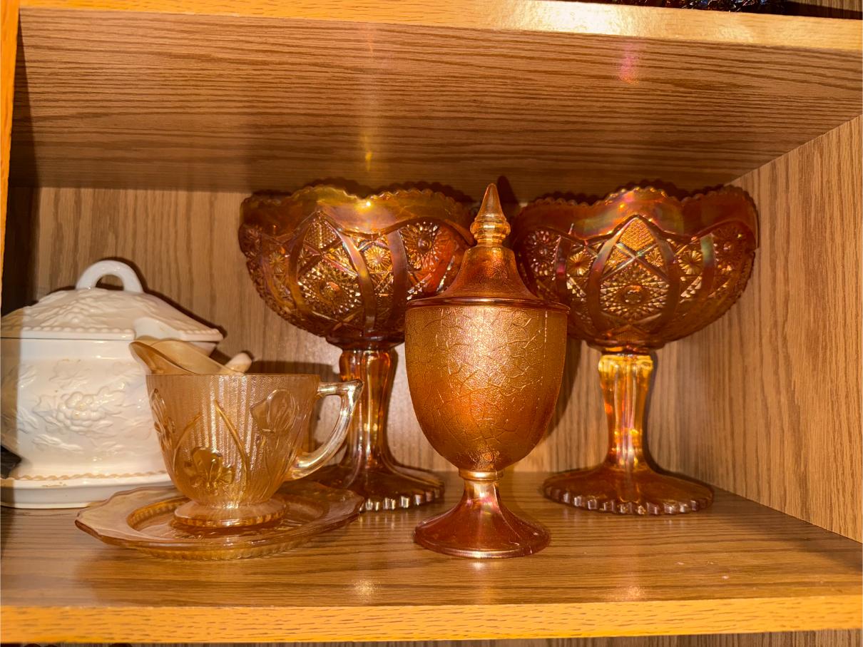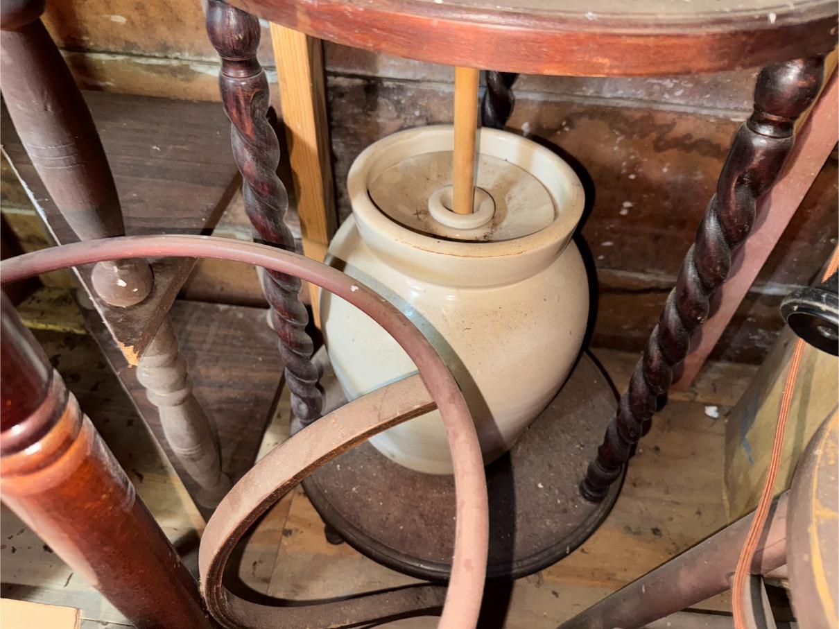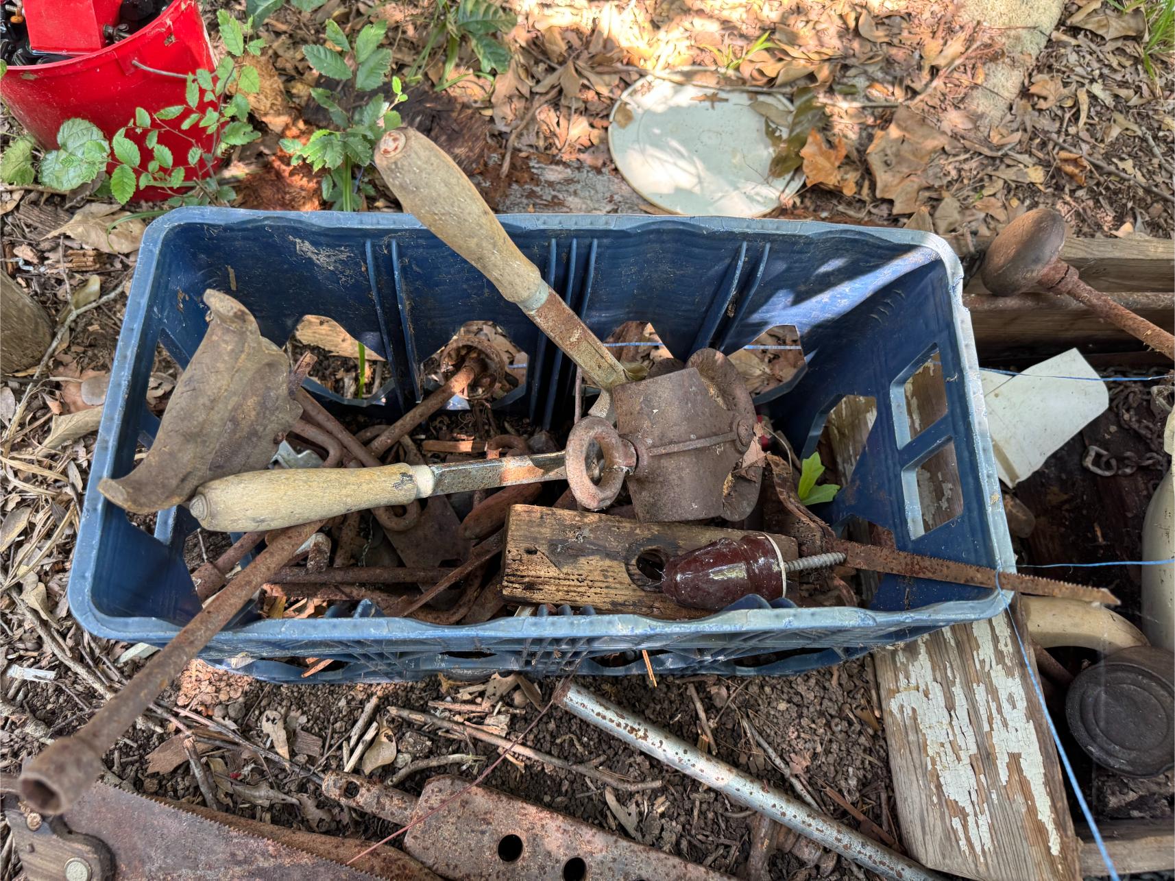 Antiques & Collectibles: Oak Dining Table & Chairs – Oak Ice Box – Regulator Wall Clock – Iron Bed – Maple Queen Size Bed, Dresser & Chest – Mahogany Chest – Tiger Oak Chest – Chairs – Cedar Chest – Pine Corner Cabinet – Hall Tree – Crank Wall Phone – Enamel Pans – Cast Iron Skillets, Corn Bread – Carnival Glass – Pyrex – Milk Glass – Deer Mount – Deer Antlers – Pipe Hawk – Figurines – Spurs – Fan – Tools – Small Cast Iron Stove – Peters & Remington Shot Gun Shells – 1-Man Saw