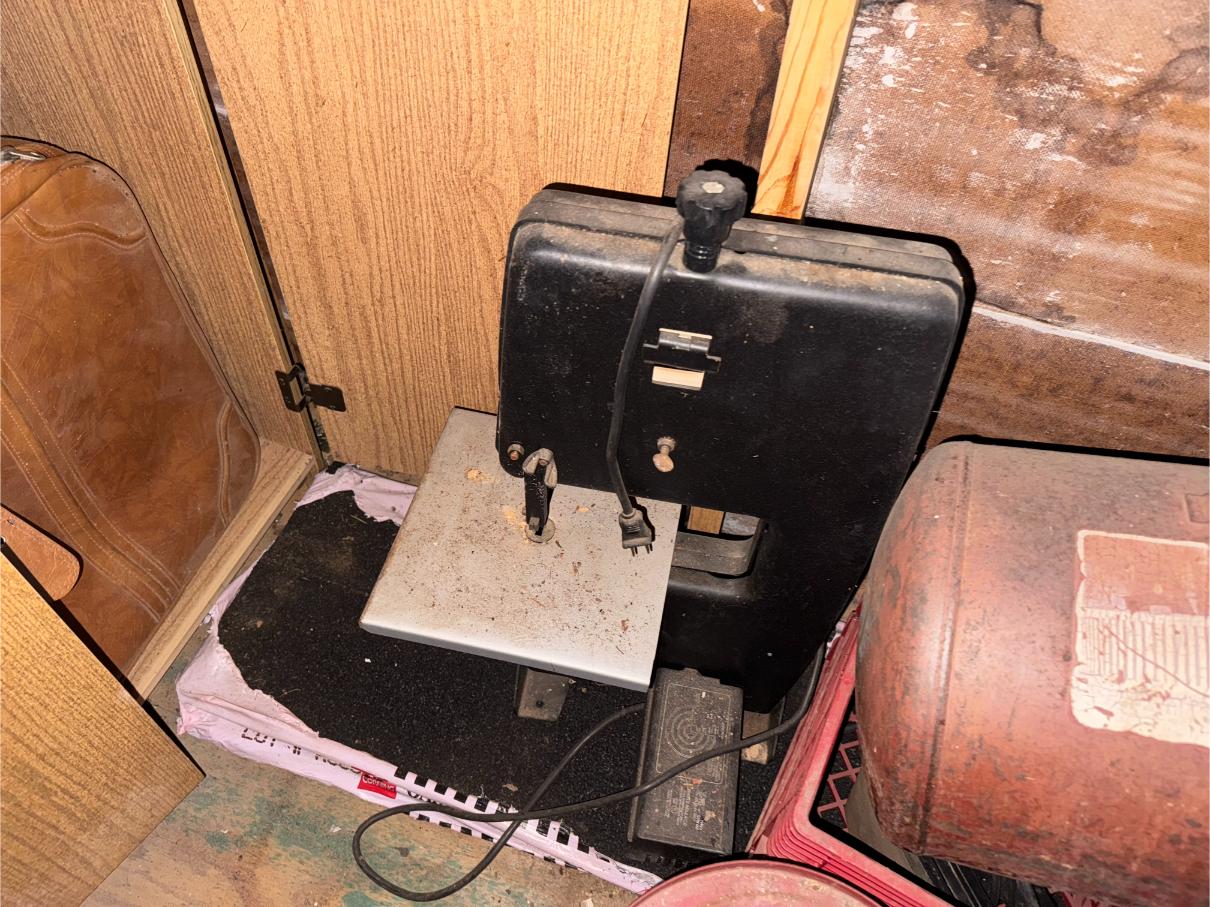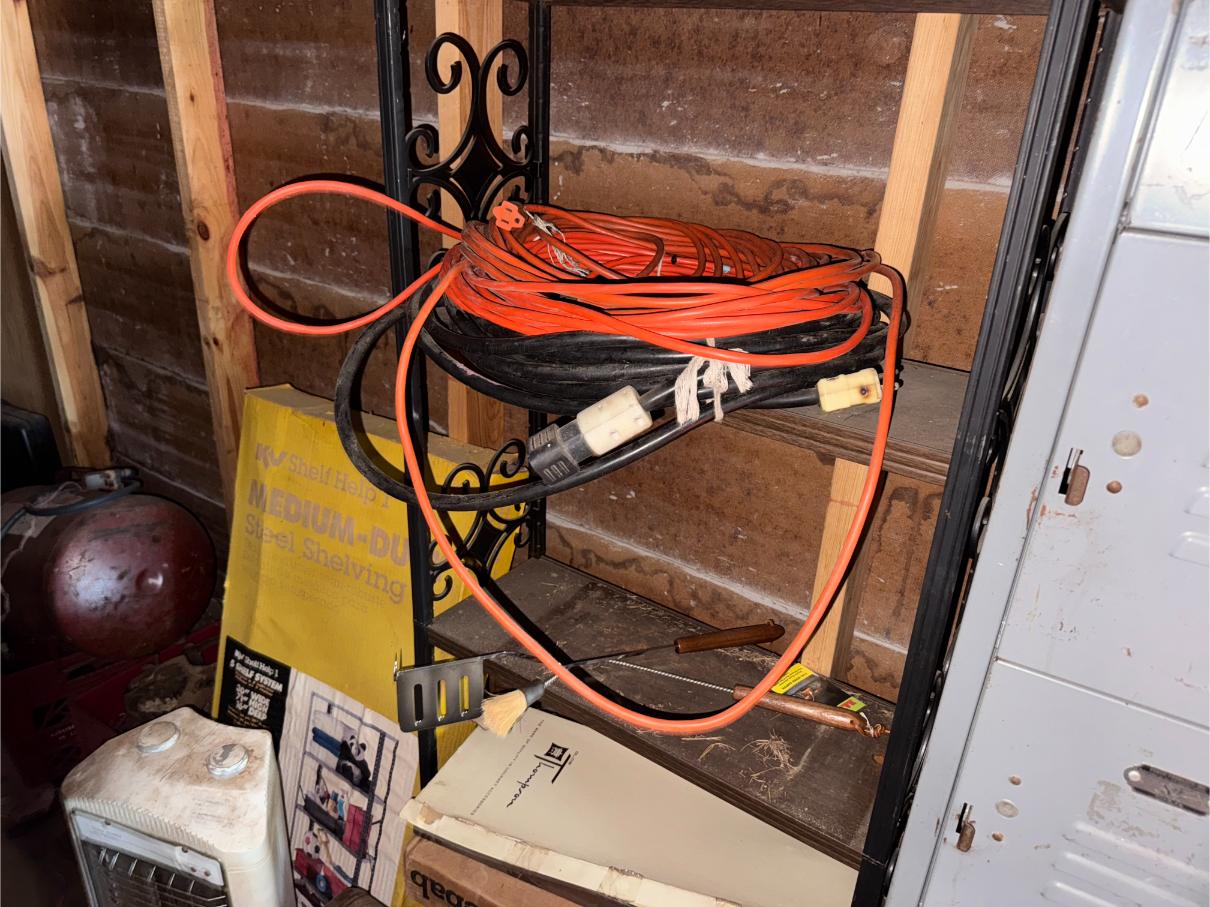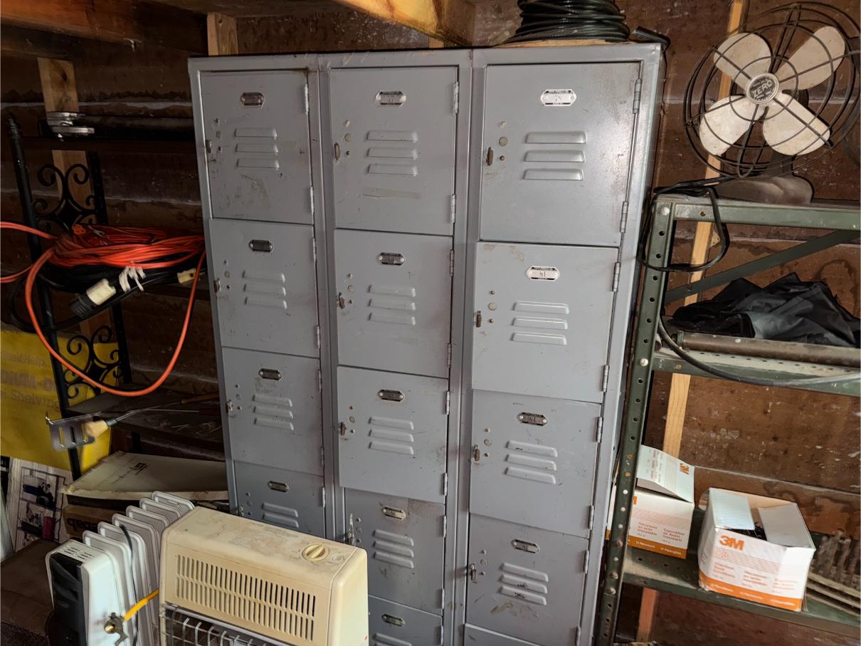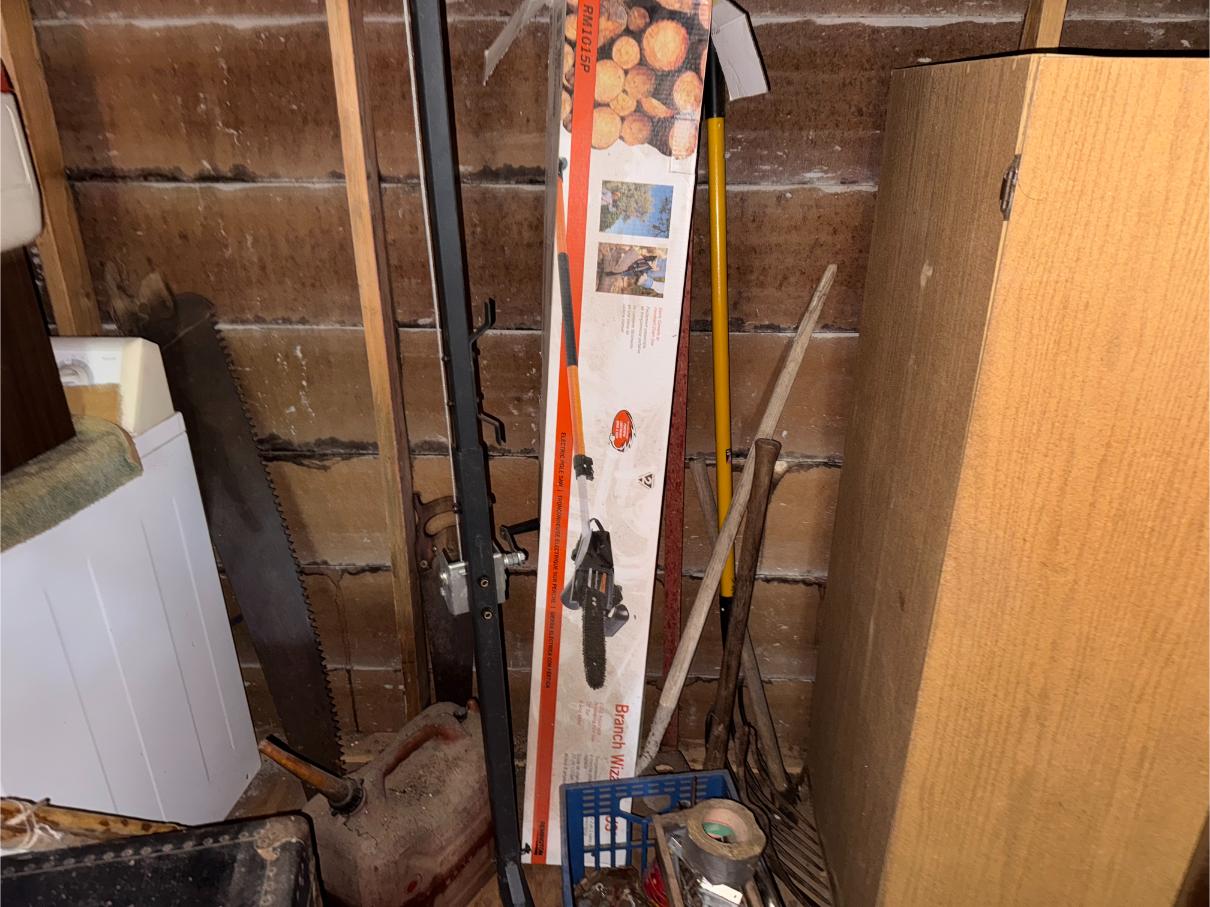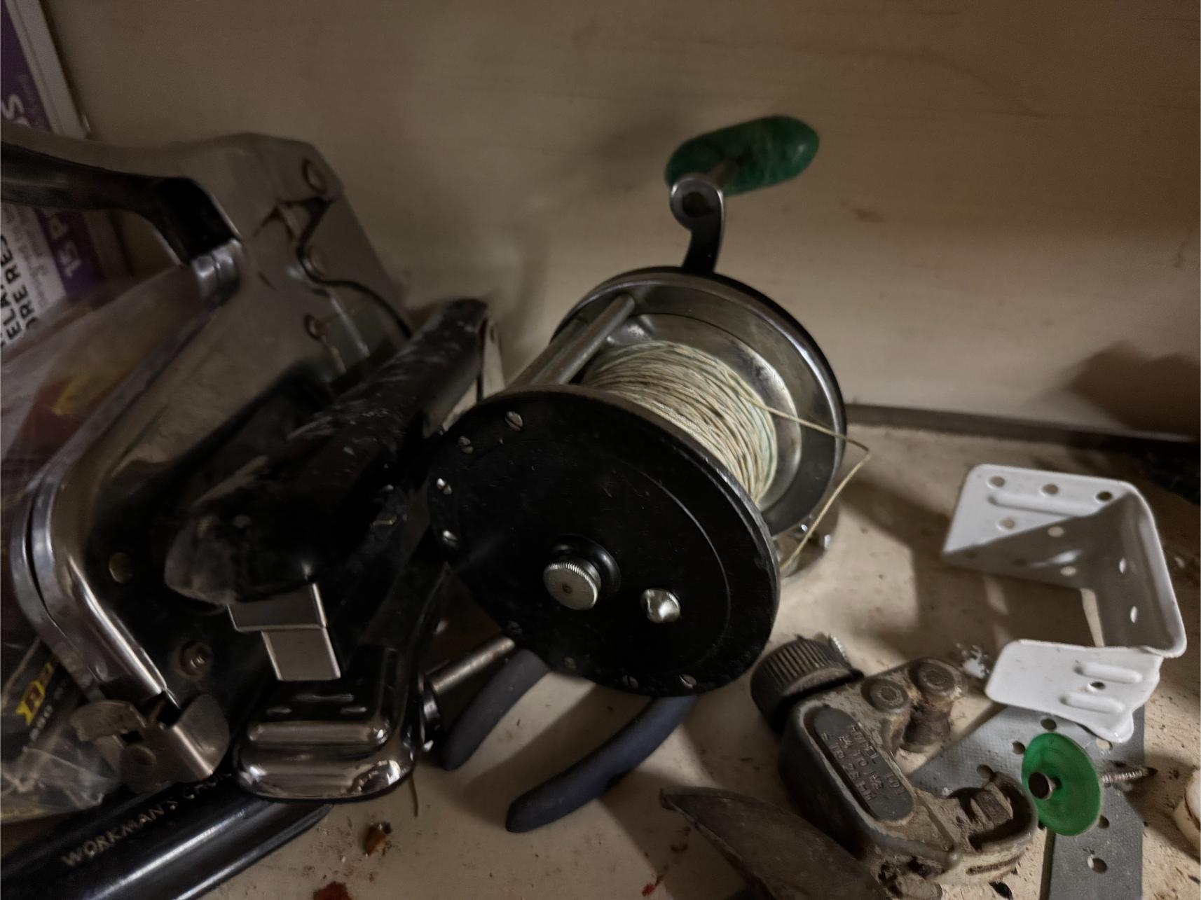 And: Coleman Powermate Generator (New) – Masterbuilt Smoker (New) – Lg Smoker – Metal Lockers – Heaters – Fiberglass Ext Ladder – Alum Ladder – Yard Tools – Hand Tools – Dolly – Chiminea – Wrought Iron Patio Table & Chairs – Picnic Table – Rods & Reels – Boat Oars – Metal Shelves – Coleman Lantern – Feed Trough – Misc Lumber