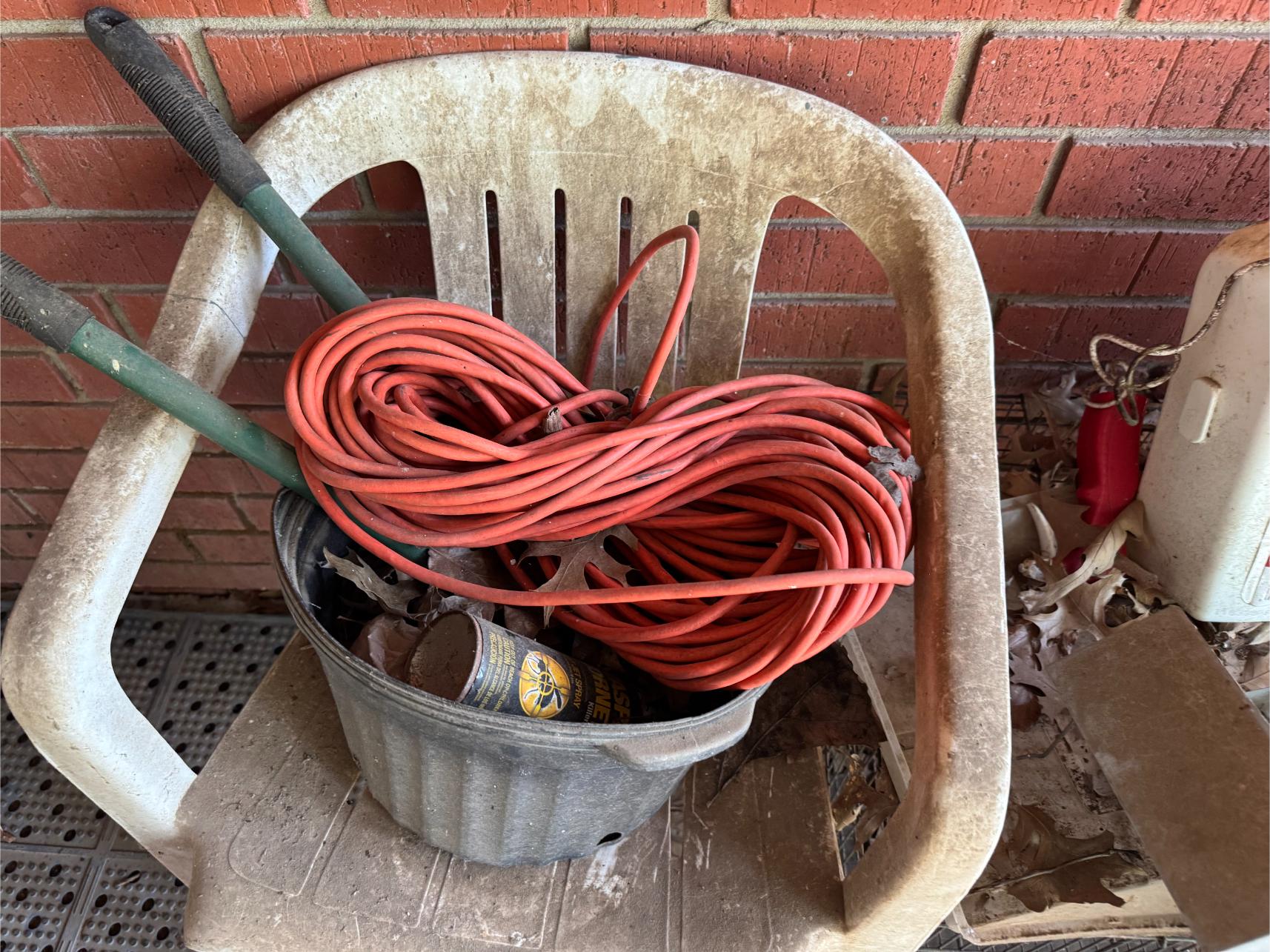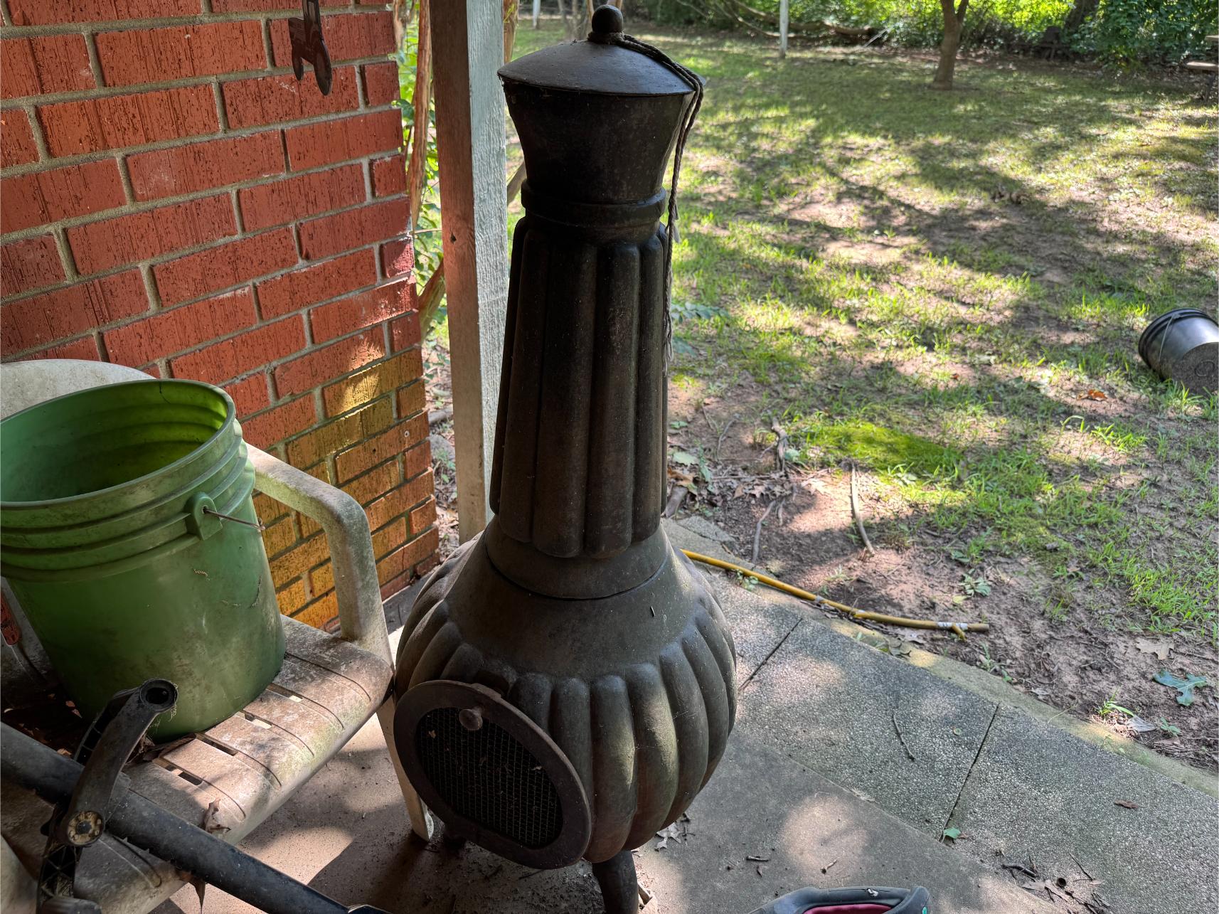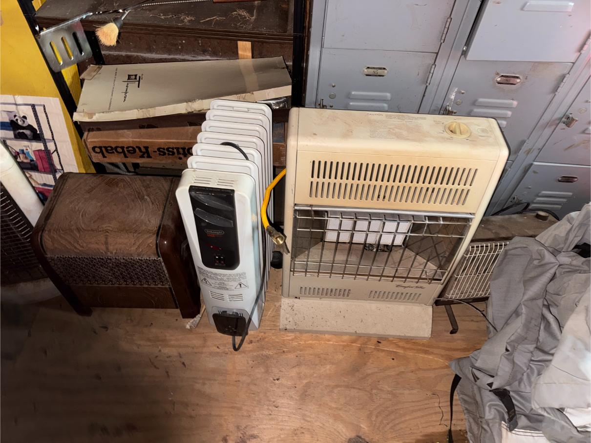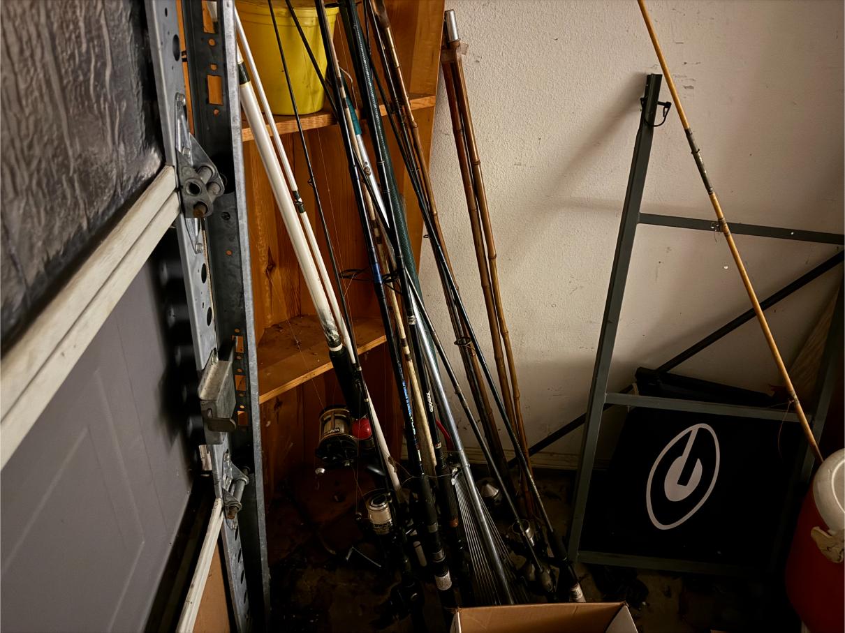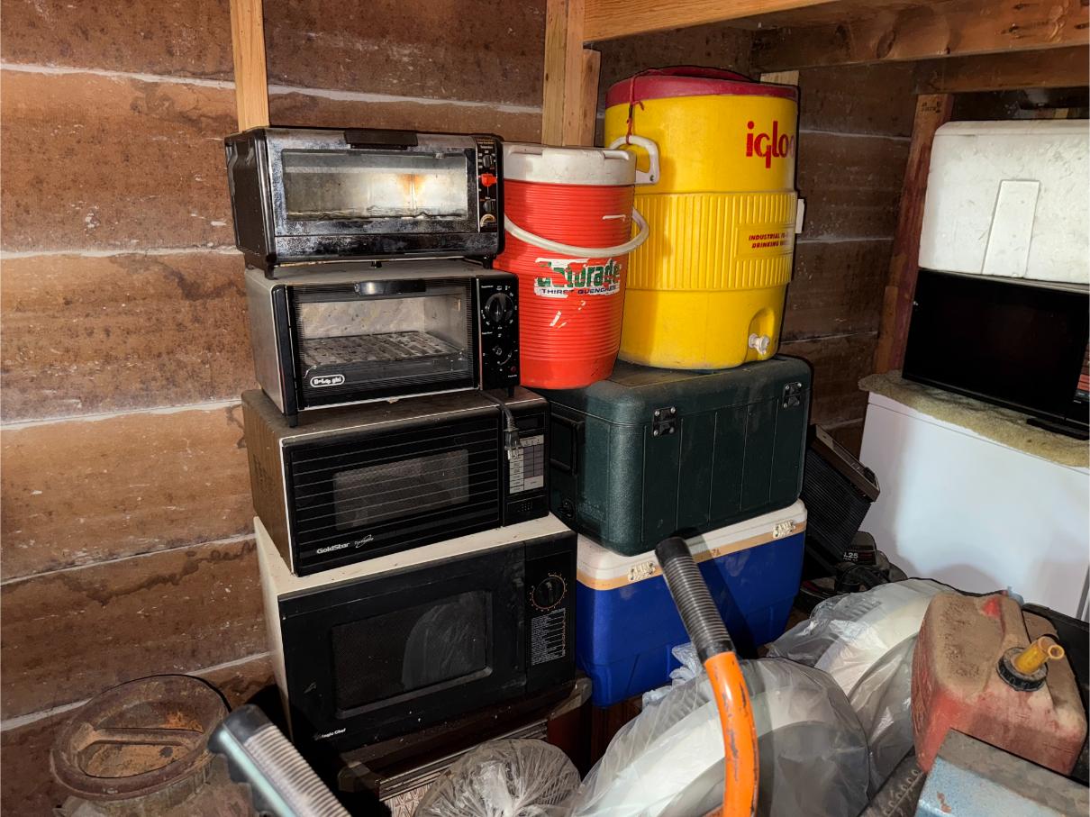 And: Coleman Powermate Generator (New) – Masterbuilt Smoker (New) – Lg Smoker – Metal Lockers – Heaters – Fiberglass Ext Ladder – Alum Ladder – Yard Tools – Hand Tools – Dolly – Chiminea – Wrought Iron Patio Table & Chairs – Picnic Table – Rods & Reels – Boat Oars – Metal Shelves – Coleman Lantern – Feed Trough – Misc Lumber