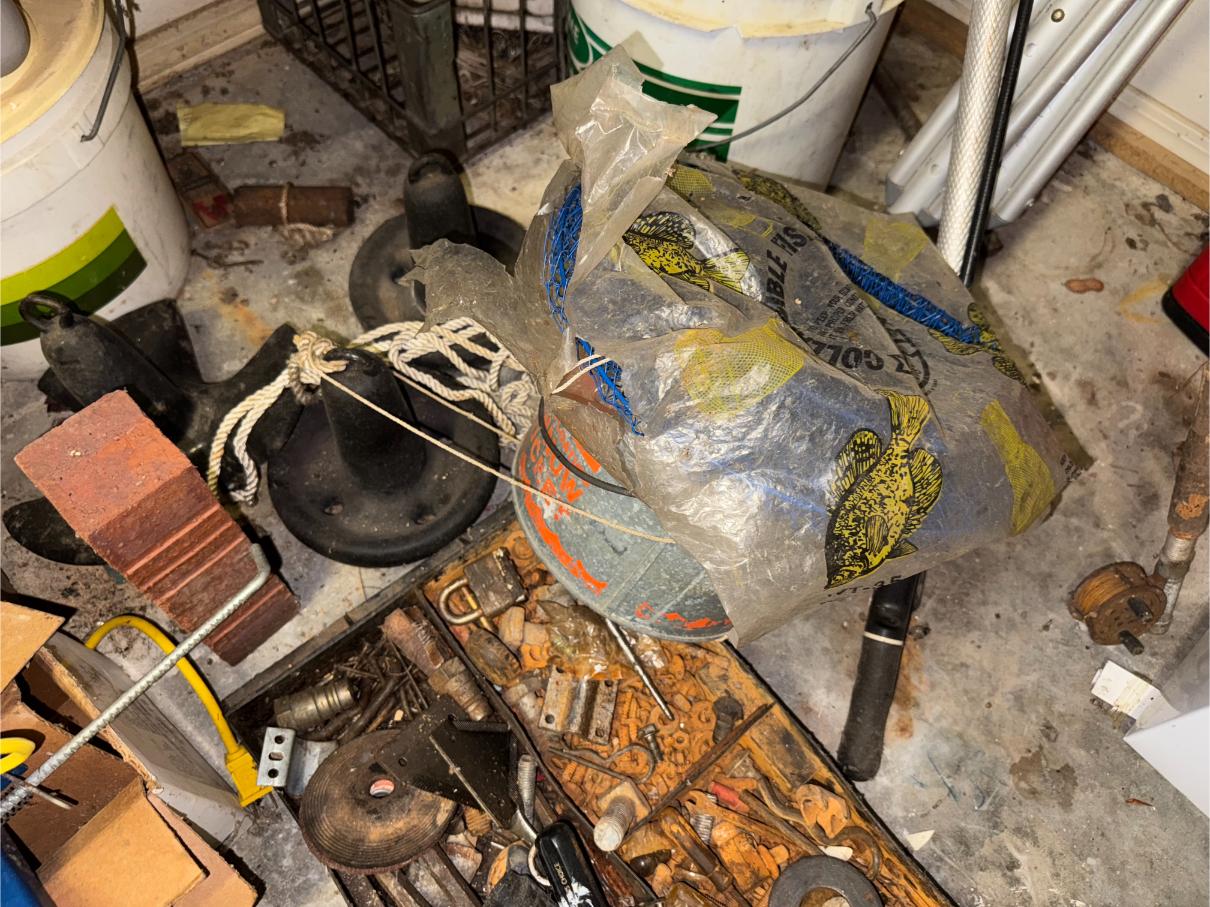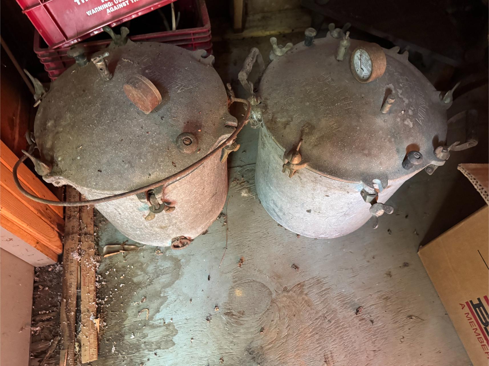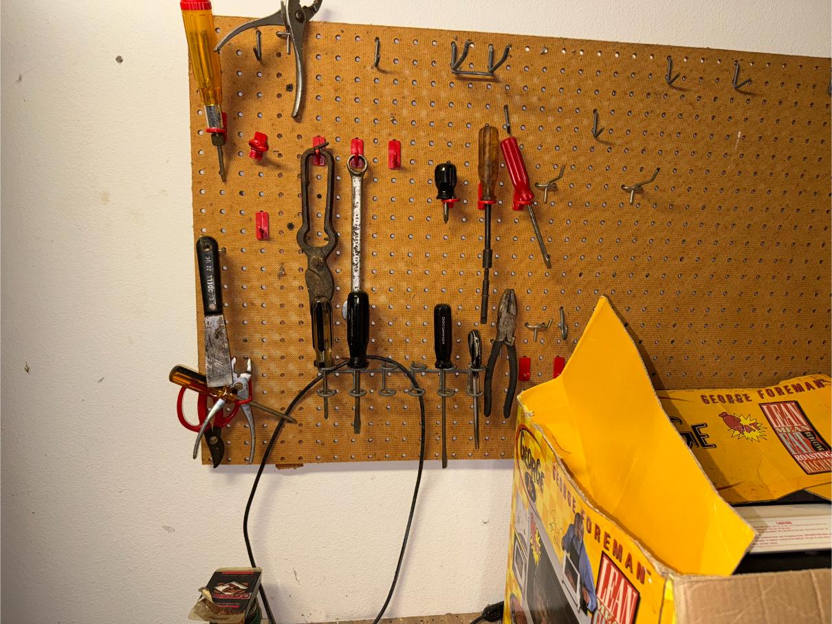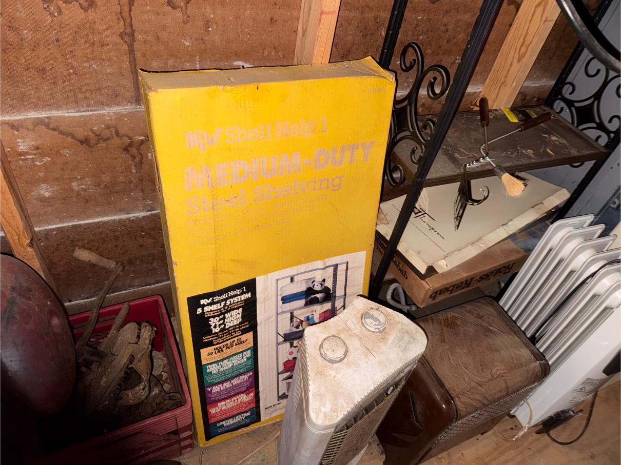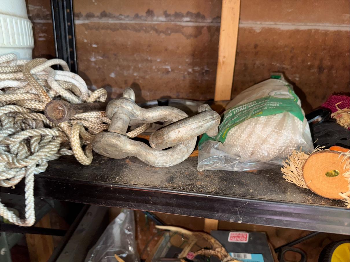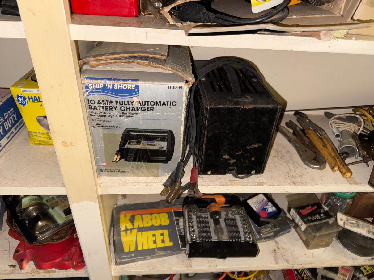 And: Coleman Powermate Generator (New) – Masterbuilt Smoker (New) – Lg Smoker – Metal Lockers – Heaters – Fiberglass Ext Ladder – Alum Ladder – Yard Tools – Hand Tools – Dolly – Chiminea – Wrought Iron Patio Table & Chairs – Picnic Table – Rods & Reels – Boat Oars – Metal Shelves – Coleman Lantern – Feed Trough – Misc Lumber
