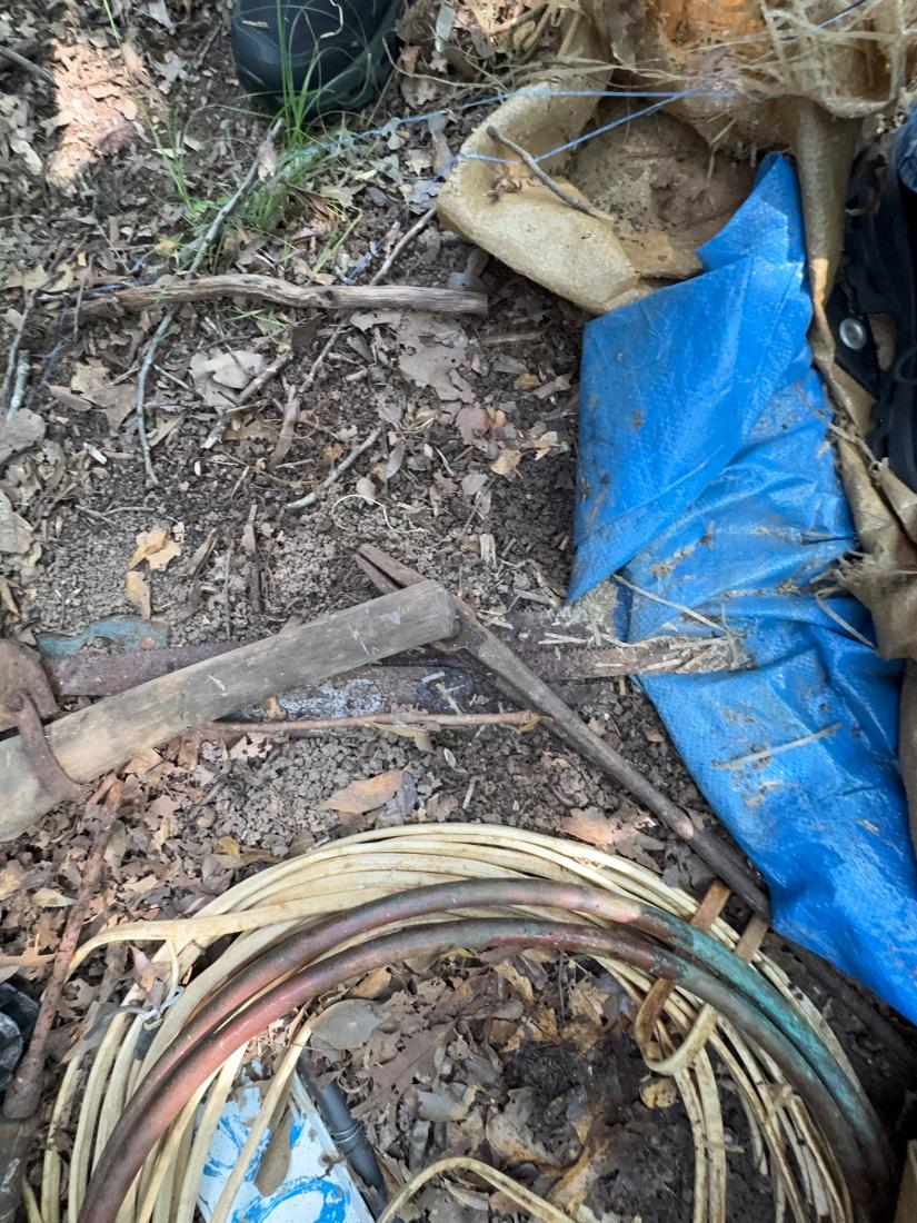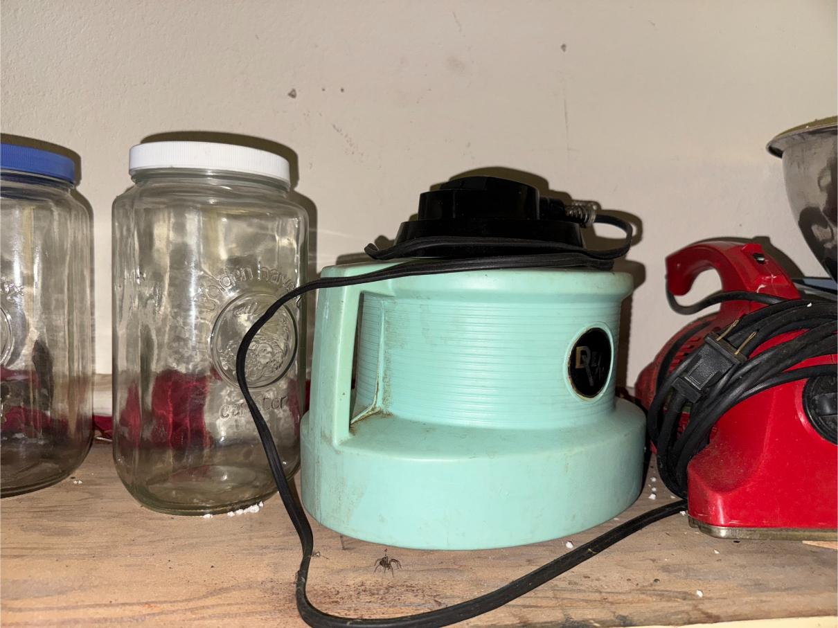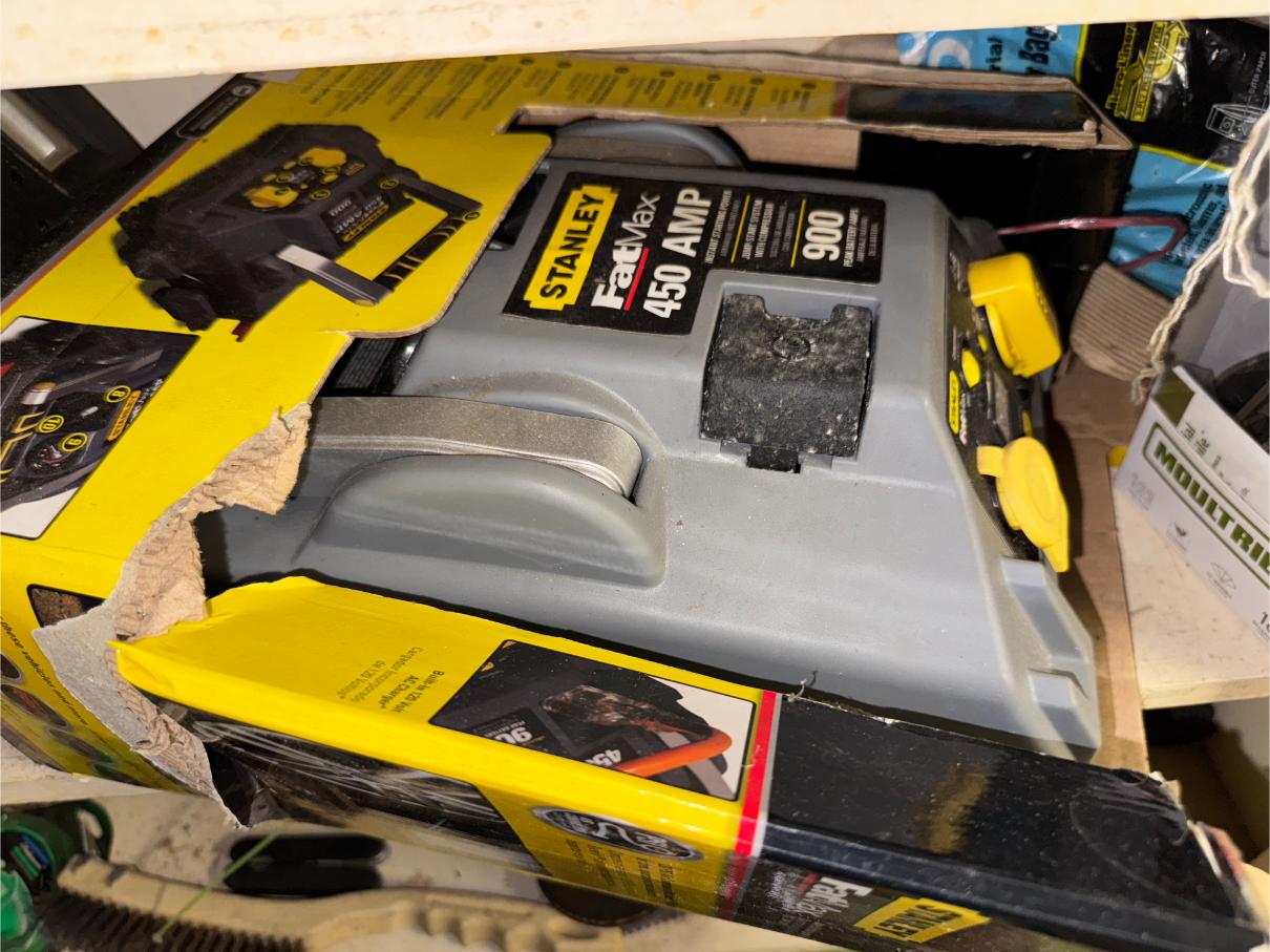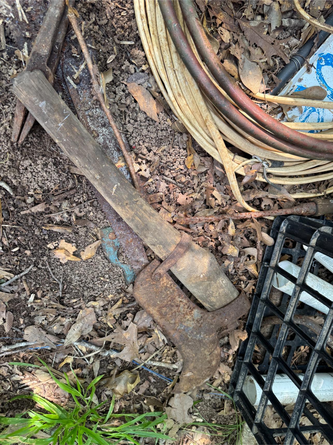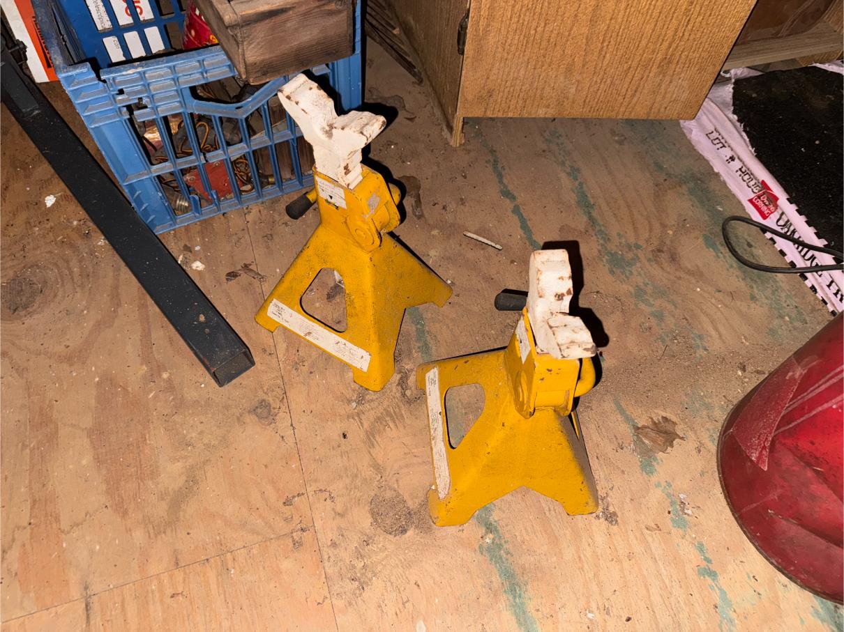 And: Coleman Powermate Generator (New) – Masterbuilt Smoker (New) – Lg Smoker – Metal Lockers – Heaters – Fiberglass Ext Ladder – Alum Ladder – Yard Tools – Hand Tools – Dolly – Chiminea – Wrought Iron Patio Table & Chairs – Picnic Table – Rods & Reels – Boat Oars – Metal Shelves – Coleman Lantern – Feed Trough – Misc Lumber