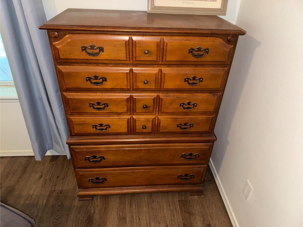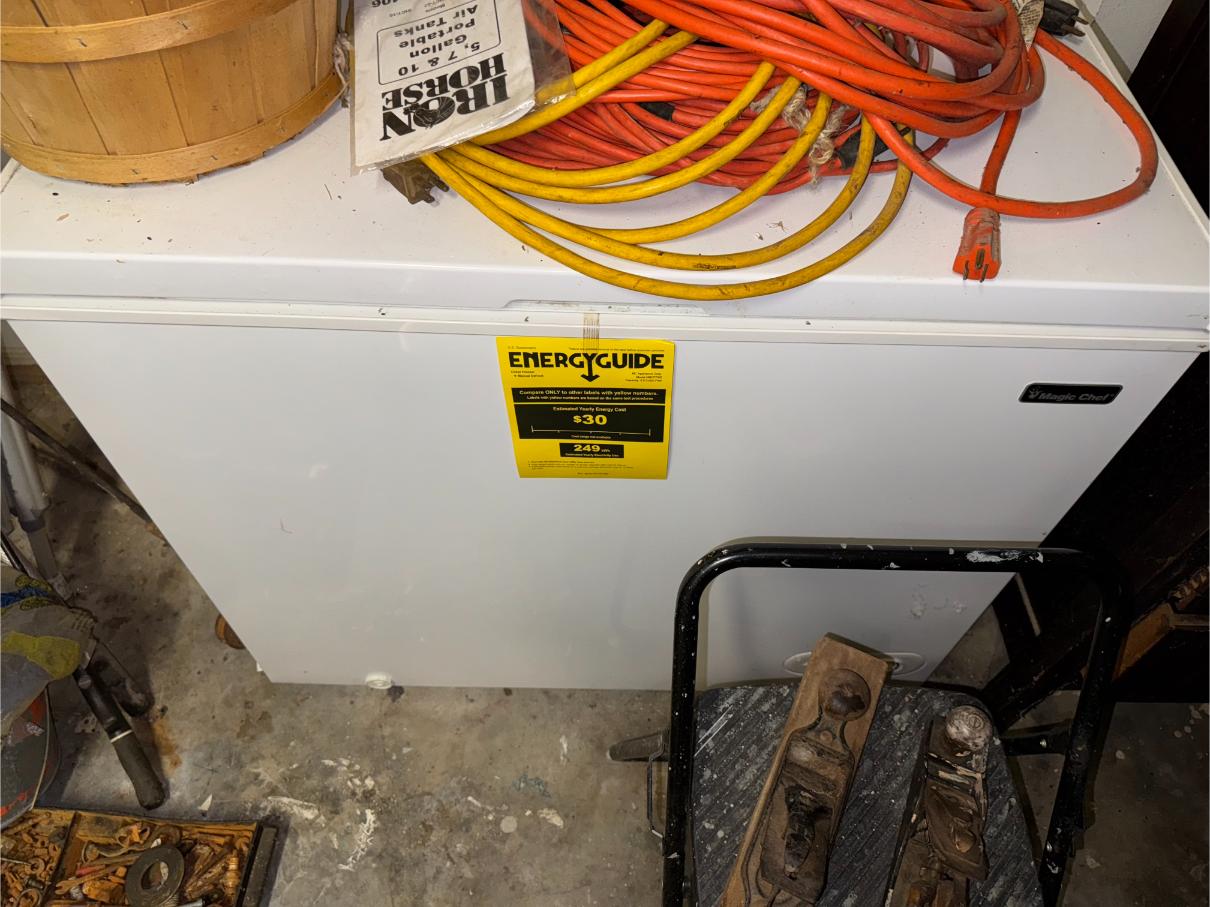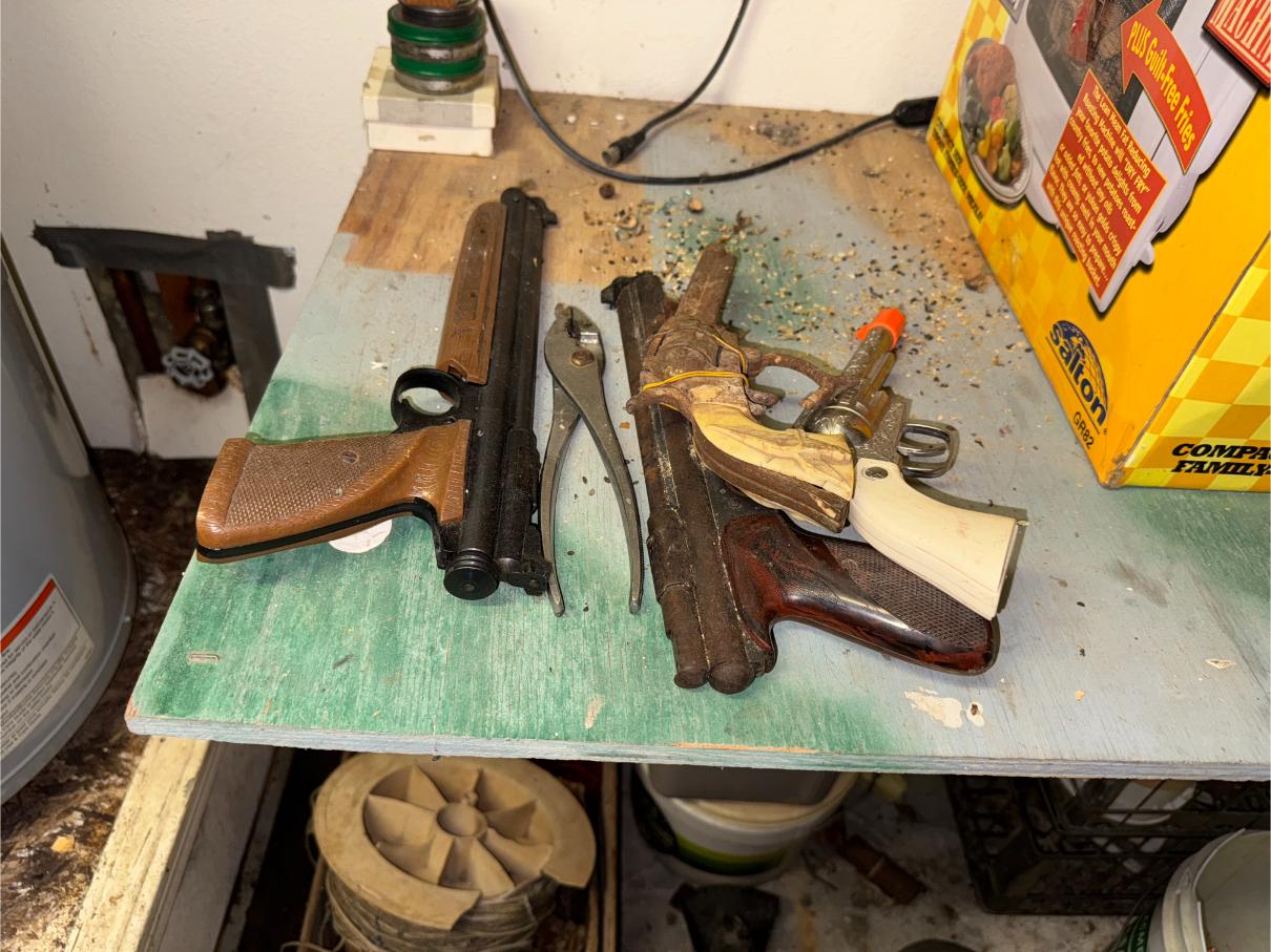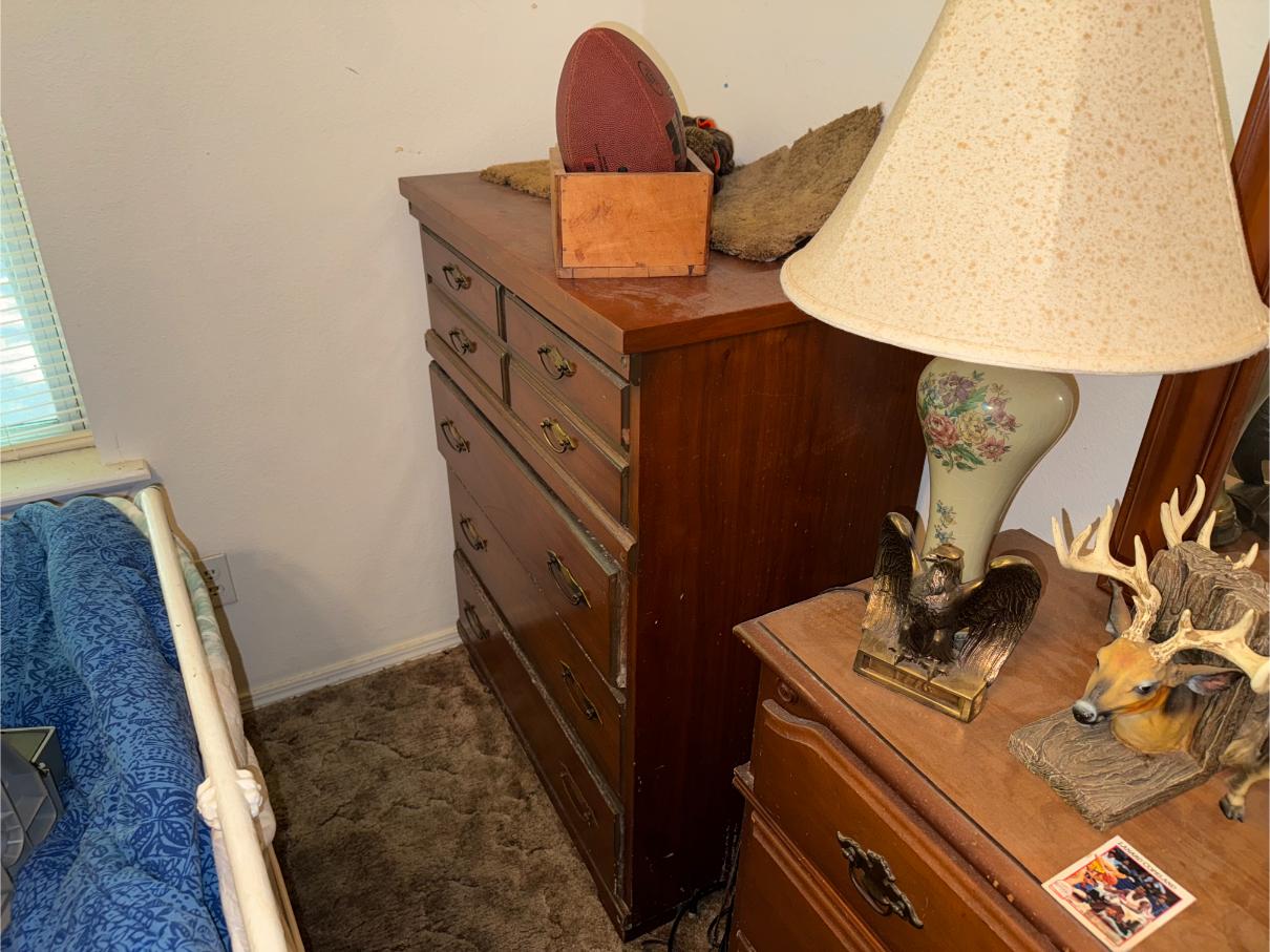 Household: Dual Reclining Sofa – Leather Recliner – Oak Rocker – (2) Mahogany Twin Beds – Oak Gun Cabinet – (2) LG TV’s – Frigidaire Refrigerator – Magic Chef Chest Freezer – Roper Washer – Kenmore Dryer – Small Appliances – Pots & Pans – Corningware – Dishes & Glassware – Elec Fireplace – Lamps – Pictures – Clothes – Camo Clothes – Cowboy Boots & Hat – Linens