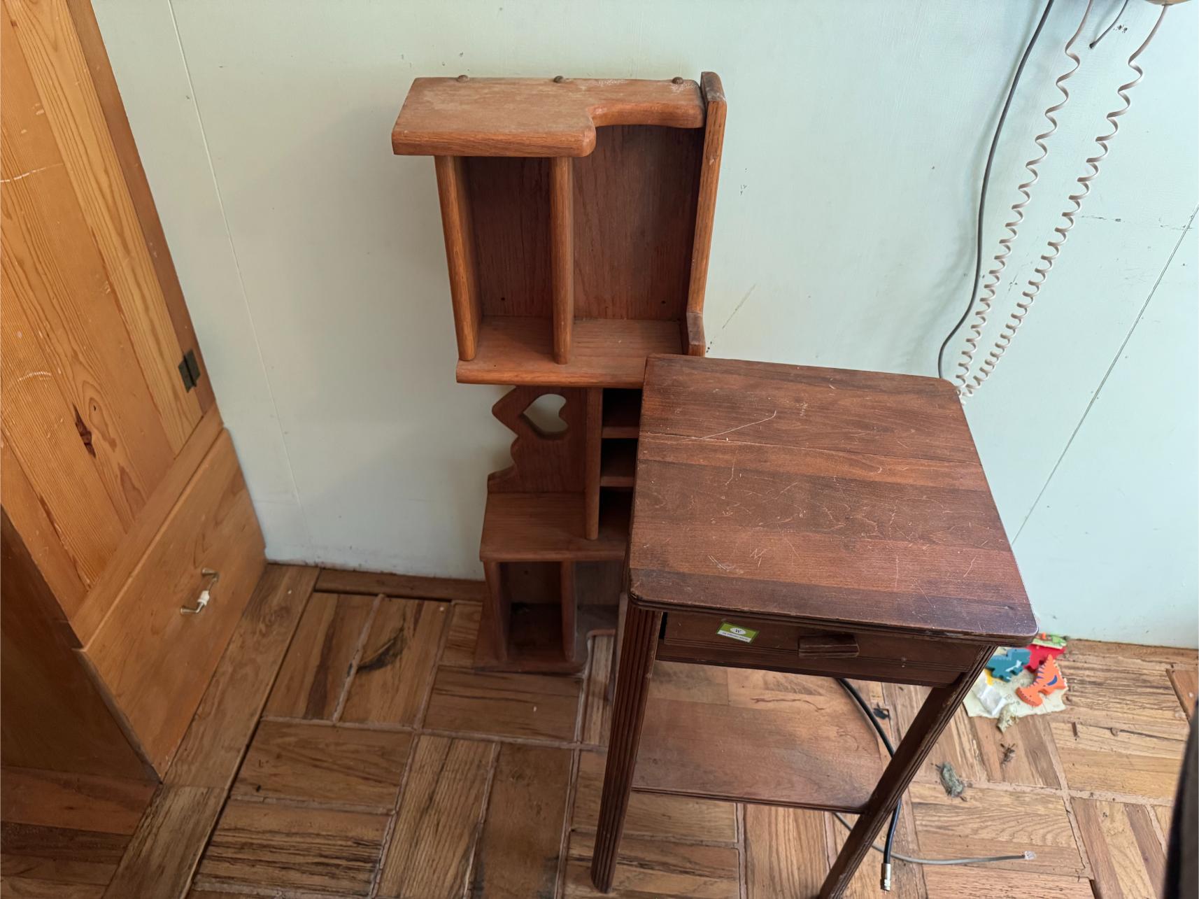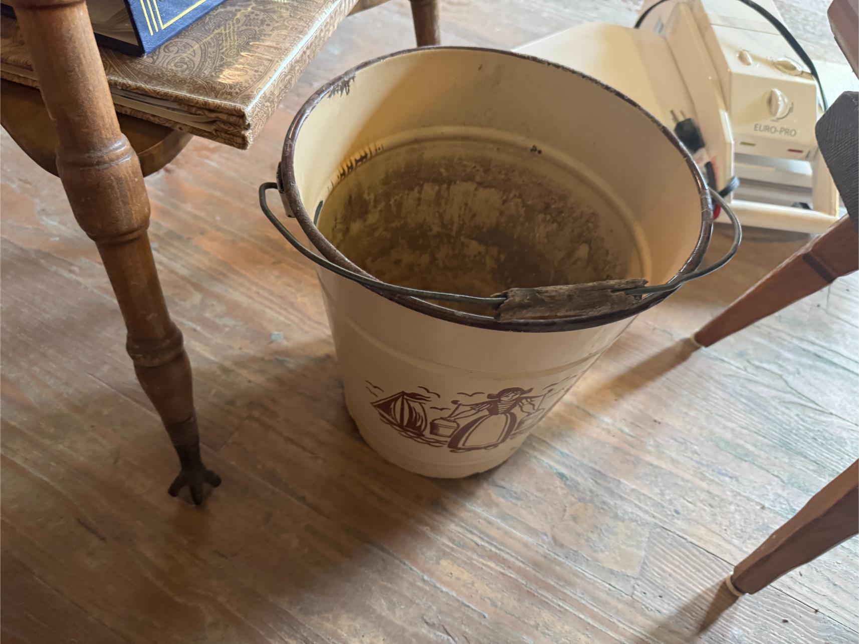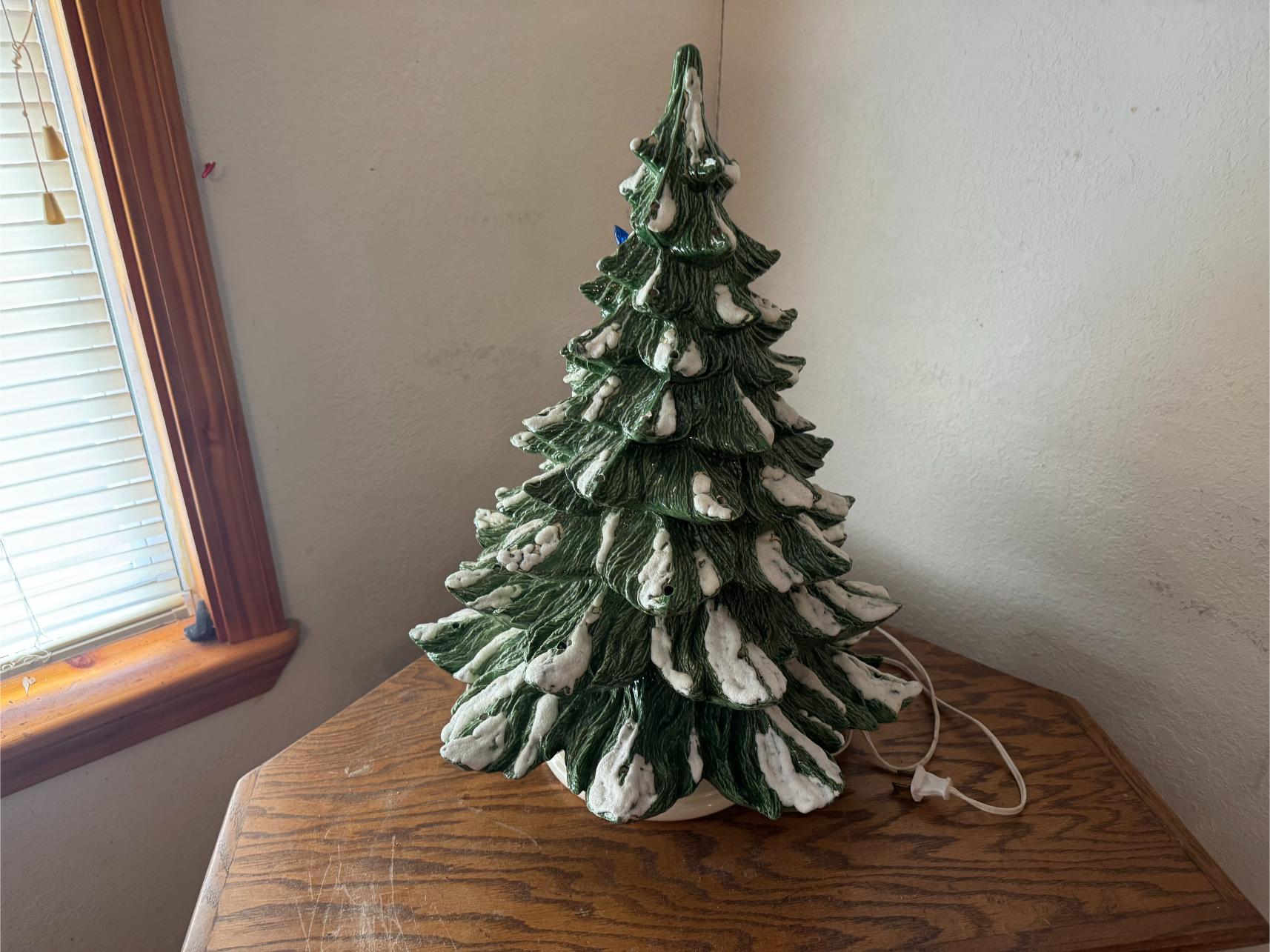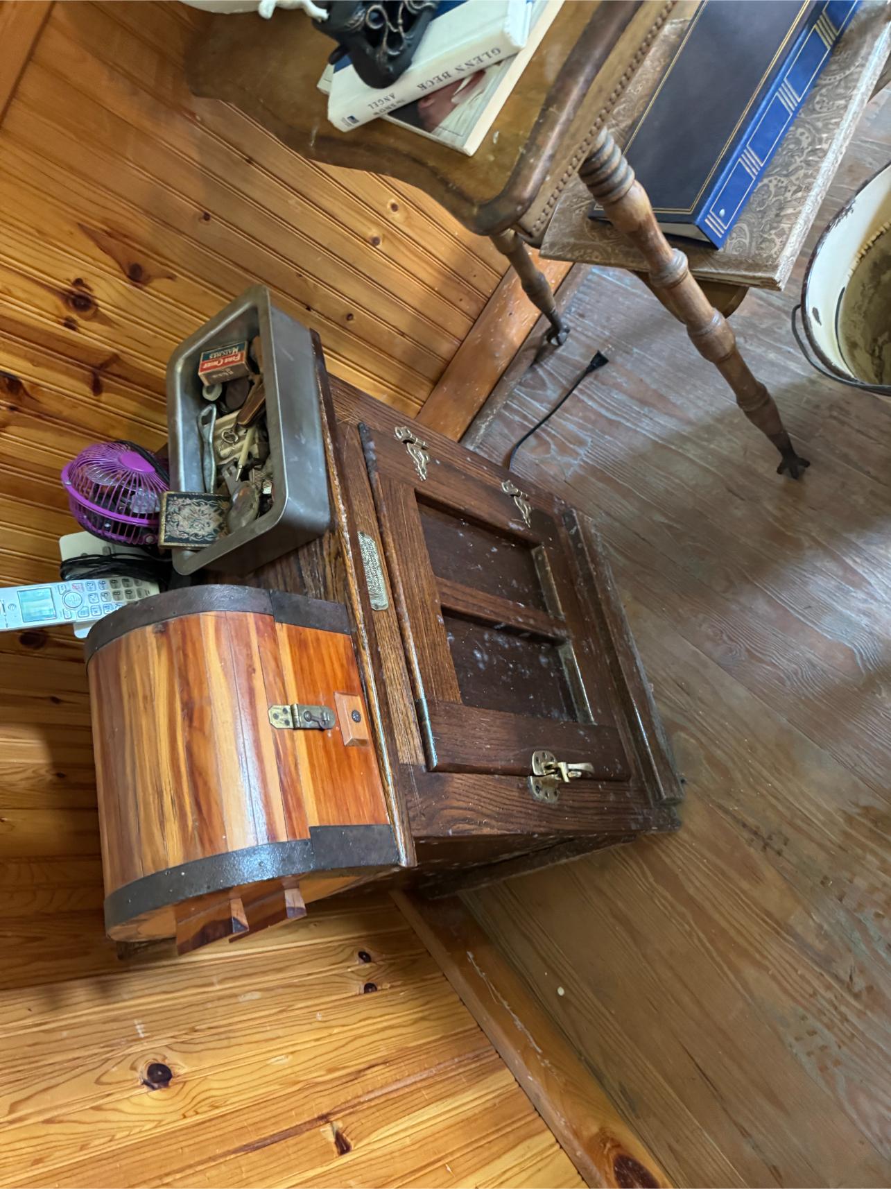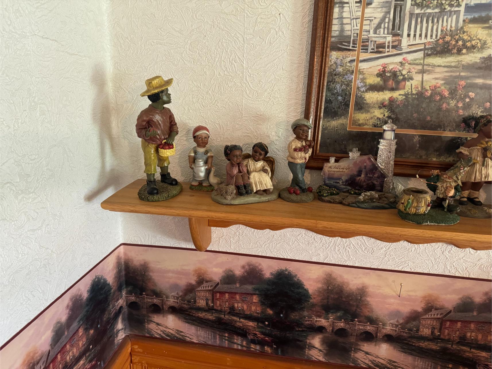 Antiques & Collectibles: Oak Bow Front Hutch – Buffet – Oak Center Tables – Secretarial – Oak Chair – Gossip Bench – Oak Dresser & Chest – Mantle Clock – Cape Cod – Figurines – Cast Iron Skillets & Kettles – #6 Crock – Fire King – Carnival – Corelle – Milk Glass – Cut Glass – Clear Glass – Cartoon Glasses – Cake Plates – Misc Glassware – Enamel Ware – Sad Irons – View Master Junior Projector – Ceramic Christmas Tree – Collector Plates – Marbles – Jewelry – Quilt – Water Heater – Scales – Ice Tongs – Lantern – Bottles