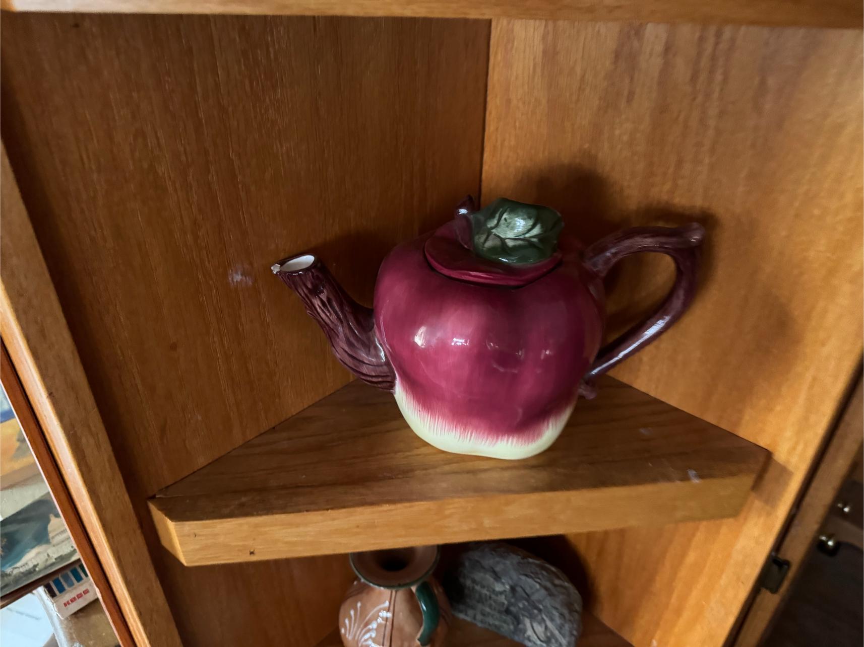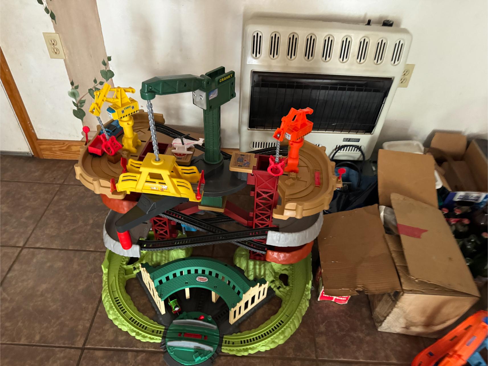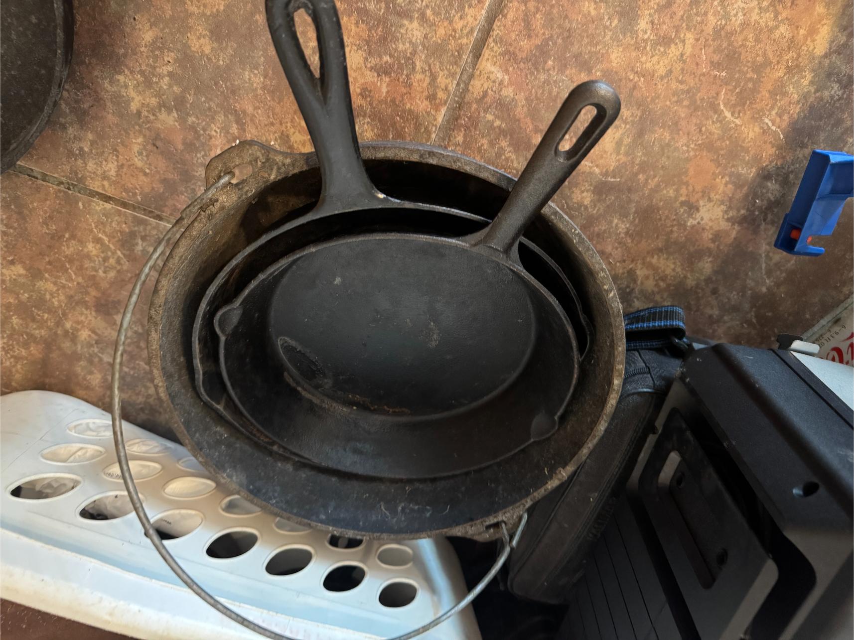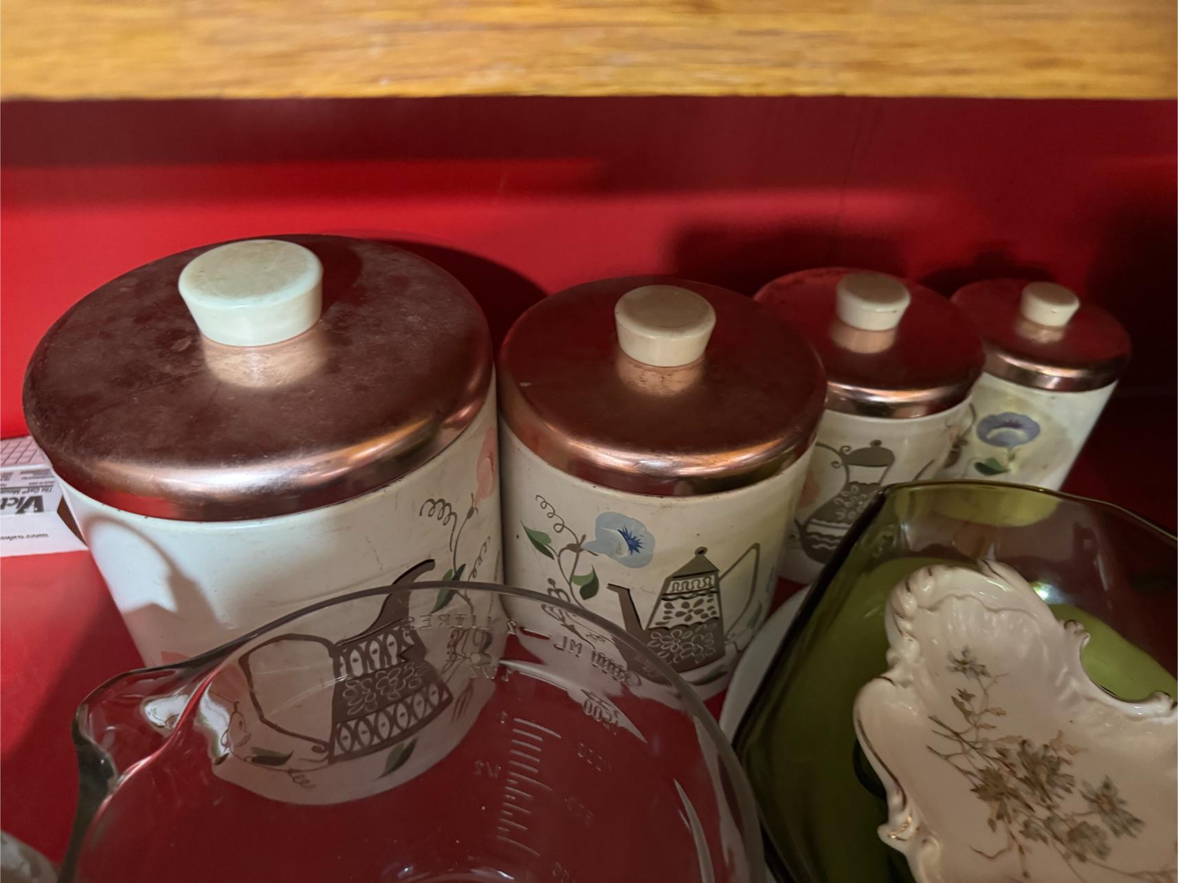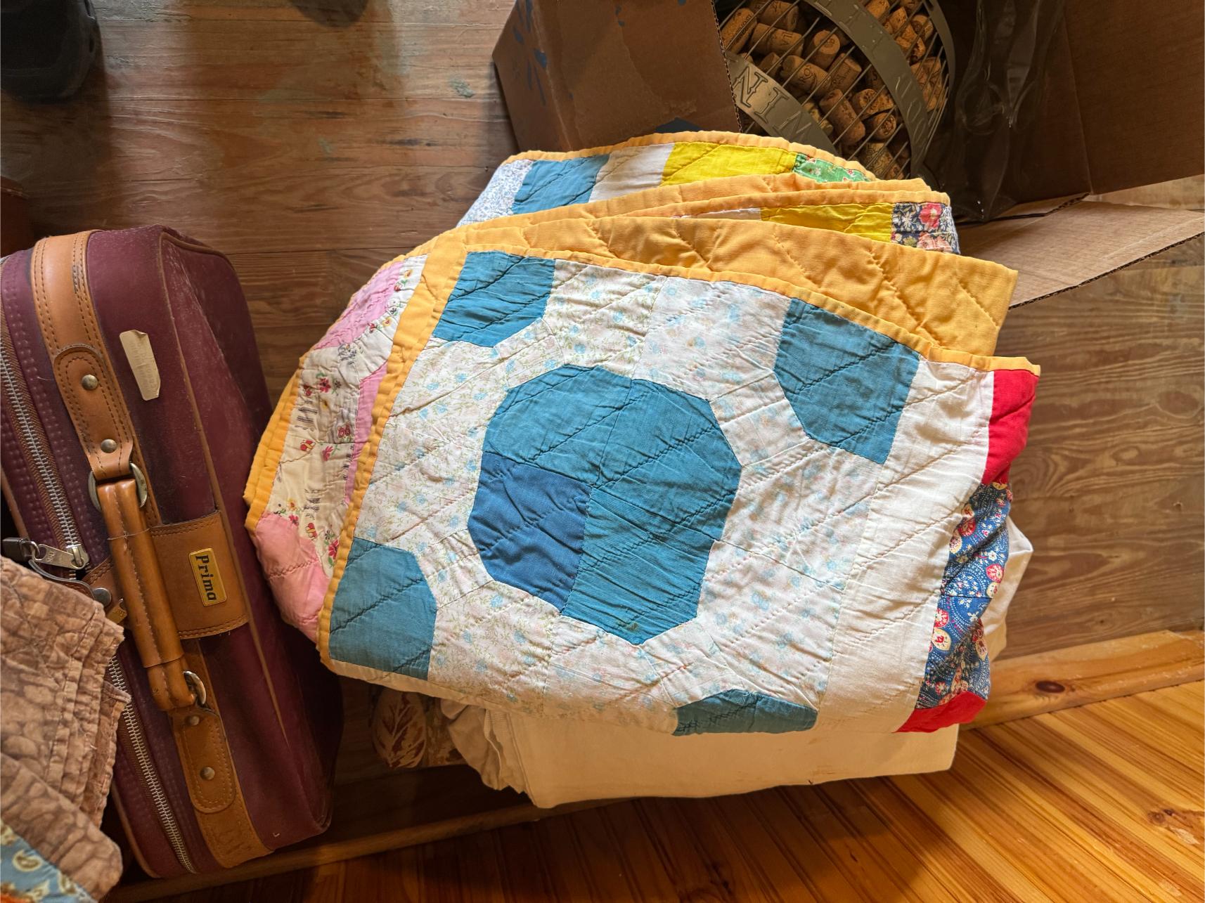 Antiques & Collectibles: Oak Bow Front Hutch – Buffet – Oak Center Tables – Secretarial – Oak Chair – Gossip Bench – Oak Dresser & Chest – Mantle Clock – Cape Cod – Figurines – Cast Iron Skillets & Kettles – #6 Crock – Fire King – Carnival – Corelle – Milk Glass – Cut Glass – Clear Glass – Cartoon Glasses – Cake Plates – Misc Glassware – Enamel Ware – Sad Irons – View Master Junior Projector – Ceramic Christmas Tree – Collector Plates – Marbles – Jewelry – Quilt – Water Heater – Scales – Ice Tongs – Lantern – Bottles