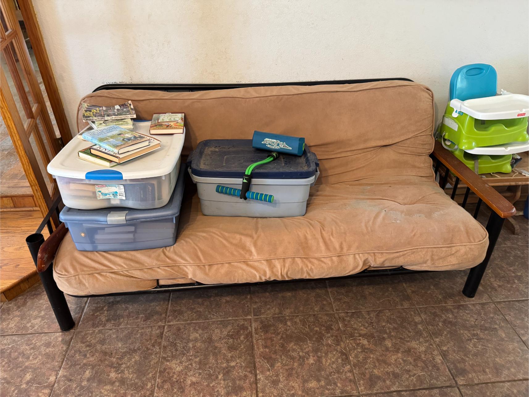 Household: Sofa – Sofa, Coffee & End Tables – Futon – Small Appliances – Pots & Pans – Dishes – Utensils – Pictures – Toys – Singer Fashion Mate Sewing Machine – Linens – Books – Seasonal Decorations