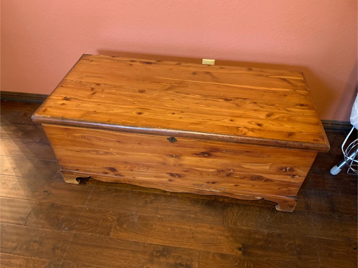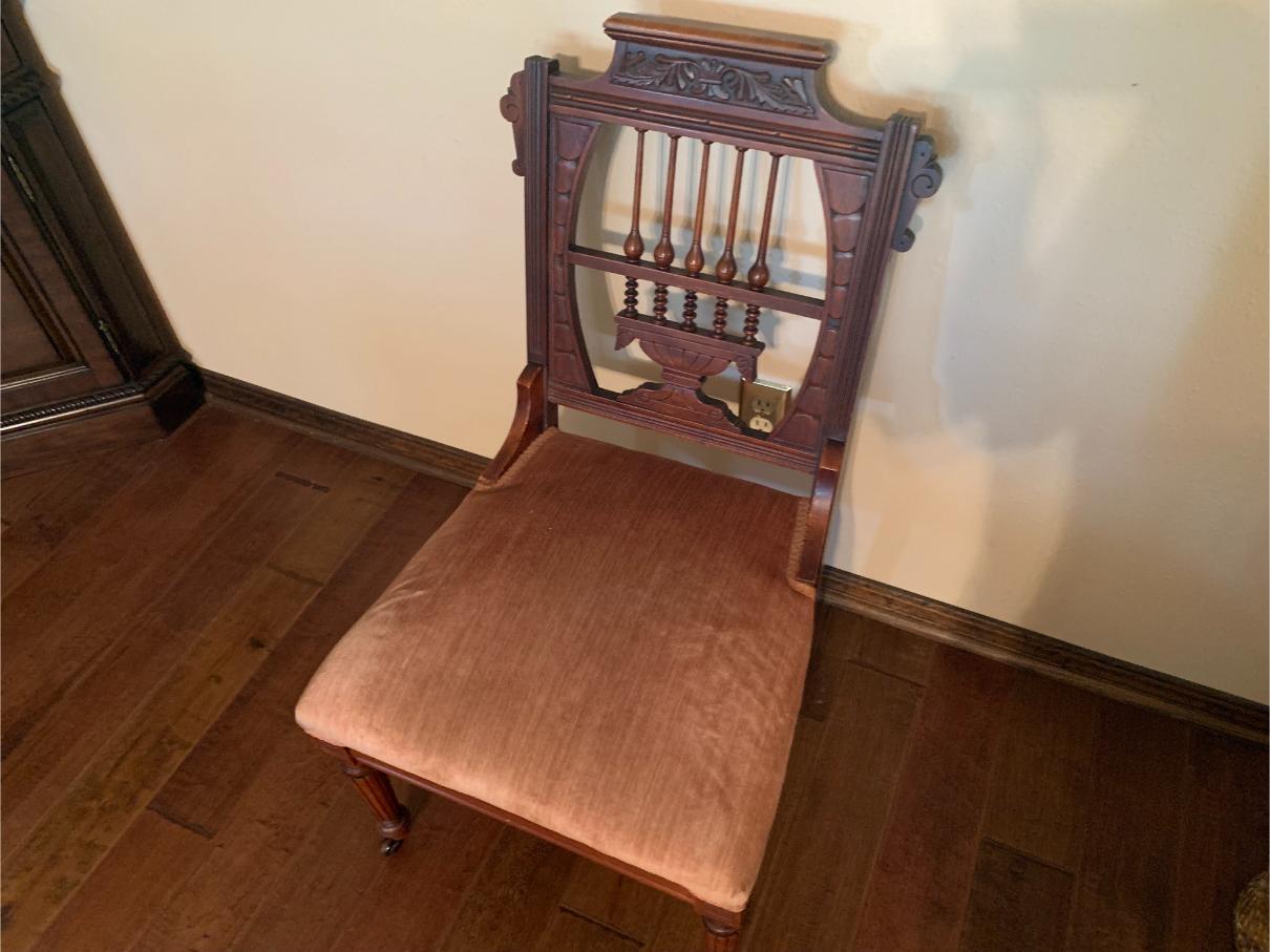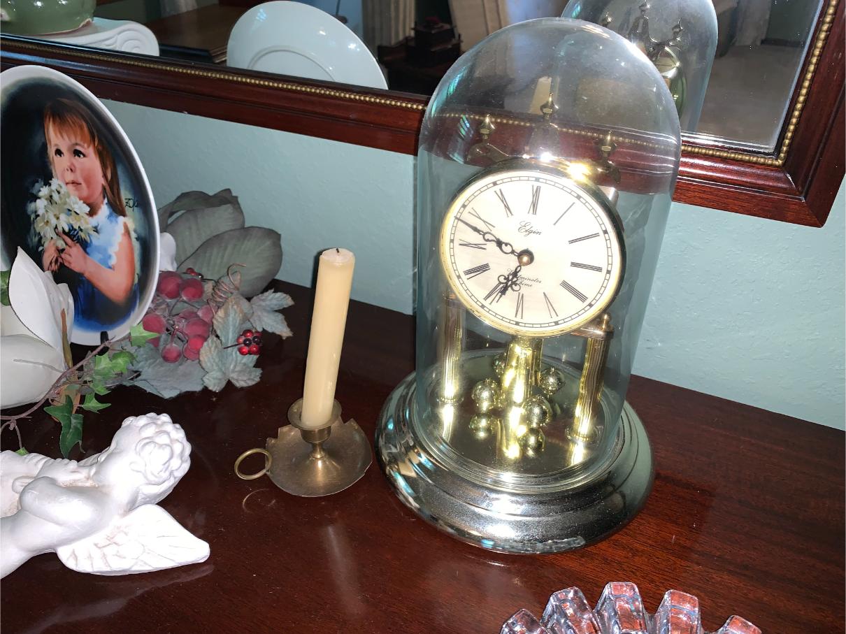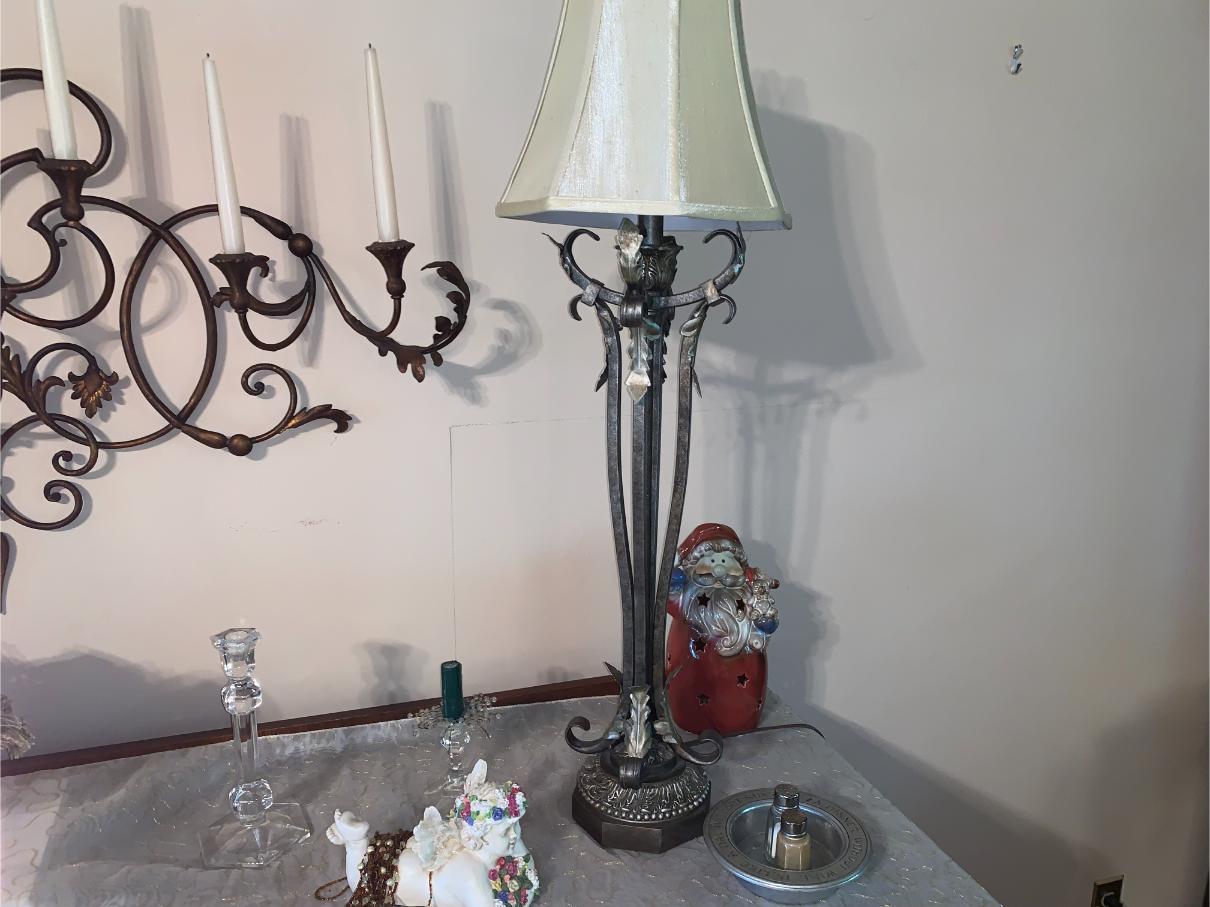 Antiques & Collectibles: Mahogany Buffet – Victrola “The Golden Throat” in Cabinet – Singer Treadle Base Sewing Machine – Sewing Machine Drawer Cabinet (Unique) – Mauthe Wall Clock – Dropleaf Table – Eastlake Chair – Needlepoint Chair – Cedar Chest – Cherry Dresser – Crystal – Etched Glass Stemware – Figurines – Cast Iron Skillet