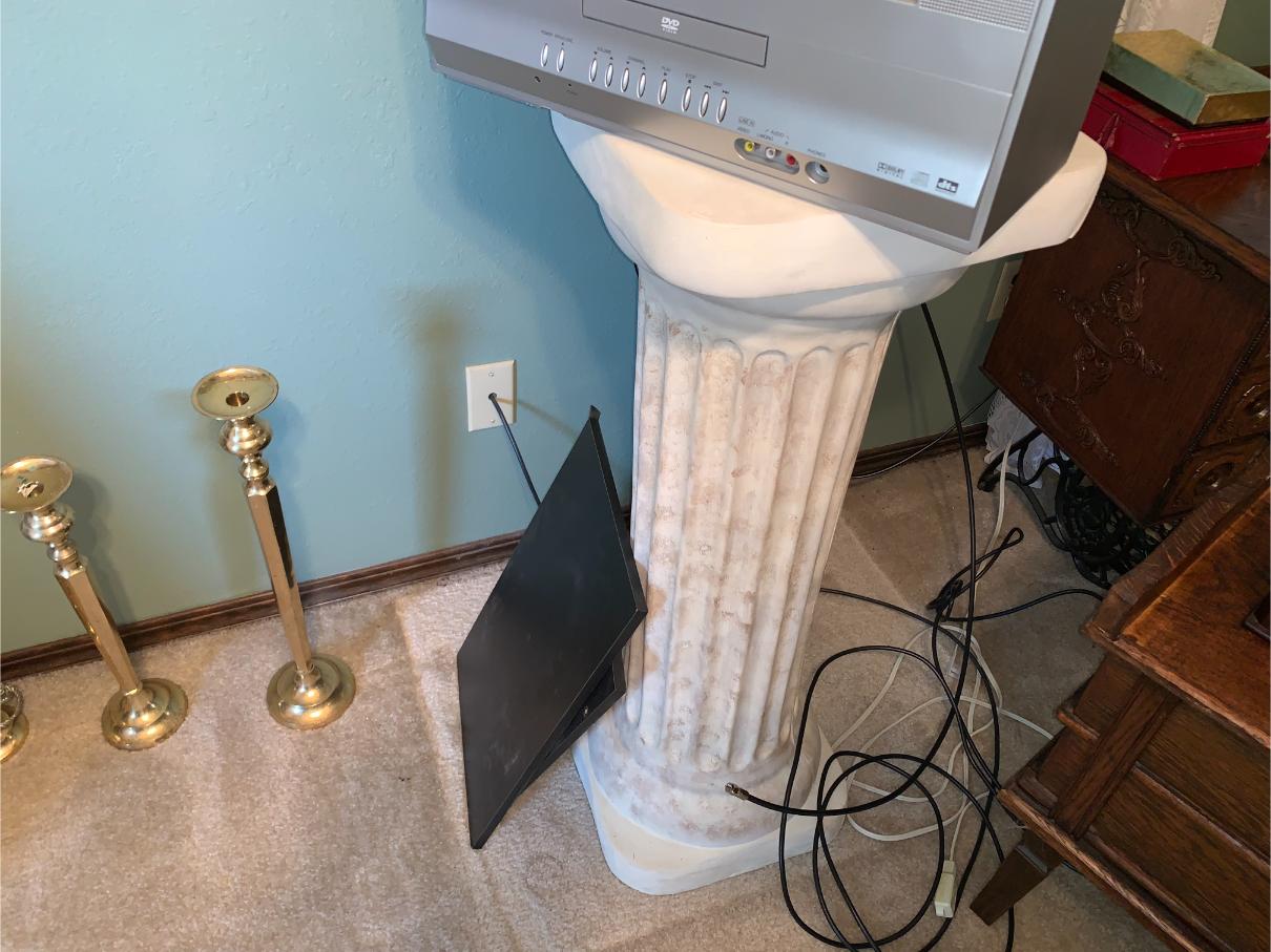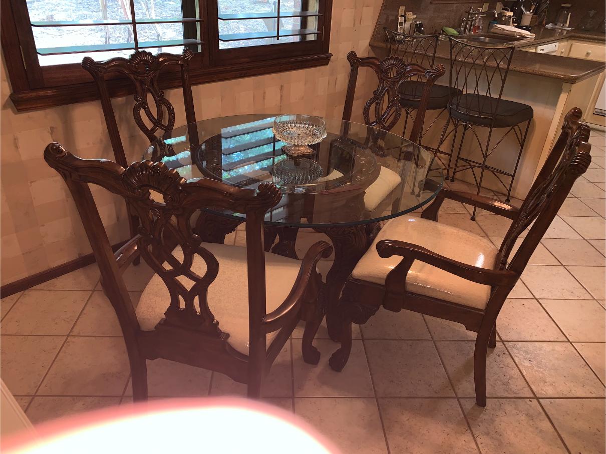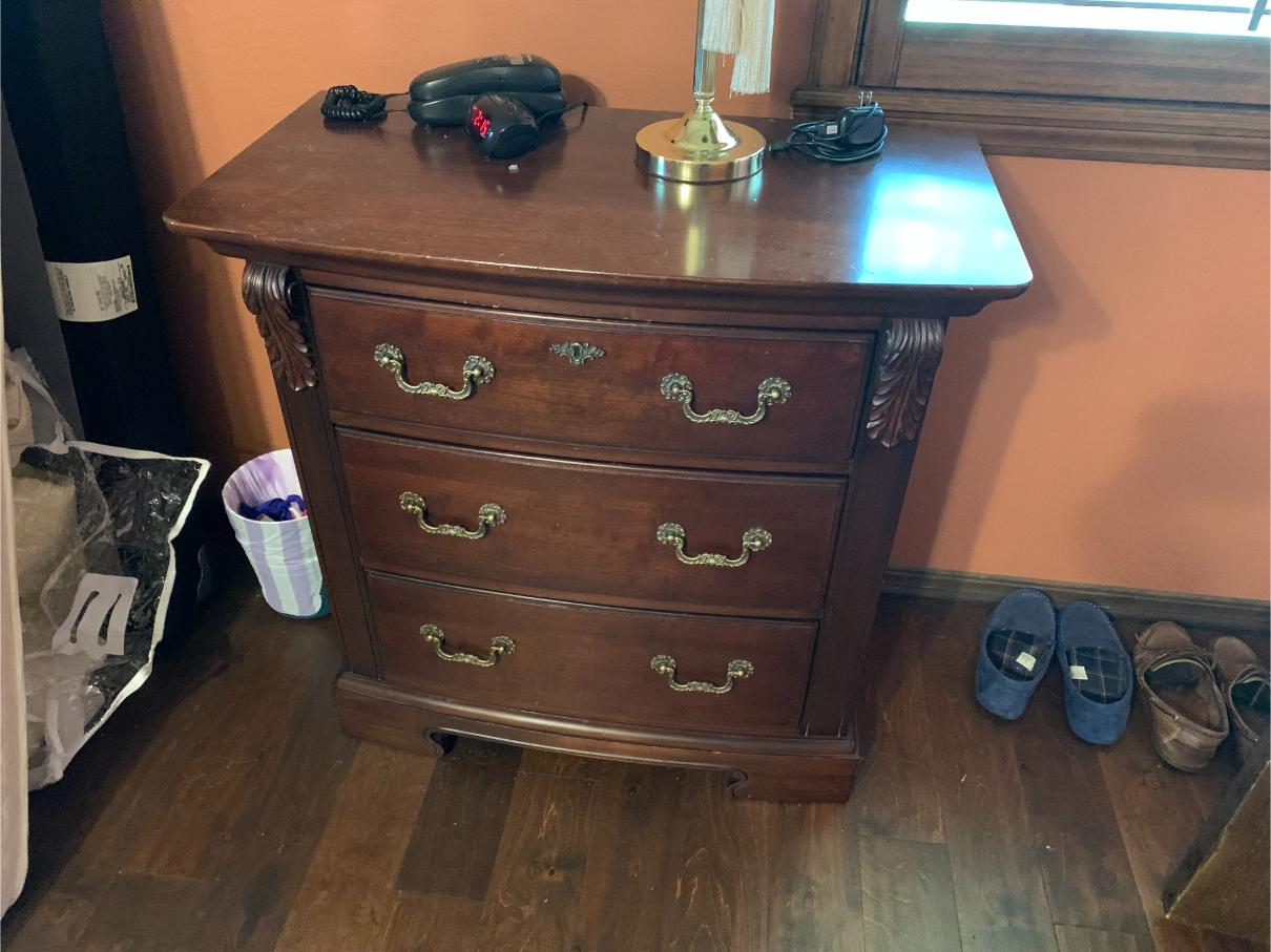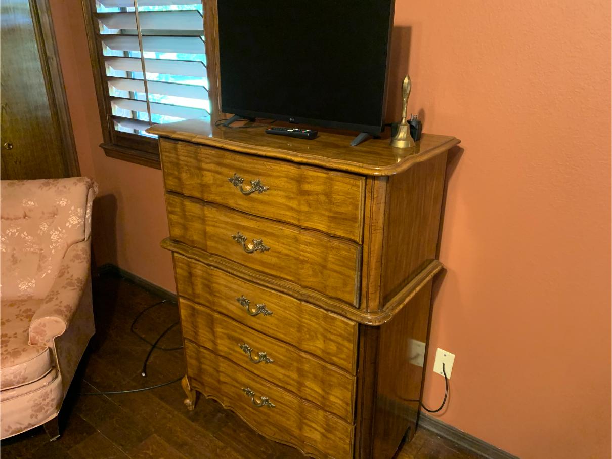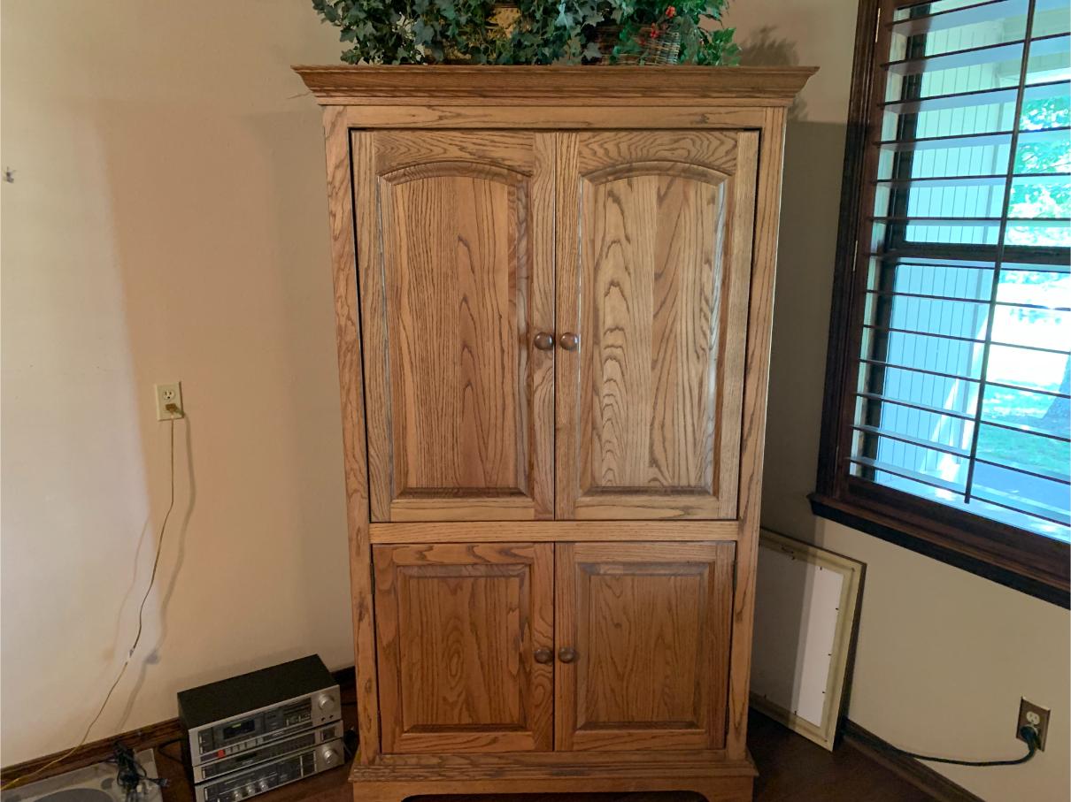 Household: Cherry w/Glass Top Dining Table & Chairs – (2) Bar Stools – Sofa – Leather Lift Chair – (2) Recliners – Metal Base Coffee Table – Oak TV Cabinet – Occasional Tables & Chairs – Oak Chest – Thomasville Nightstand – Frigidaire Refrigerator – Kenmore Upright Freezer – Panasonic Microwave – Small Appliances – Pots & Pans – Pyrex – Fiesta Dishes – Misc Dishes & Glassware – Lamps, Floor Lamp – Pictures & Mirrors – TV’s (LG, Sony, etc) – Pioneer Stereo & Turn Table – Misc Electronics – Home Decor – Clothes, Shoes, Cowboy Hats – Linens – Books – Oreck Vac – Primo Water Dispenser