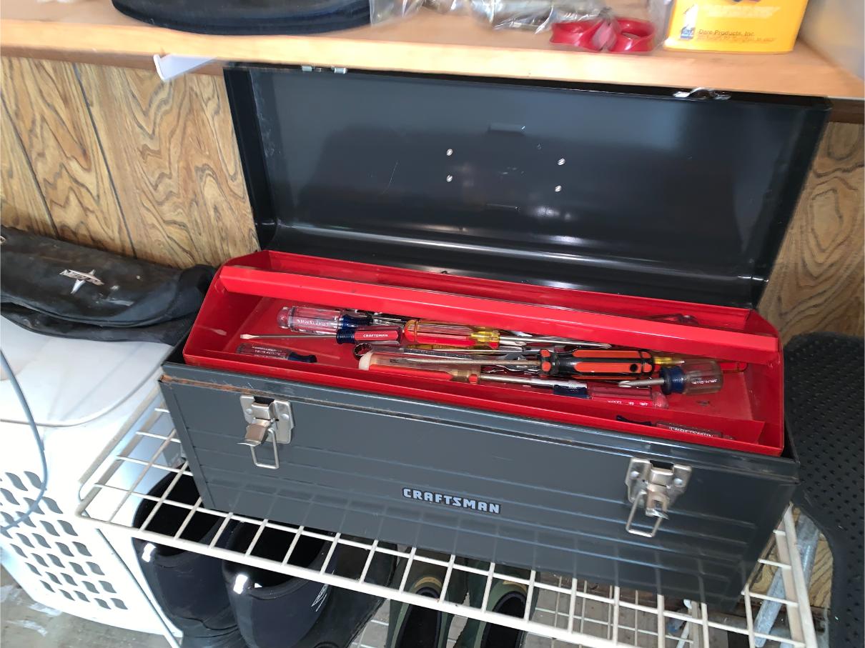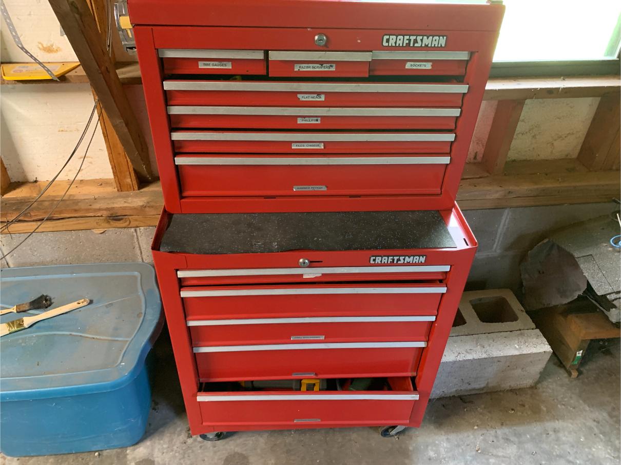 And: Craftsman Roll Around Toolbox – Hand Tools – Yard Tools – Small Tiller – Air Compressor – Battery Charger – Elec Blower – Alum Ladders – Alum Ramps – Live Trap – Exerciser – Concrete Yard Statues – Metal Deer – BBQ Grills