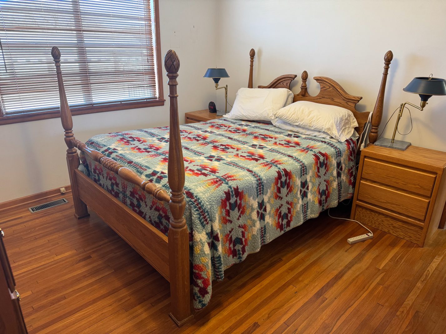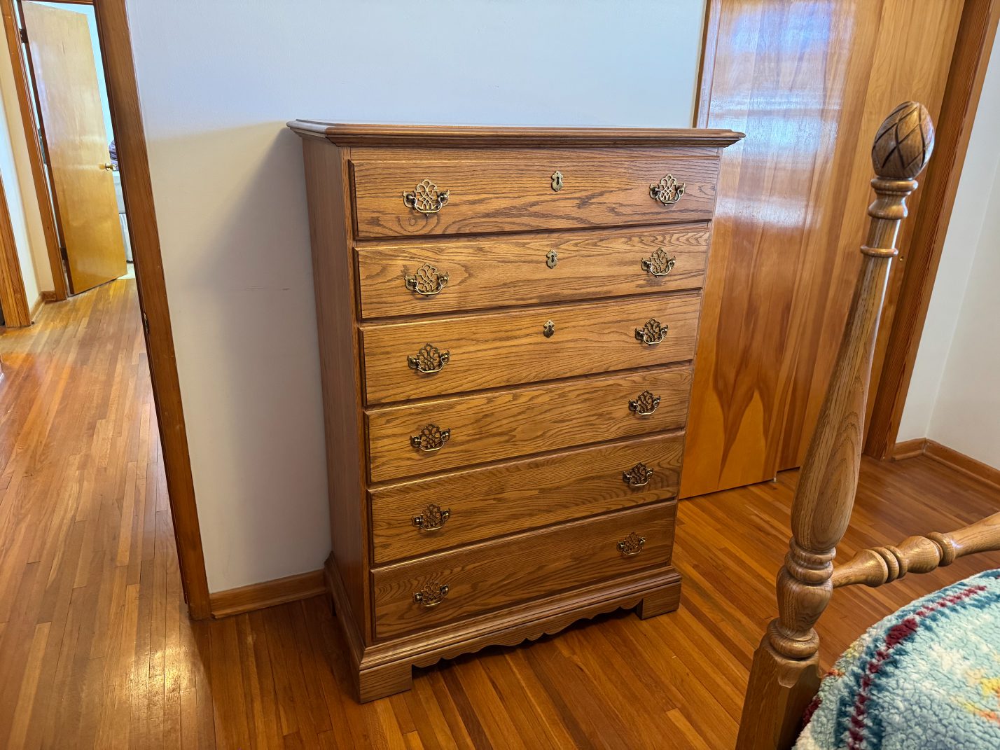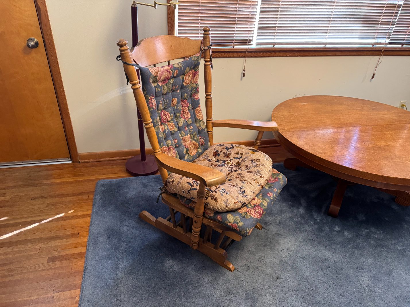 Furniture: Lawyers Bookcases – Sofa – Loveseat – Glider Chair – Coffee Table – Floor Lamps – Samsung TV – Oak Chest Of Drawers – Oak Desk – Filing Cabinets – Oak Nightstands – Kitchen Table With 8 Chairs – Dresser – Queen Size Bed – Full-Size Bed – Lamps – Bookshelves – Gun Rack – Stools – Card Table