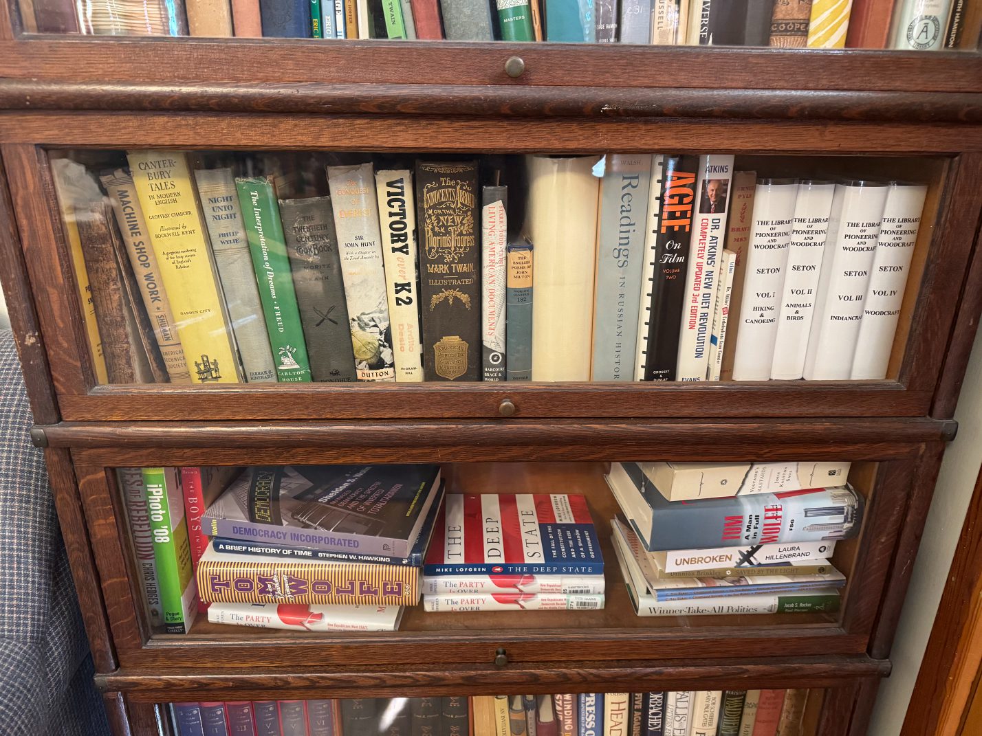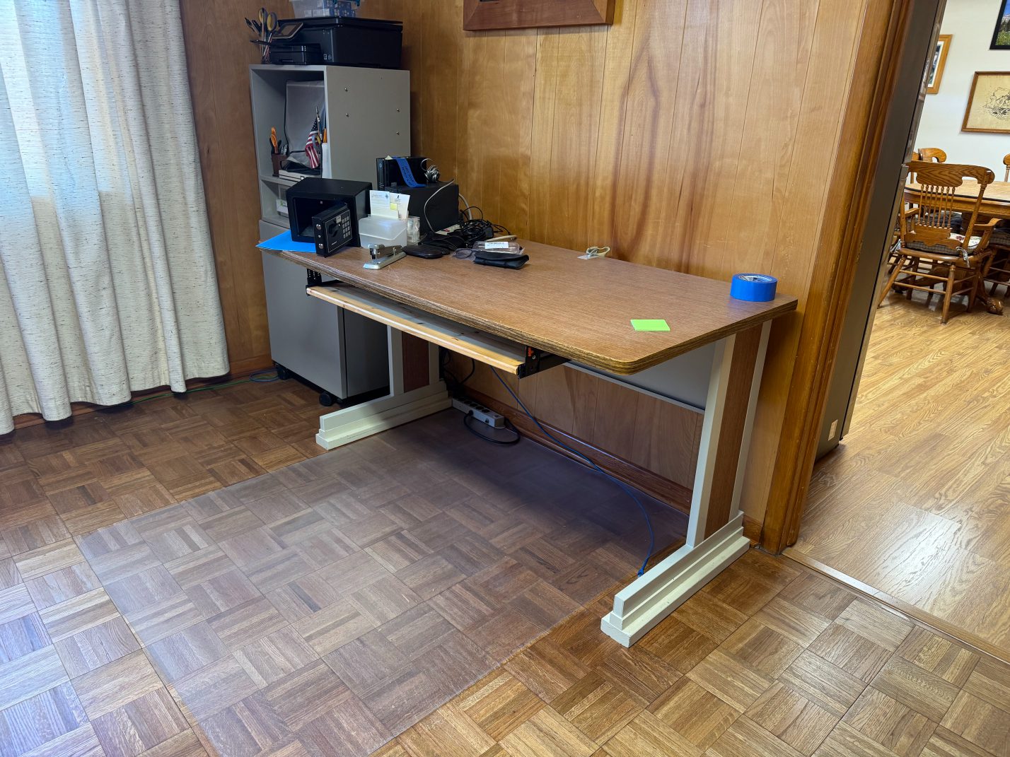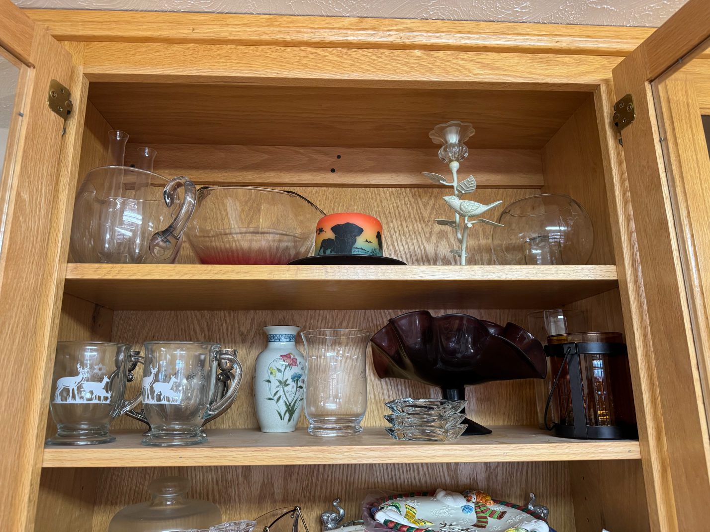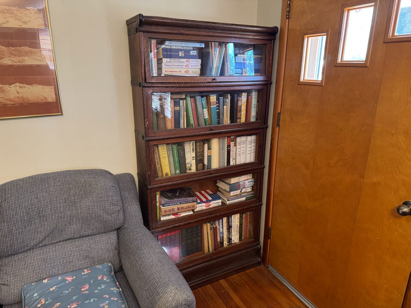 Furniture: Lawyers Bookcases – Sofa – Loveseat – Glider Chair – Coffee Table – Floor Lamps – Samsung TV – Oak Chest Of Drawers – Oak Desk – Filing Cabinets – Oak Nightstands – Kitchen Table With 8 Chairs – Dresser – Queen Size Bed – Full-Size Bed – Lamps – Bookshelves – Gun Rack – Stools – Card Table