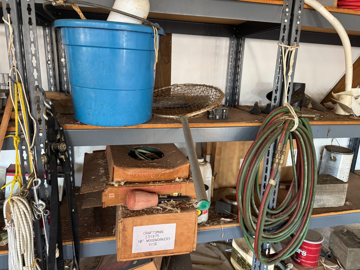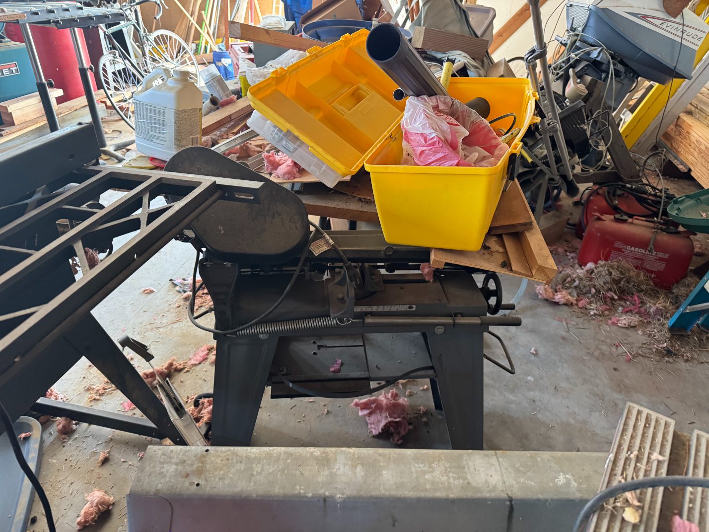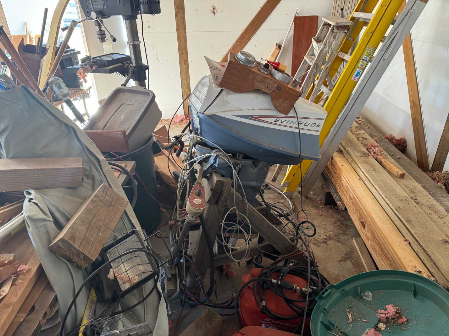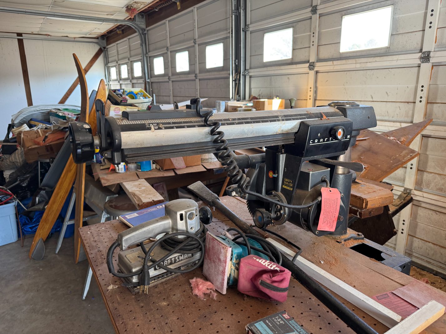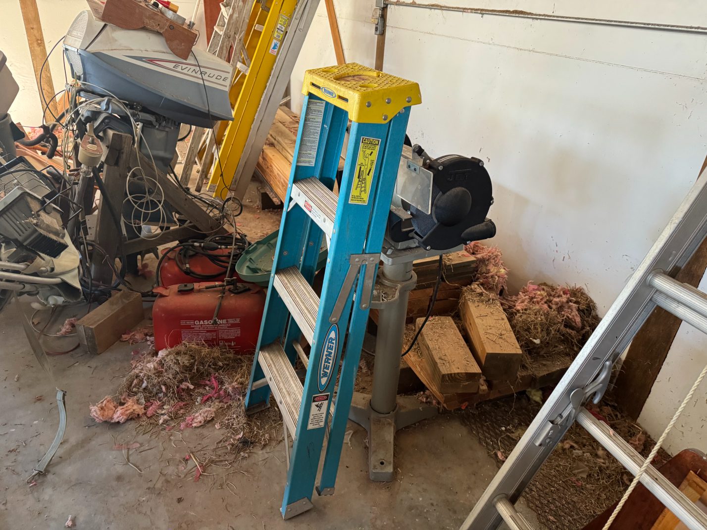 Tools/Shop items: Spotting Scope – Ladders – Grinder – Electric Weed Eater – Extension Cords – Yard Tools – Gas Cans – Dolly – Rigid Shop Vac – Hand Tools – Toolboxes – Power Tools – Jax Beer Sign – Stainless Roll Around Cart – Tackle Boxes – Tackle – Fishing Rods And Reels – Fly Rods – Fishing Nets – Minnow Buckets – Step Ladders – Jet Band Saw – Jointer – Lumber Rollers – Craftsman Radial Arm Saw – Craftsman Scroll Saw – Bolt Bins – Craftsman 10” Table Saw – Sand Blaster – Craftsman Router – Craftsman Drill Press – Lumber – Evinrude Boat Motor – Skil Saw Chop Saw – Jet Metal Cutting Saw – Water Hoses – Craftsman Air Compressor – Saw Horses – Jet Grinder – Extension Ladders – Craftsman Roll Around Tool Box – Park Tool Bicycle Tools – Grease Gun – Air Hoses – Vise – Clamps – Jack Stands – Air Tank – Walk Board – Reloading Supplies – Leather Holsters – Gun Cleaning Supplies – Wheelbarrow – Dayton Shop Fan – Halogen Lights – Electric Pressure Washers
