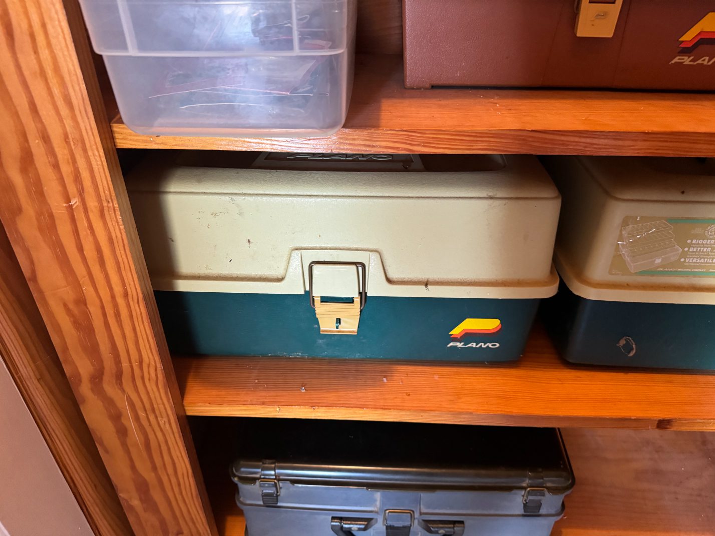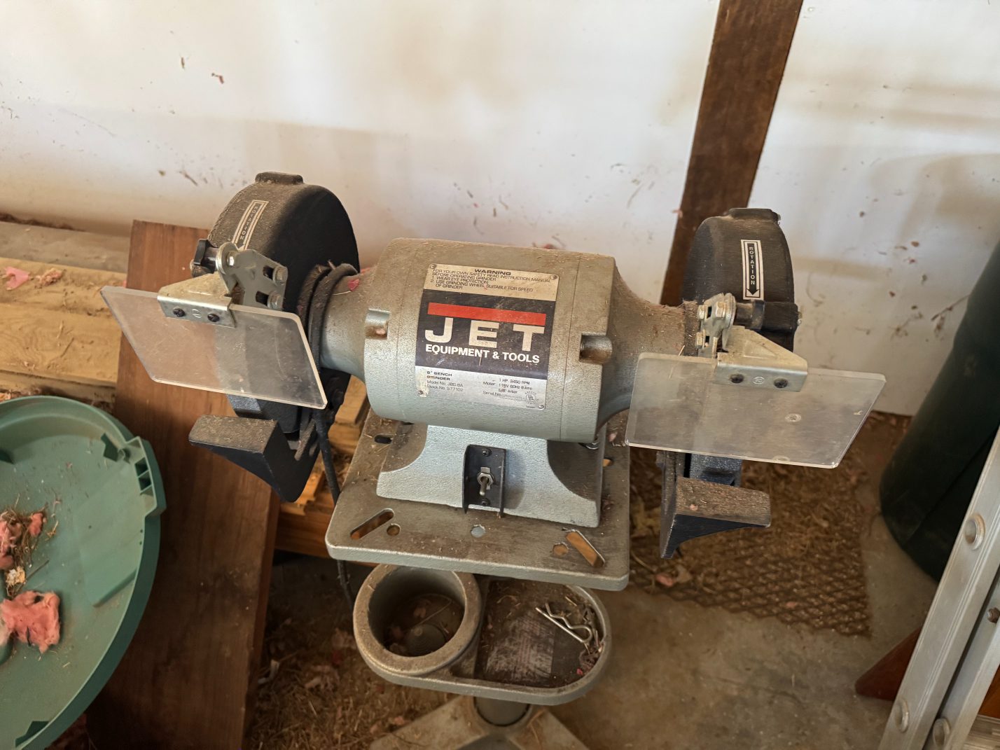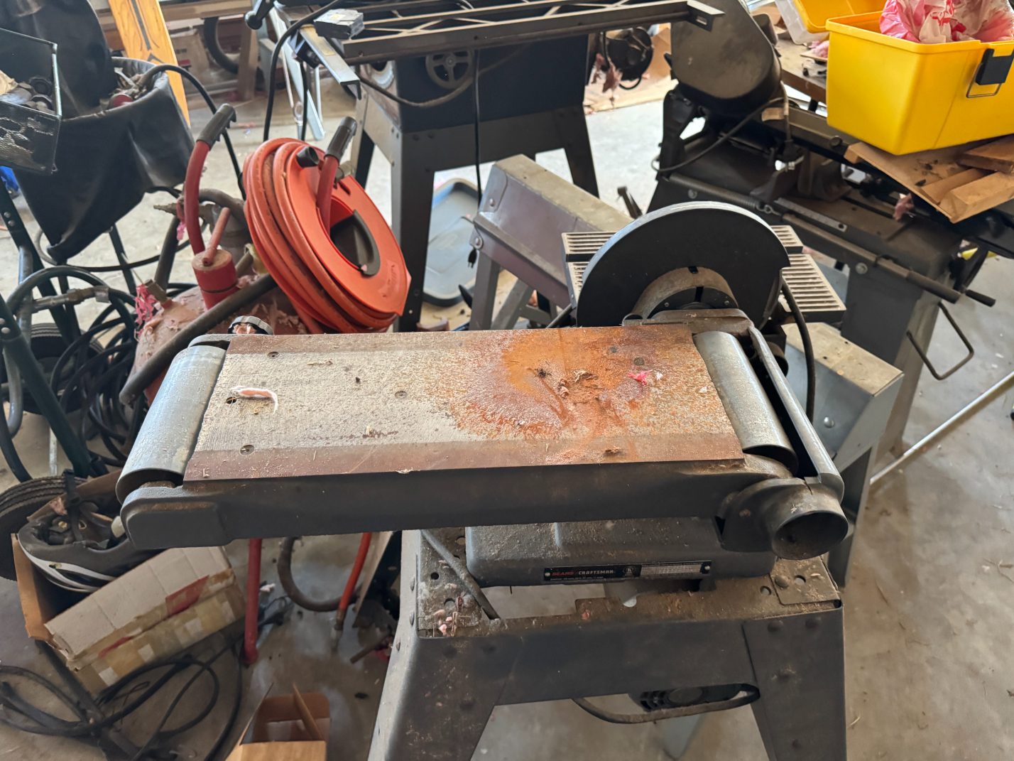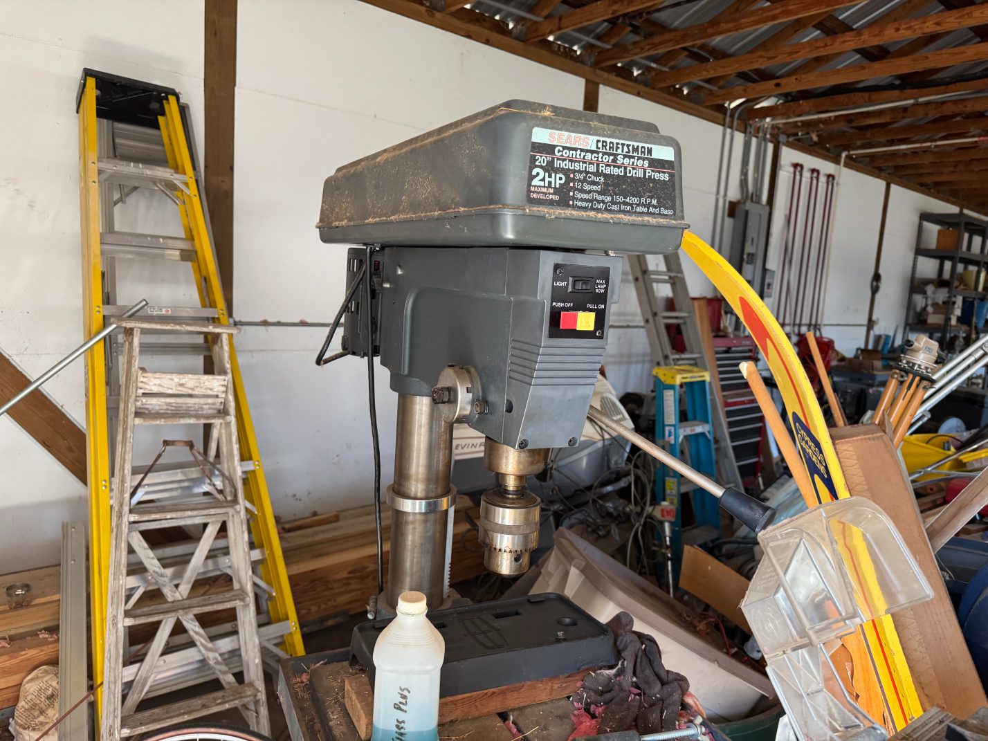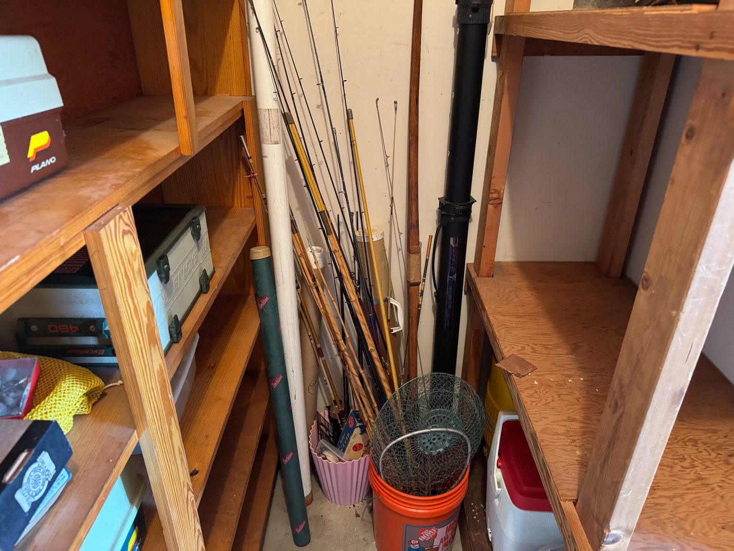 Tools/Shop items: Spotting Scope – Ladders – Grinder – Electric Weed Eater – Extension Cords – Yard Tools – Gas Cans – Dolly – Rigid Shop Vac – Hand Tools – Toolboxes – Power Tools – Jax Beer Sign – Stainless Roll Around Cart – Tackle Boxes – Tackle – Fishing Rods And Reels – Fly Rods – Fishing Nets – Minnow Buckets – Step Ladders – Jet Band Saw – Jointer – Lumber Rollers – Craftsman Radial Arm Saw – Craftsman Scroll Saw – Bolt Bins – Craftsman 10” Table Saw – Sand Blaster – Craftsman Router – Craftsman Drill Press – Lumber – Evinrude Boat Motor – Skil Saw Chop Saw – Jet Metal Cutting Saw – Water Hoses – Craftsman Air Compressor – Saw Horses – Jet Grinder – Extension Ladders – Craftsman Roll Around Tool Box – Park Tool Bicycle Tools – Grease Gun – Air Hoses – Vise – Clamps – Jack Stands – Air Tank – Walk Board – Reloading Supplies – Leather Holsters – Gun Cleaning Supplies – Wheelbarrow – Dayton Shop Fan – Halogen Lights – Electric Pressure Washers