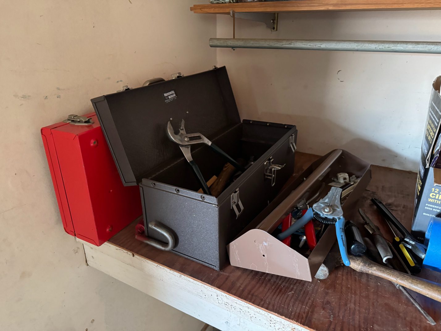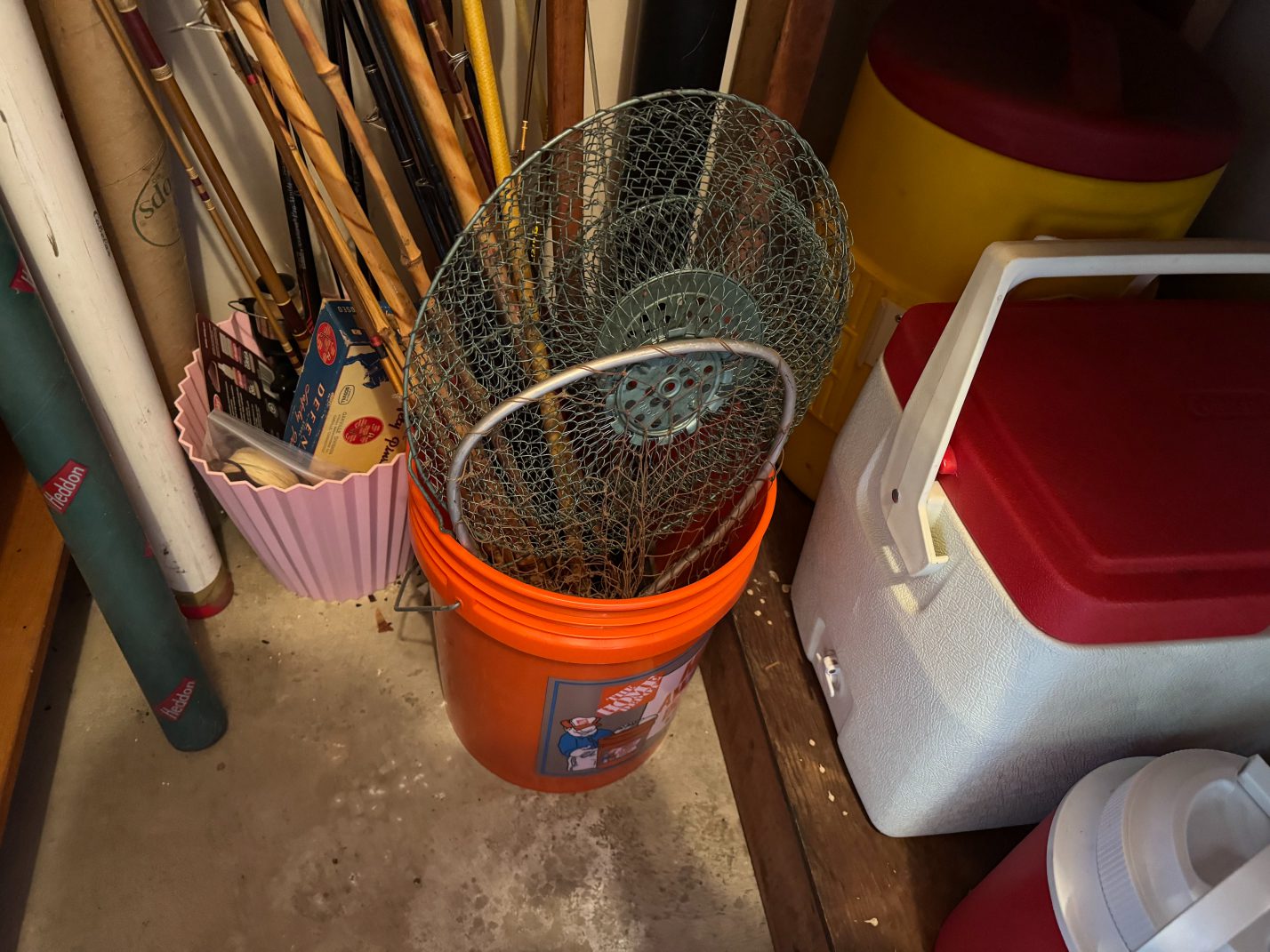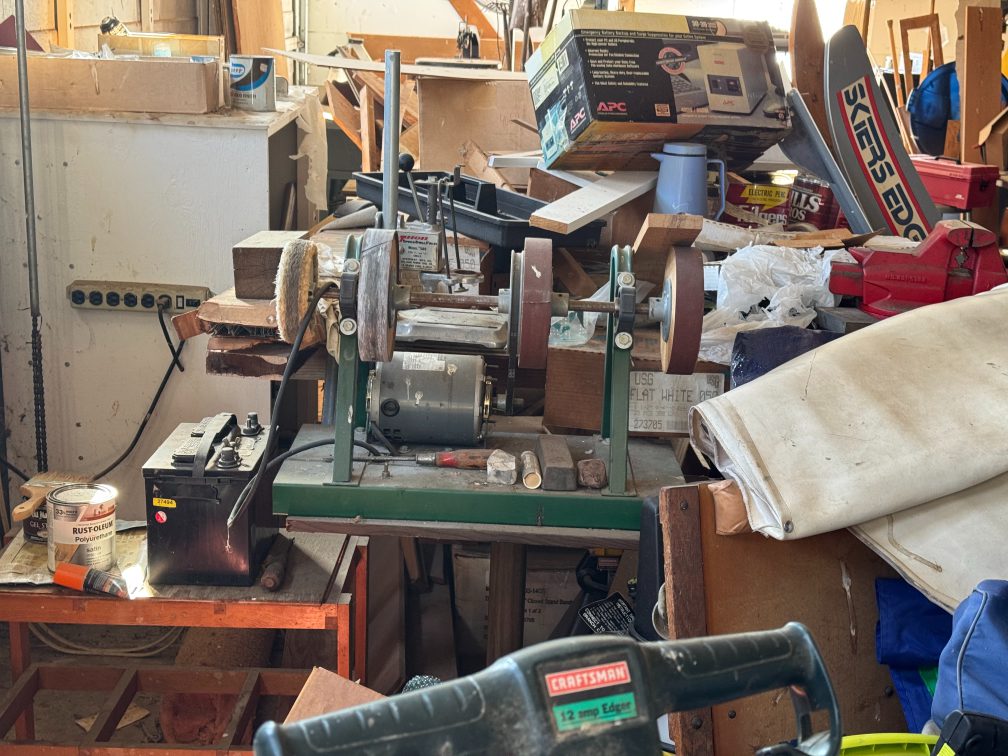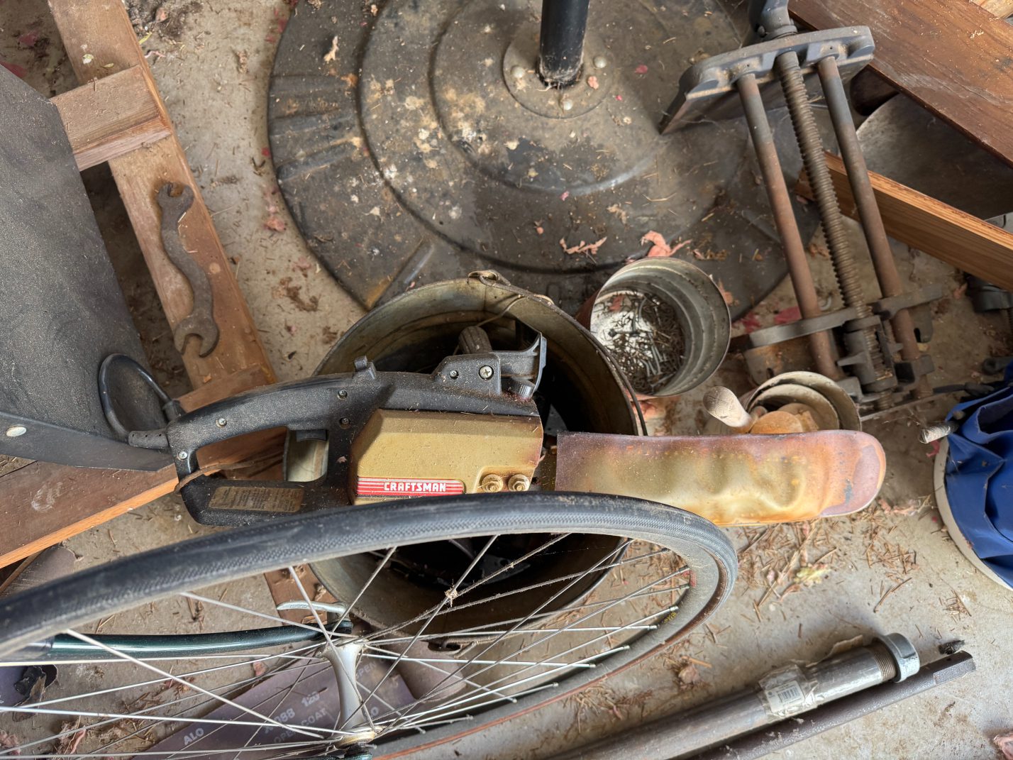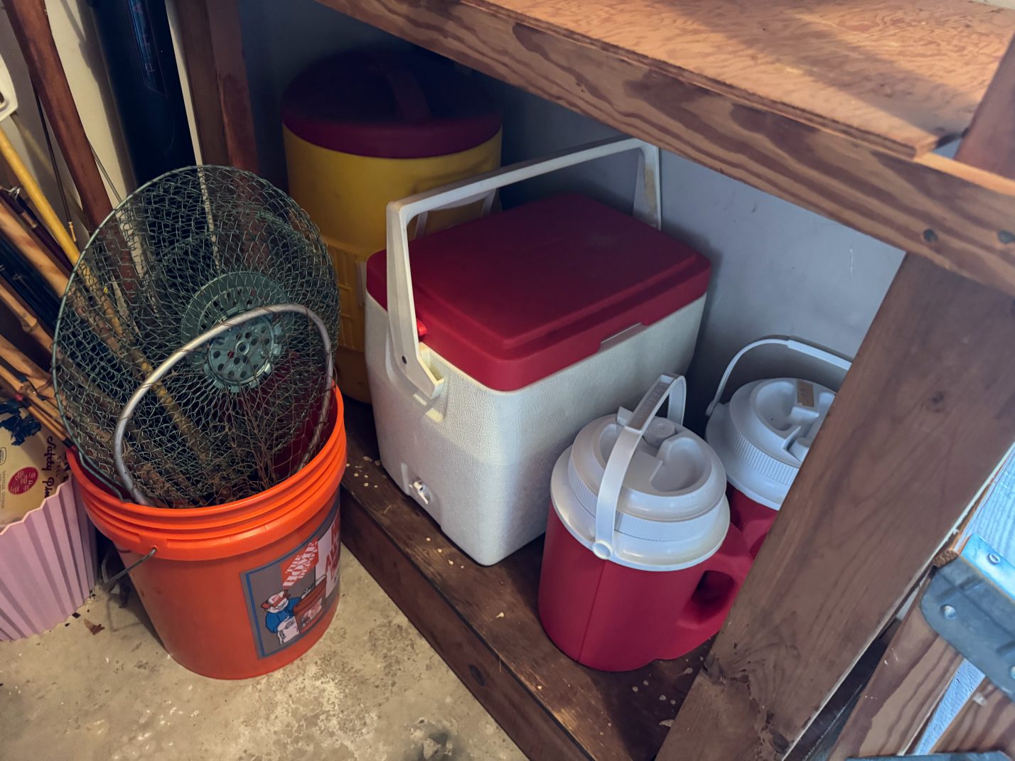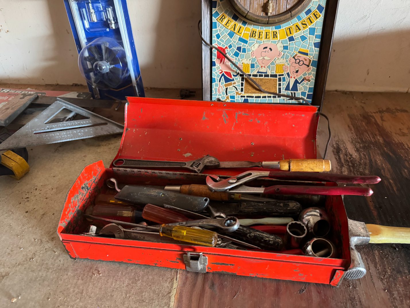 Tools/Shop items: Spotting Scope – Ladders – Grinder – Electric Weed Eater – Extension Cords – Yard Tools – Gas Cans – Dolly – Rigid Shop Vac – Hand Tools – Toolboxes – Power Tools – Jax Beer Sign – Stainless Roll Around Cart – Tackle Boxes – Tackle – Fishing Rods And Reels – Fly Rods – Fishing Nets – Minnow Buckets – Step Ladders – Jet Band Saw – Jointer – Lumber Rollers – Craftsman Radial Arm Saw – Craftsman Scroll Saw – Bolt Bins – Craftsman 10” Table Saw – Sand Blaster – Craftsman Router – Craftsman Drill Press – Lumber – Evinrude Boat Motor – Skil Saw Chop Saw – Jet Metal Cutting Saw – Water Hoses – Craftsman Air Compressor – Saw Horses – Jet Grinder – Extension Ladders – Craftsman Roll Around Tool Box – Park Tool Bicycle Tools – Grease Gun – Air Hoses – Vise – Clamps – Jack Stands – Air Tank – Walk Board – Reloading Supplies – Leather Holsters – Gun Cleaning Supplies – Wheelbarrow – Dayton Shop Fan – Halogen Lights – Electric Pressure Washers
