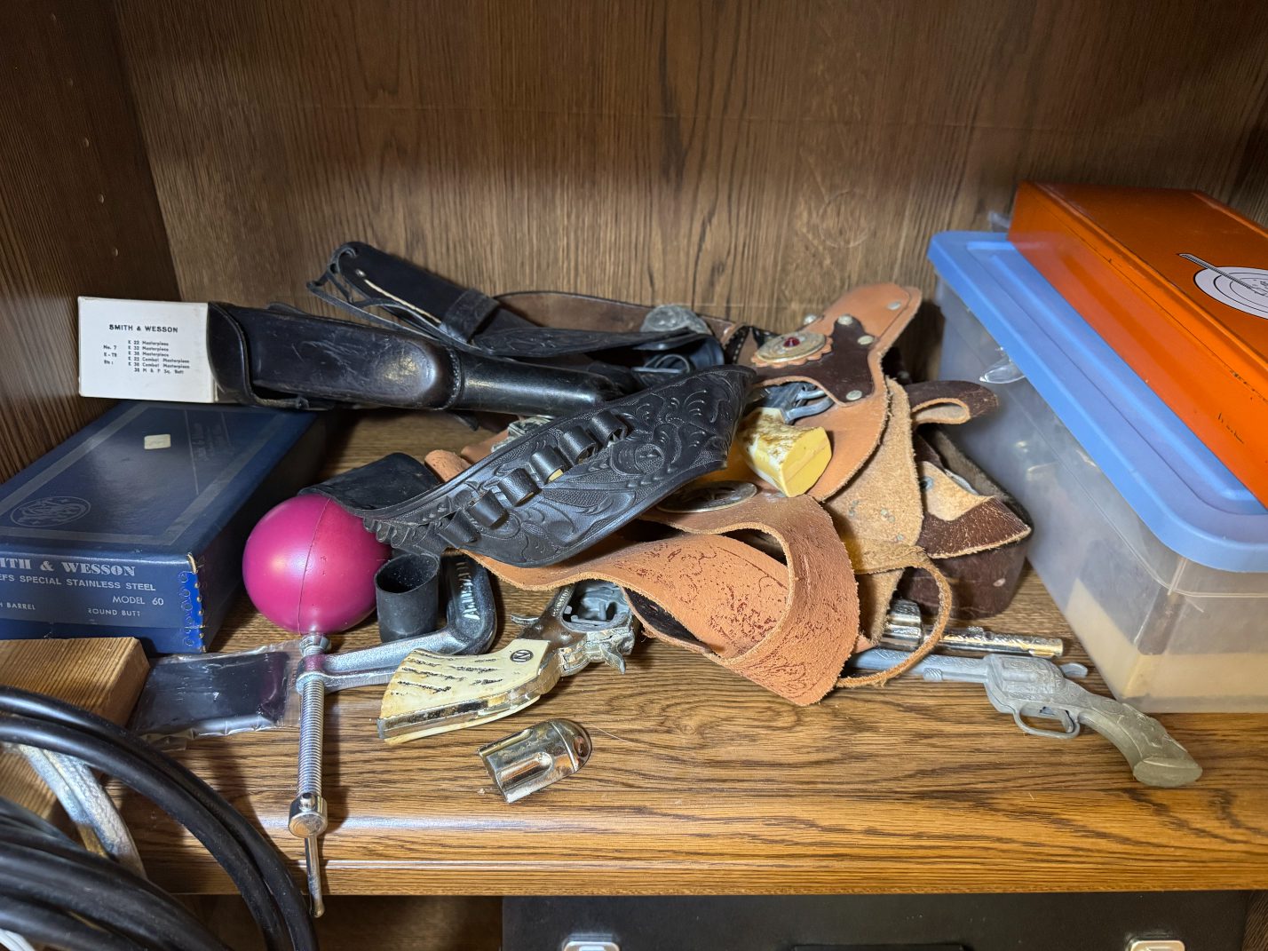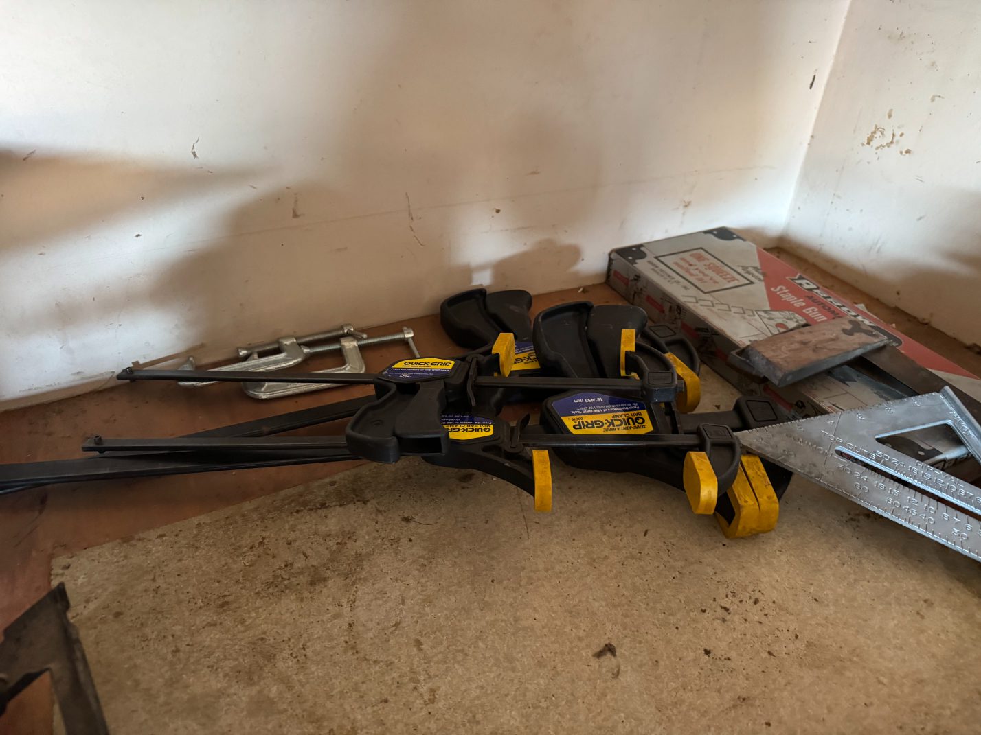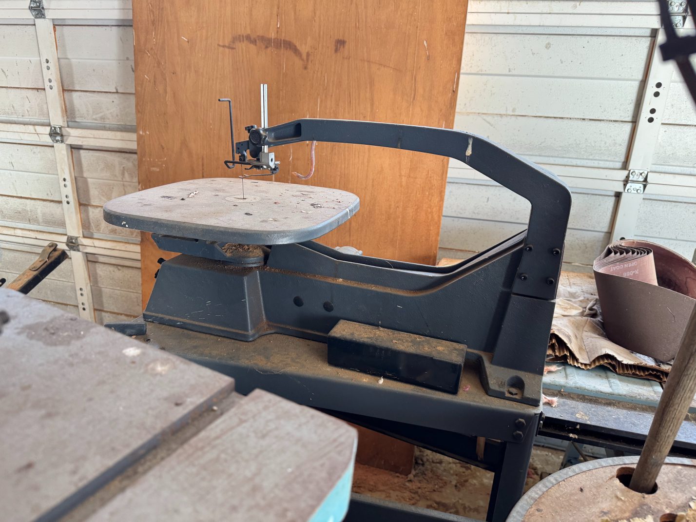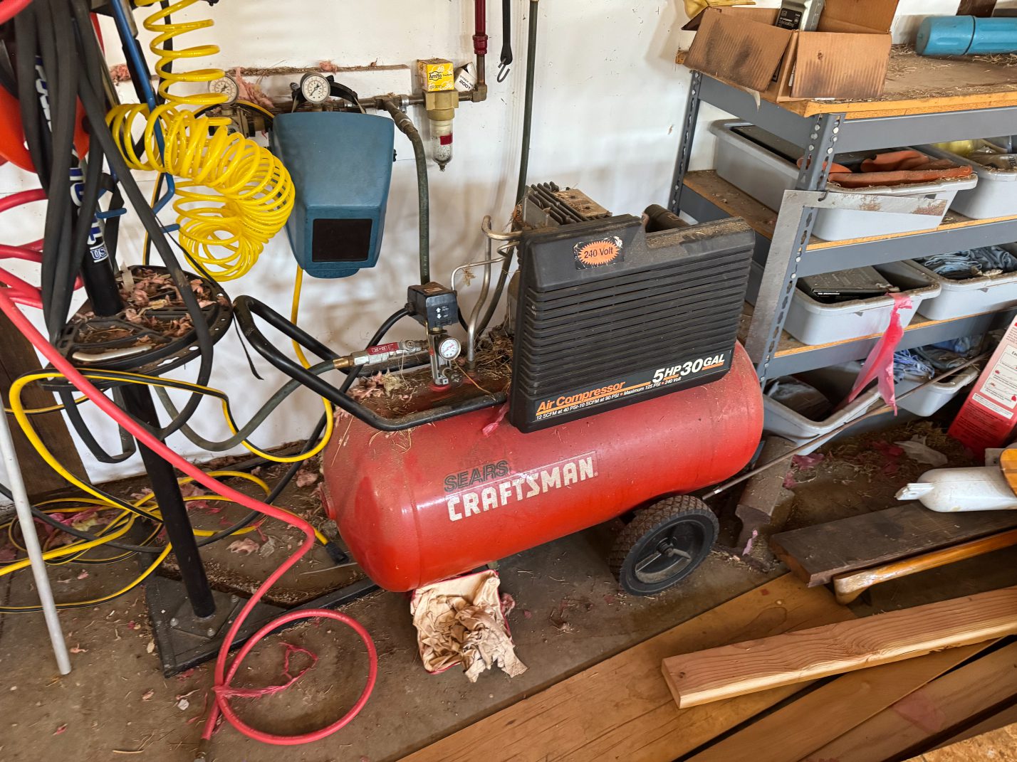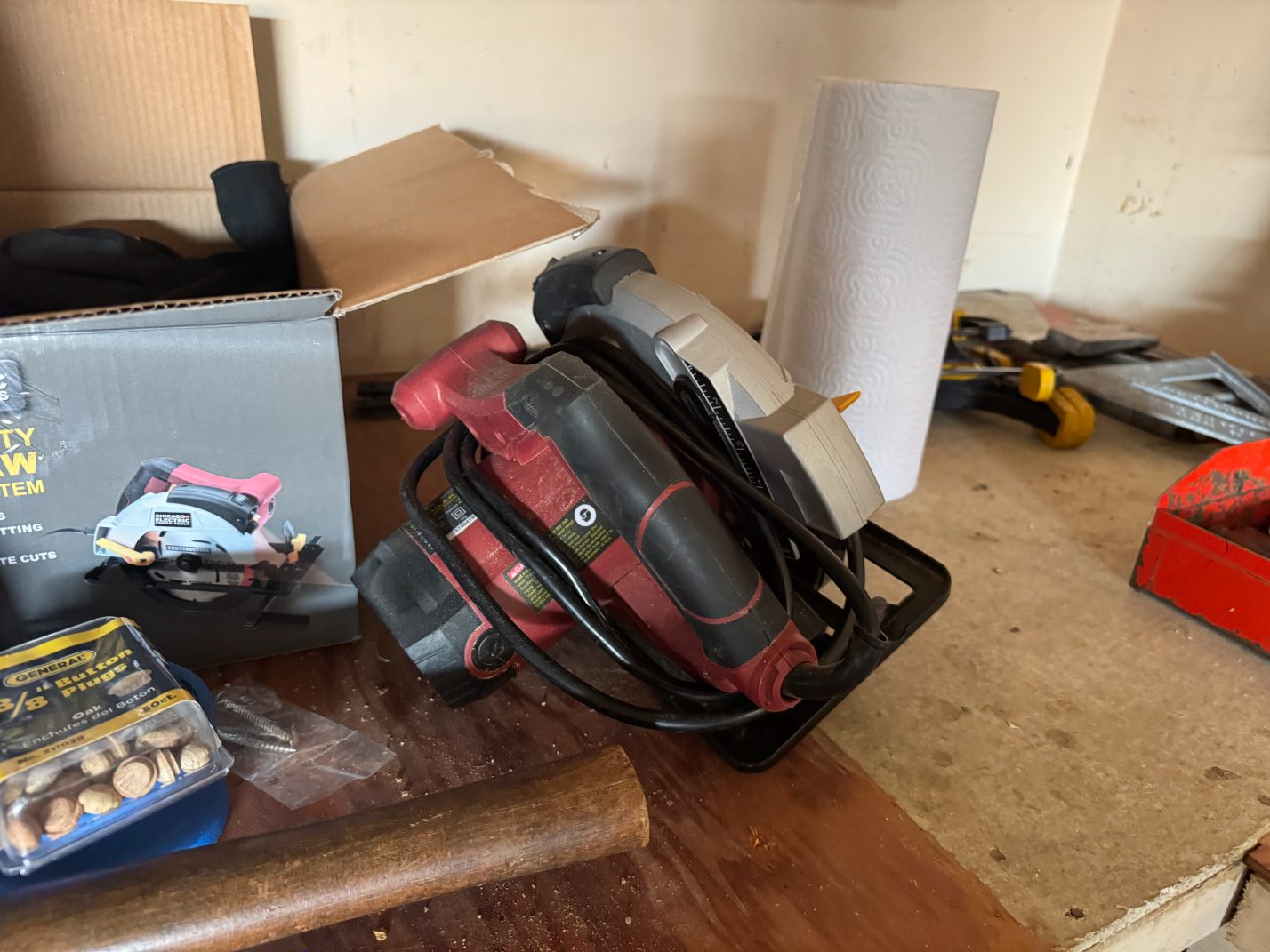 Tools/Shop items: Spotting Scope – Ladders – Grinder – Electric Weed Eater – Extension Cords – Yard Tools – Gas Cans – Dolly – Rigid Shop Vac – Hand Tools – Toolboxes – Power Tools – Jax Beer Sign – Stainless Roll Around Cart – Tackle Boxes – Tackle – Fishing Rods And Reels – Fly Rods – Fishing Nets – Minnow Buckets – Step Ladders – Jet Band Saw – Jointer – Lumber Rollers – Craftsman Radial Arm Saw – Craftsman Scroll Saw – Bolt Bins – Craftsman 10” Table Saw – Sand Blaster – Craftsman Router – Craftsman Drill Press – Lumber – Evinrude Boat Motor – Skil Saw Chop Saw – Jet Metal Cutting Saw – Water Hoses – Craftsman Air Compressor – Saw Horses – Jet Grinder – Extension Ladders – Craftsman Roll Around Tool Box – Park Tool Bicycle Tools – Grease Gun – Air Hoses – Vise – Clamps – Jack Stands – Air Tank – Walk Board – Reloading Supplies – Leather Holsters – Gun Cleaning Supplies – Wheelbarrow – Dayton Shop Fan – Halogen Lights – Electric Pressure Washers